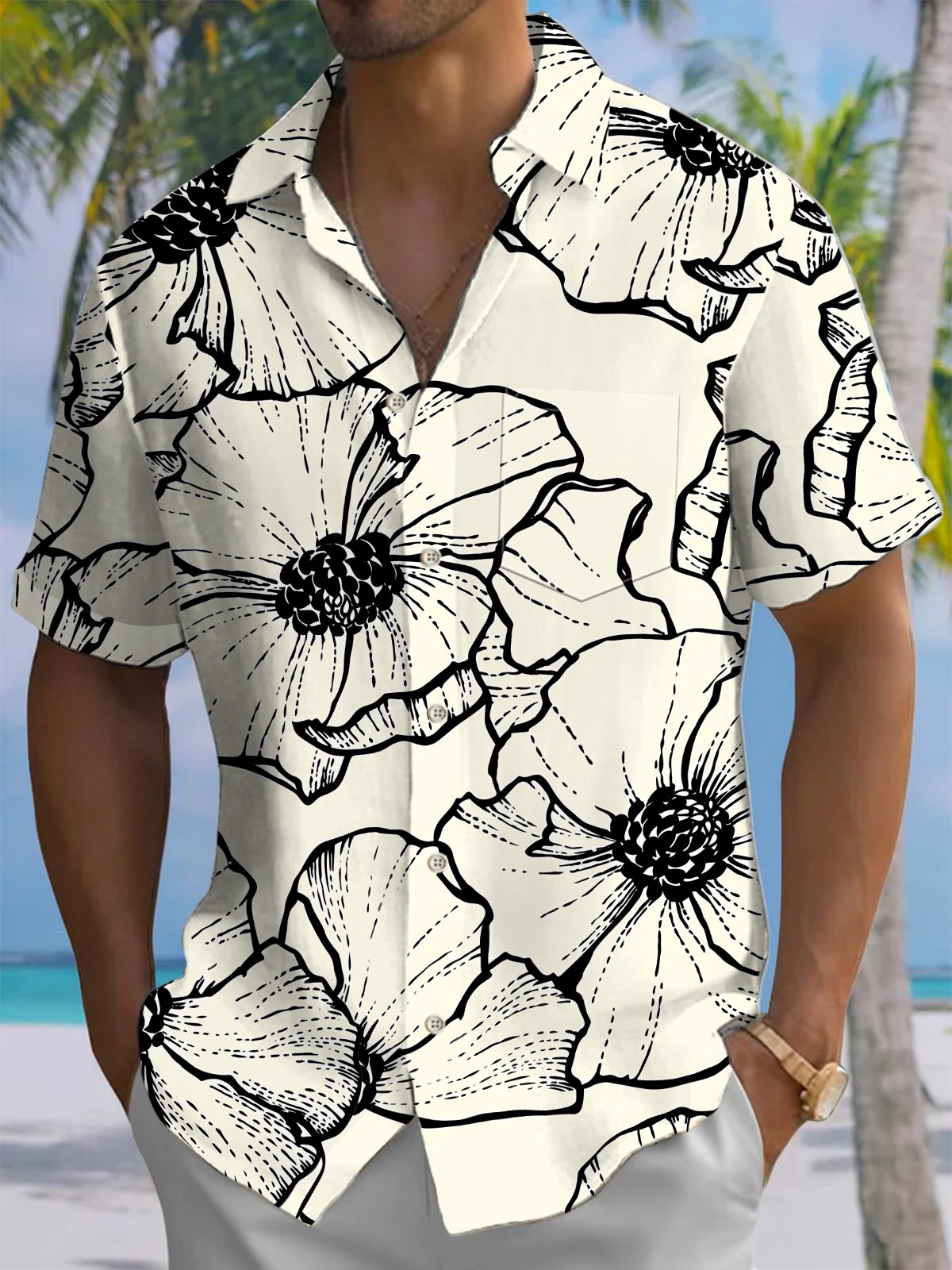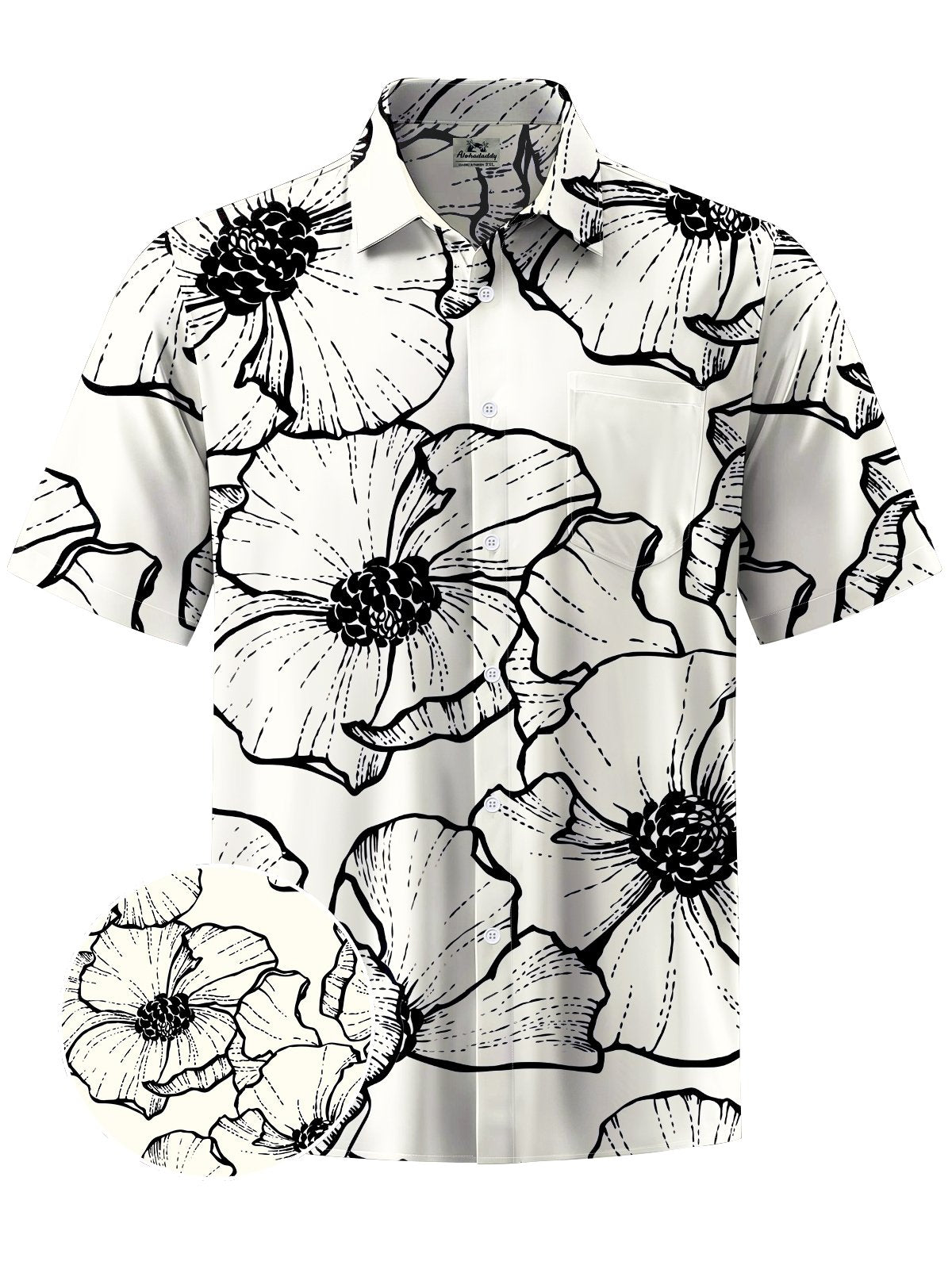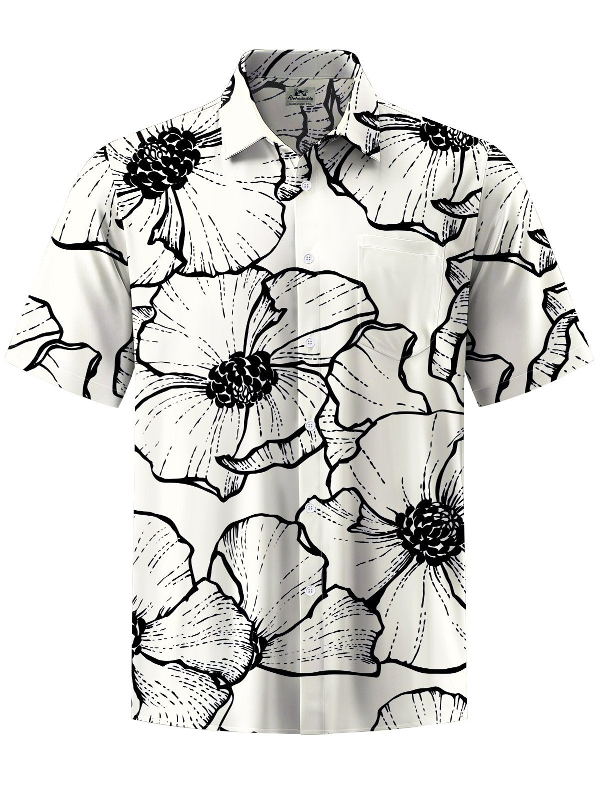 Alohadaddy® Hawaiian Flowers Art Print Chest Pocket Mens Short Sleeve Shirts Big & Tall