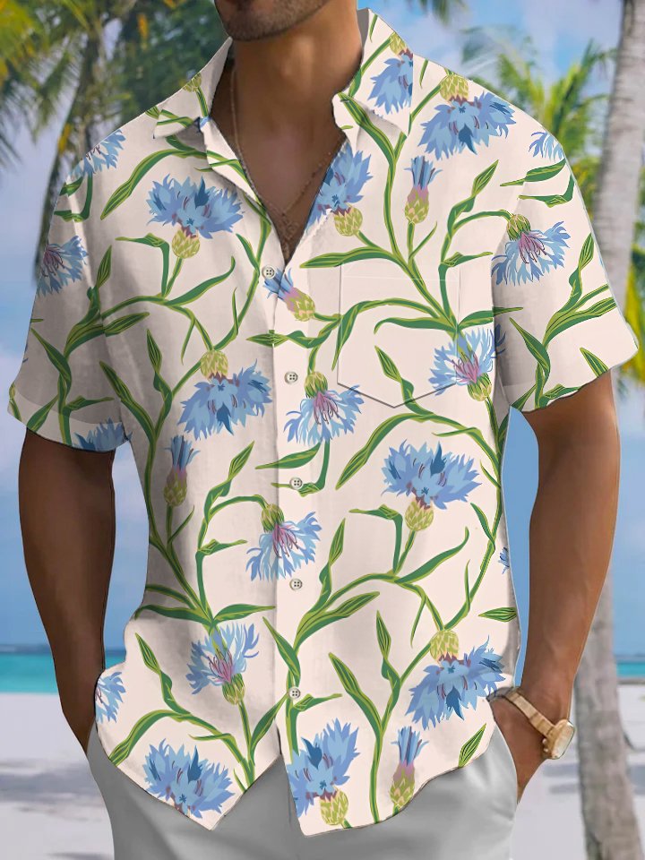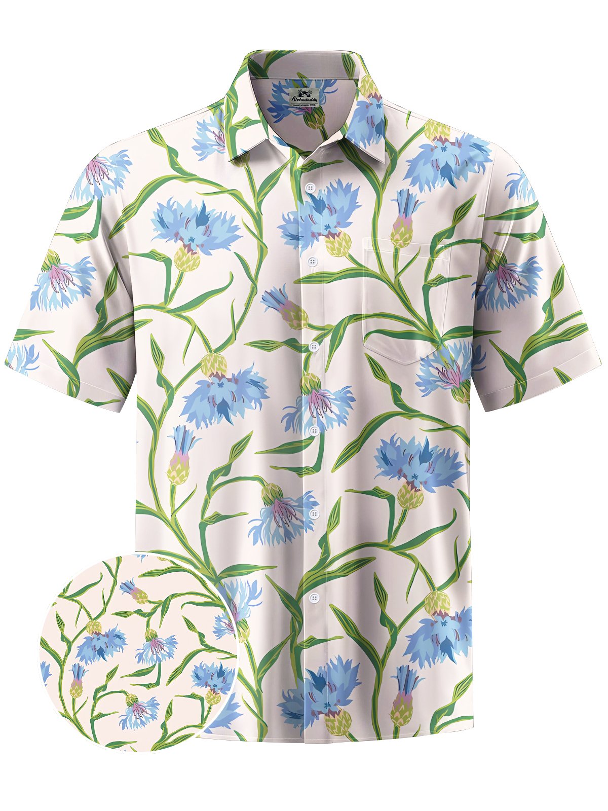 Alohadaddy® Hawaiian Flowers Art Print Chest Pocket Mens Short Sleeve Shirts Big & Tall