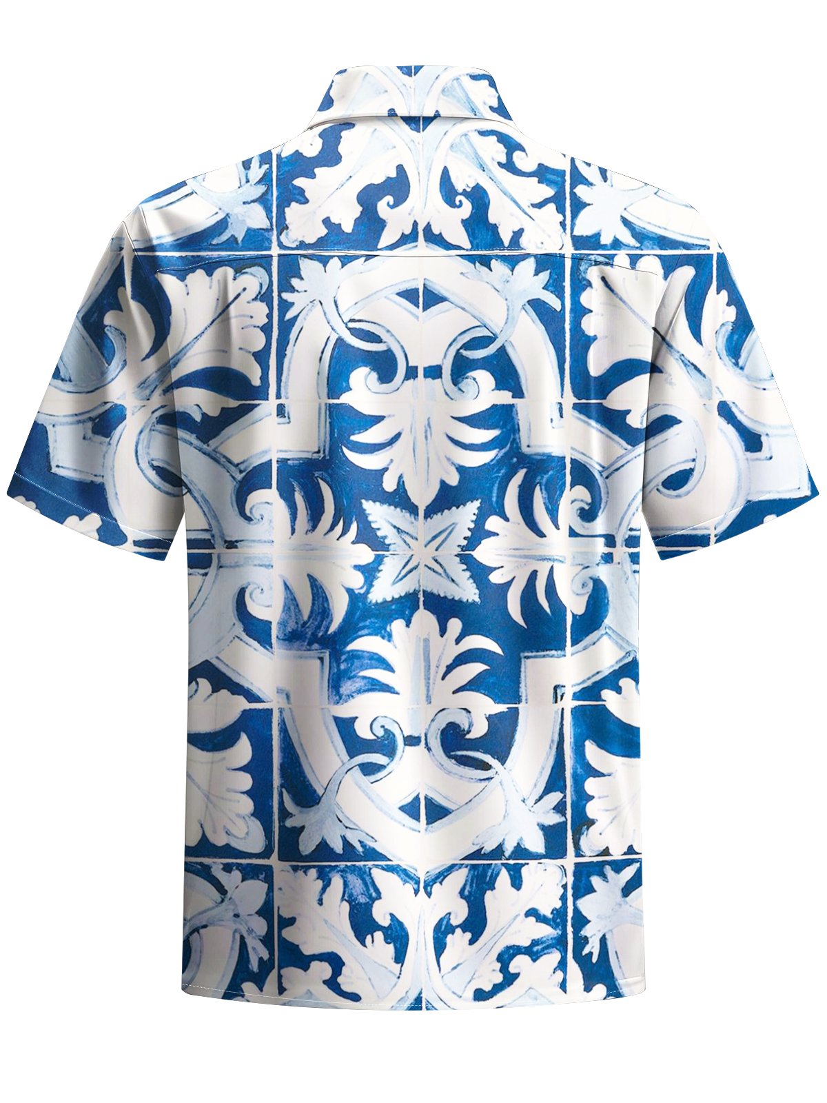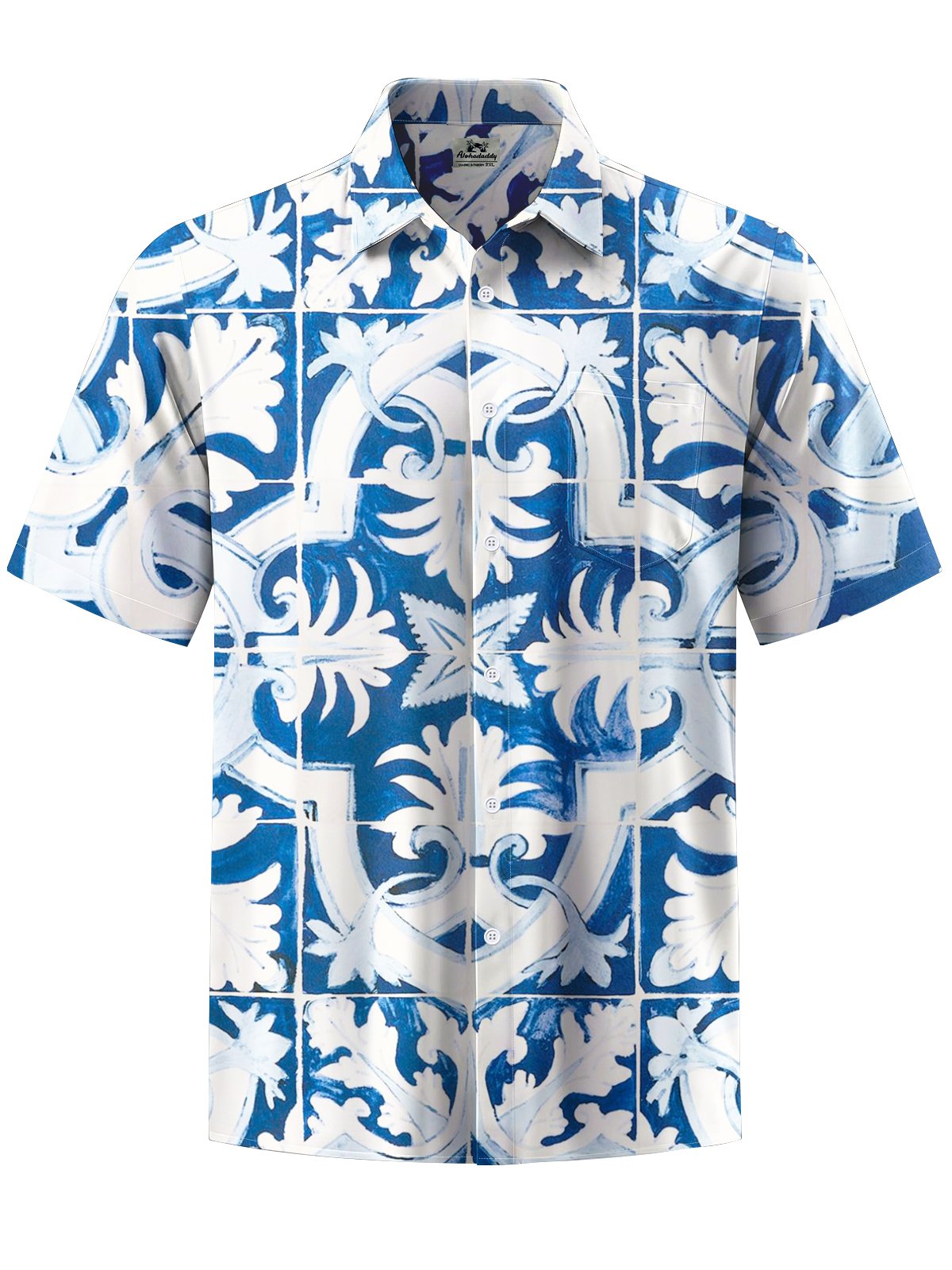 Alohadaddy® Hawaiian Geometric Art Print Chest Pocket Stretch Men's Short Sleeve Shirt Big & Tall