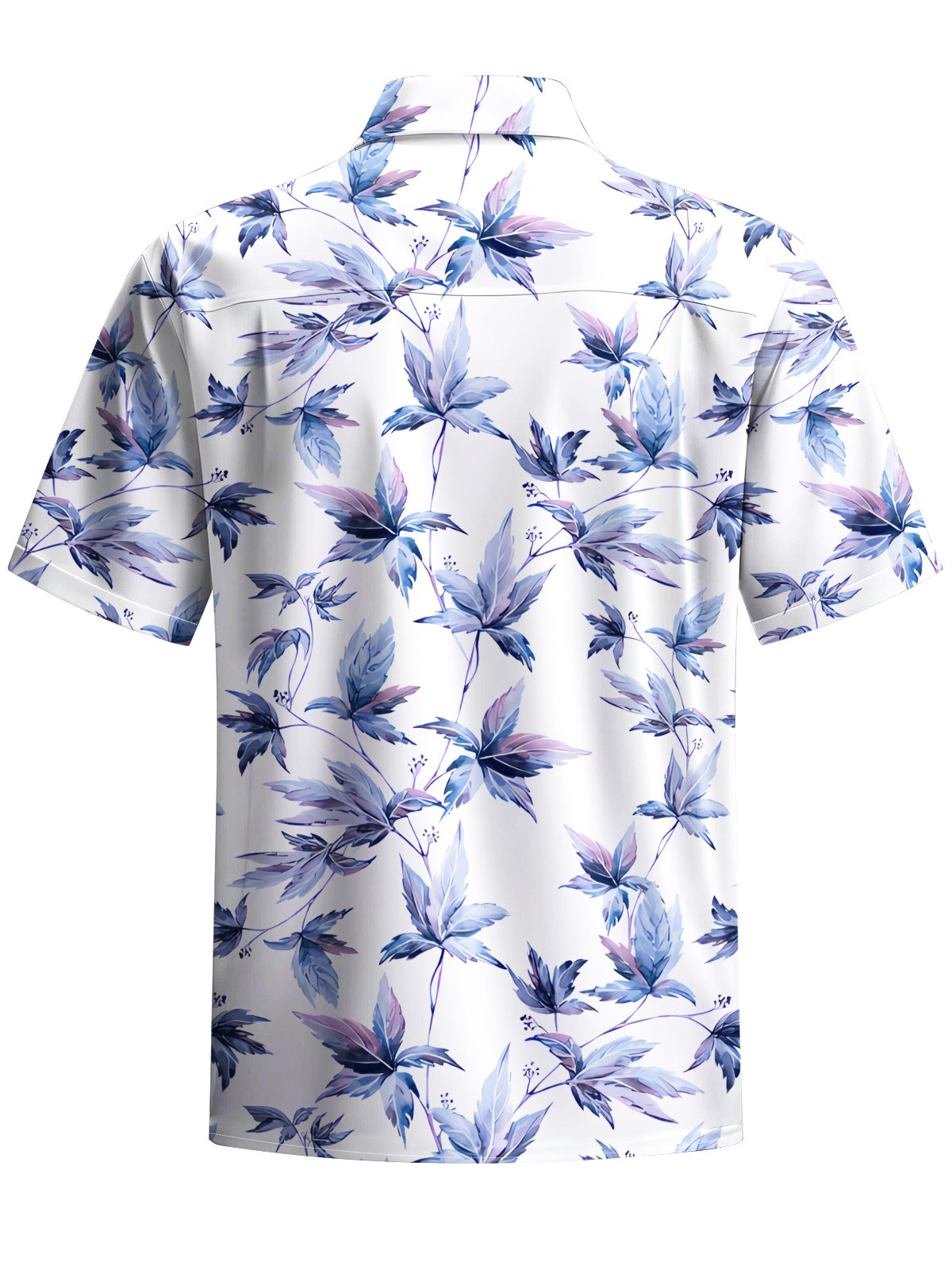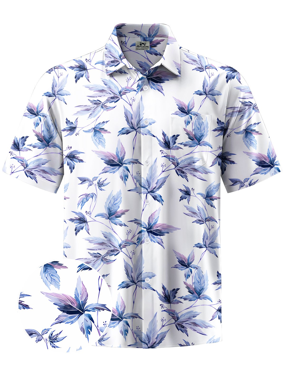 Alohadaddy® Hawaiian Leaves Art Print Chest Pocket Mens Short Sleeve Shirt Big & Tall