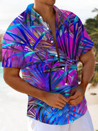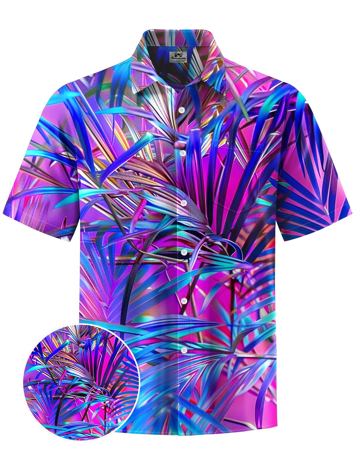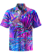 Alohadaddy® Hawaiian Leaves Art Print Chest Pocket Moisture Wicking Men's Short Sleeve Shirt Big & Tall