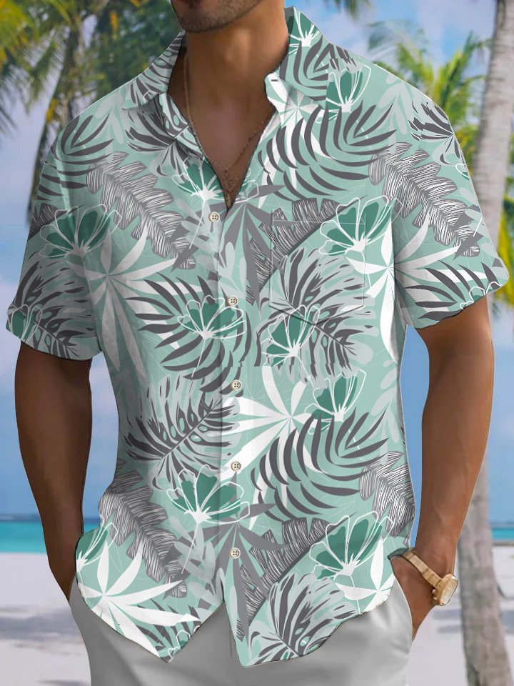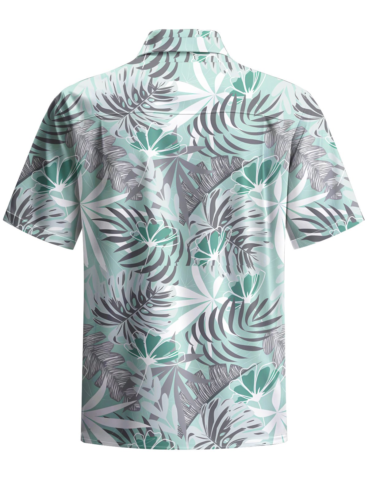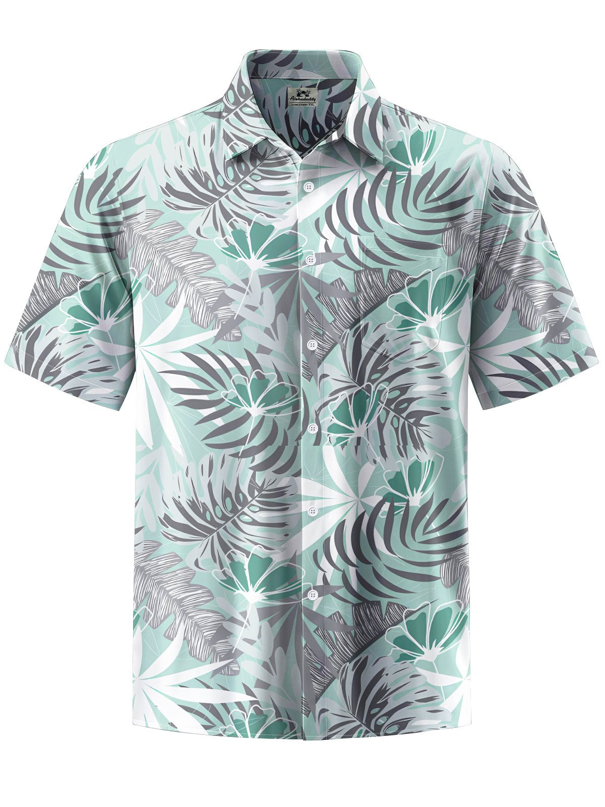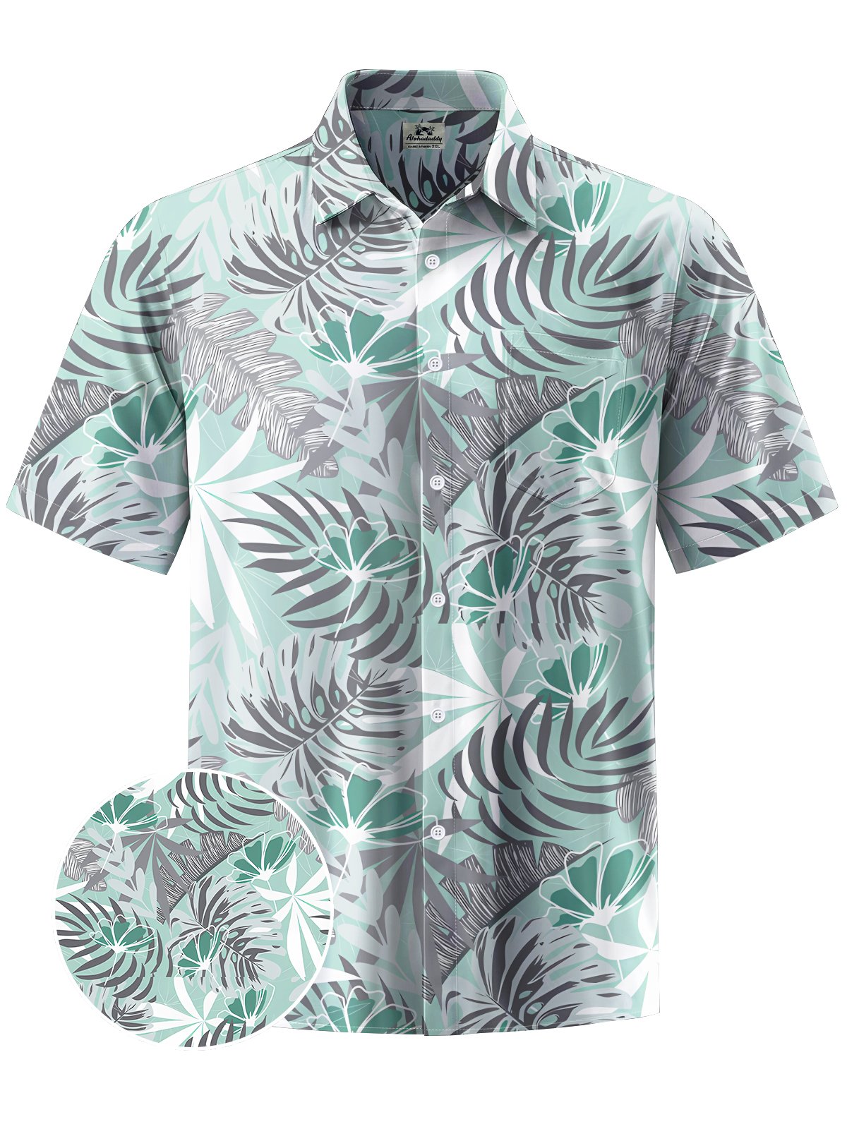 Alohadaddy® Hawaiian Leaves Art Print Chest Pocket Moisture Wicking Men's Short Sleeve Shirt Big & Tall