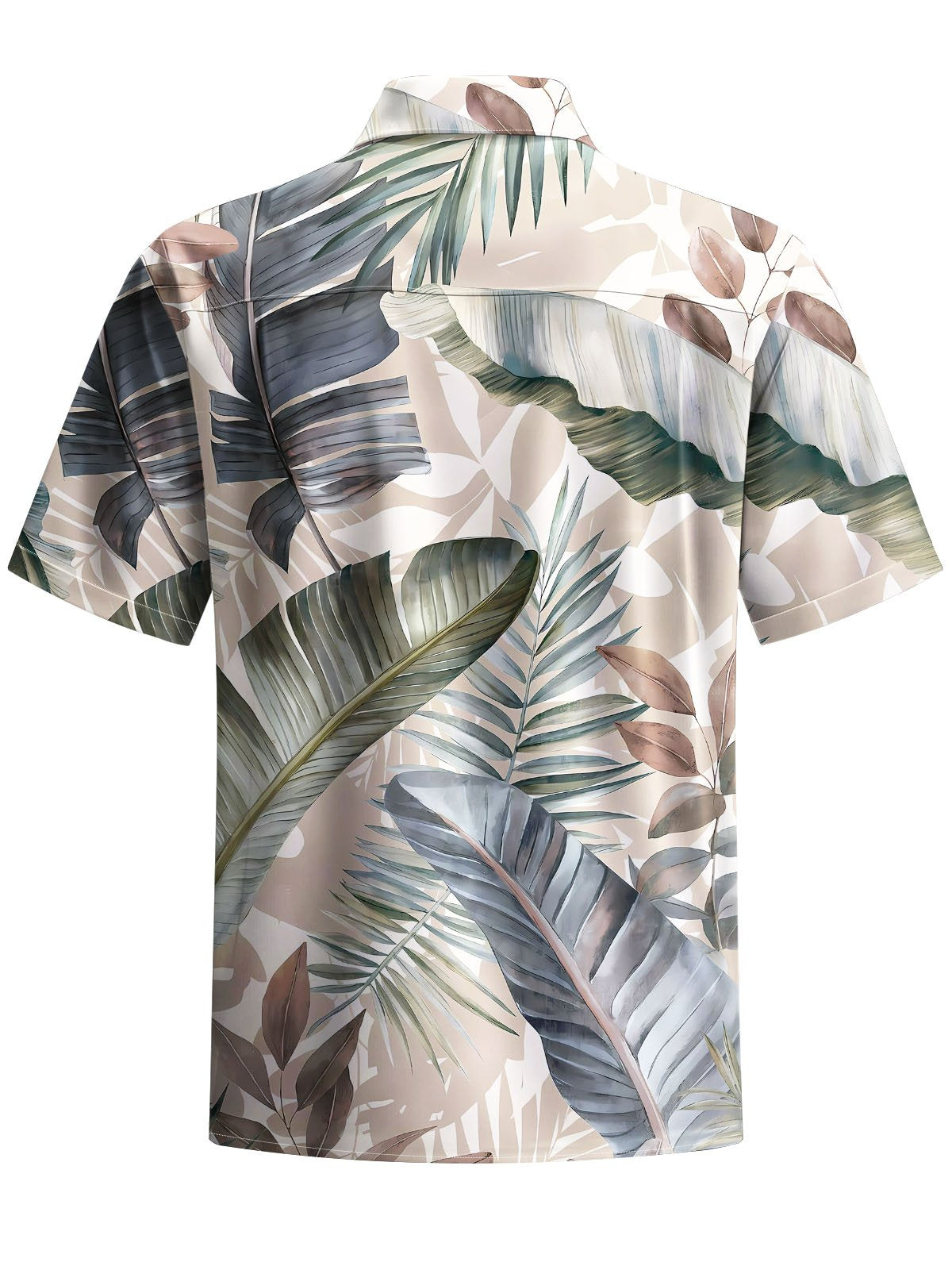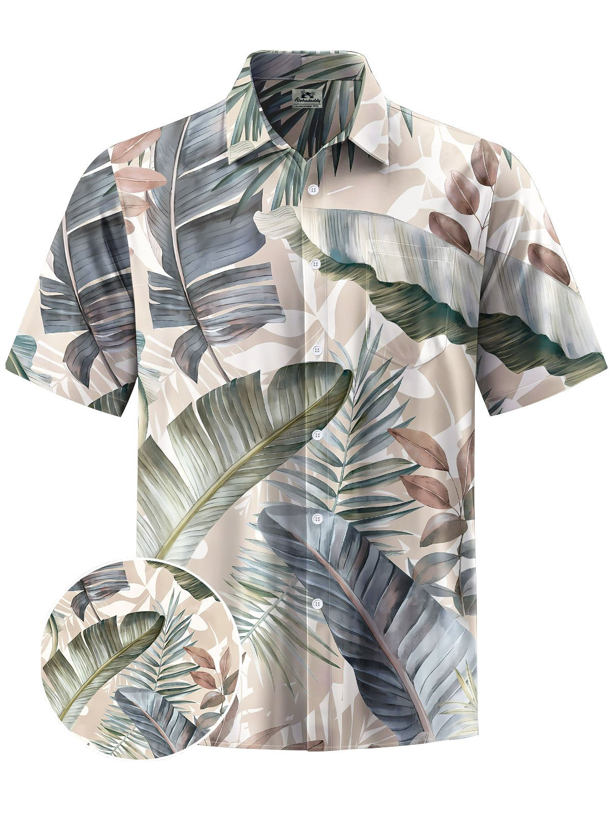 Alohadaddy® Hawaiian Leaves Printed Moisture Wicking Men's Short Sleeve Shirt Big & Tall