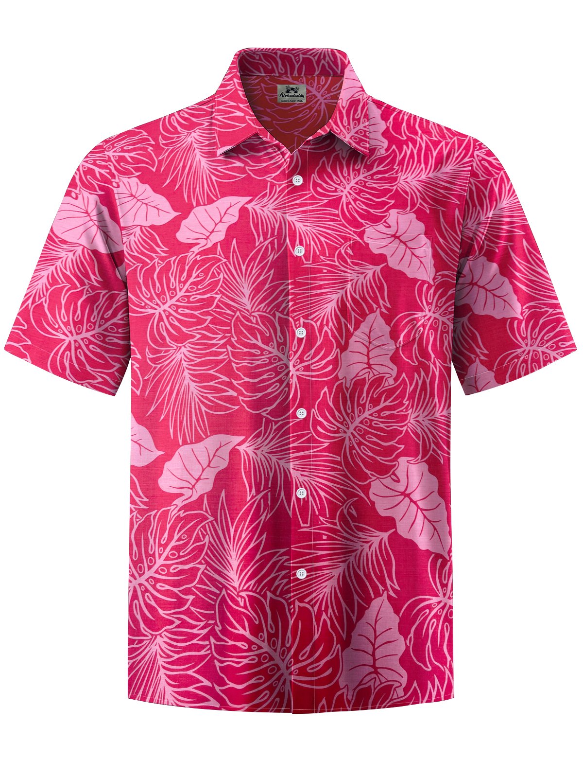 Alohadaddy® Hawaiian Palm Leaf Art Print Pocket Stretch Men's Short Sleeve Shirt Big & Tall