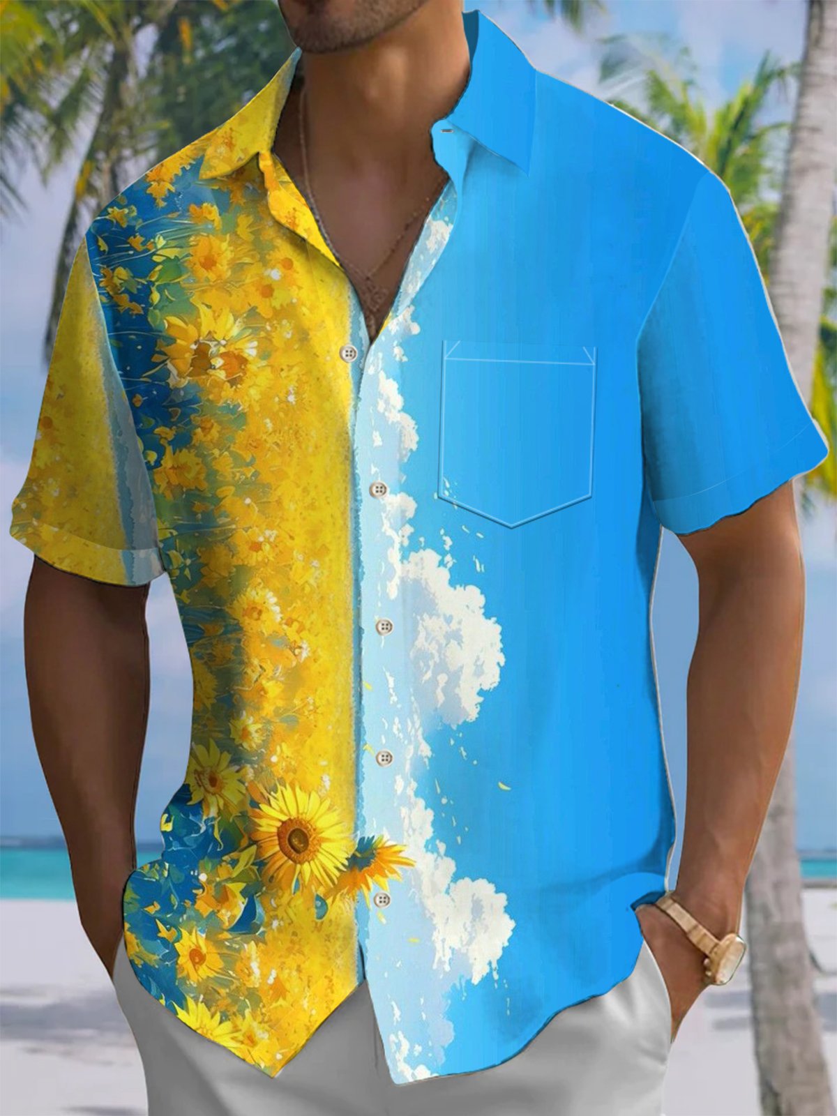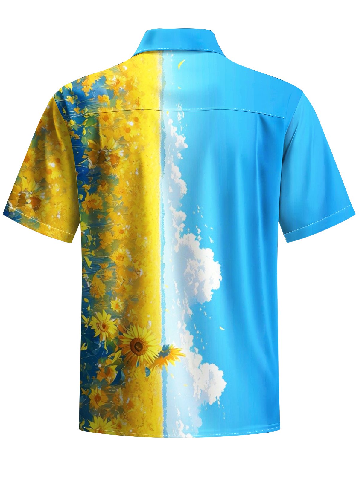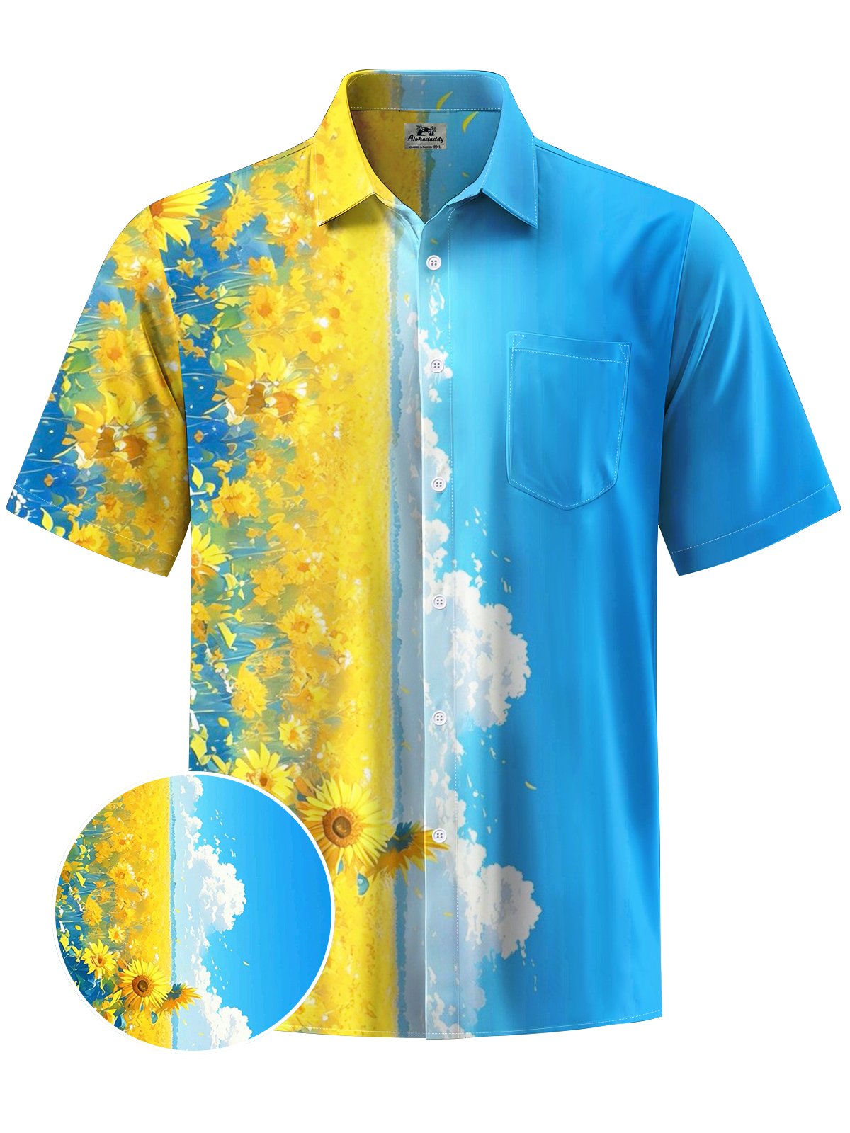 Alohadaddy® Hawaiian Sunflower Art Print Men's Moisture Wicking Short Sleeve Shirt Big & Tall