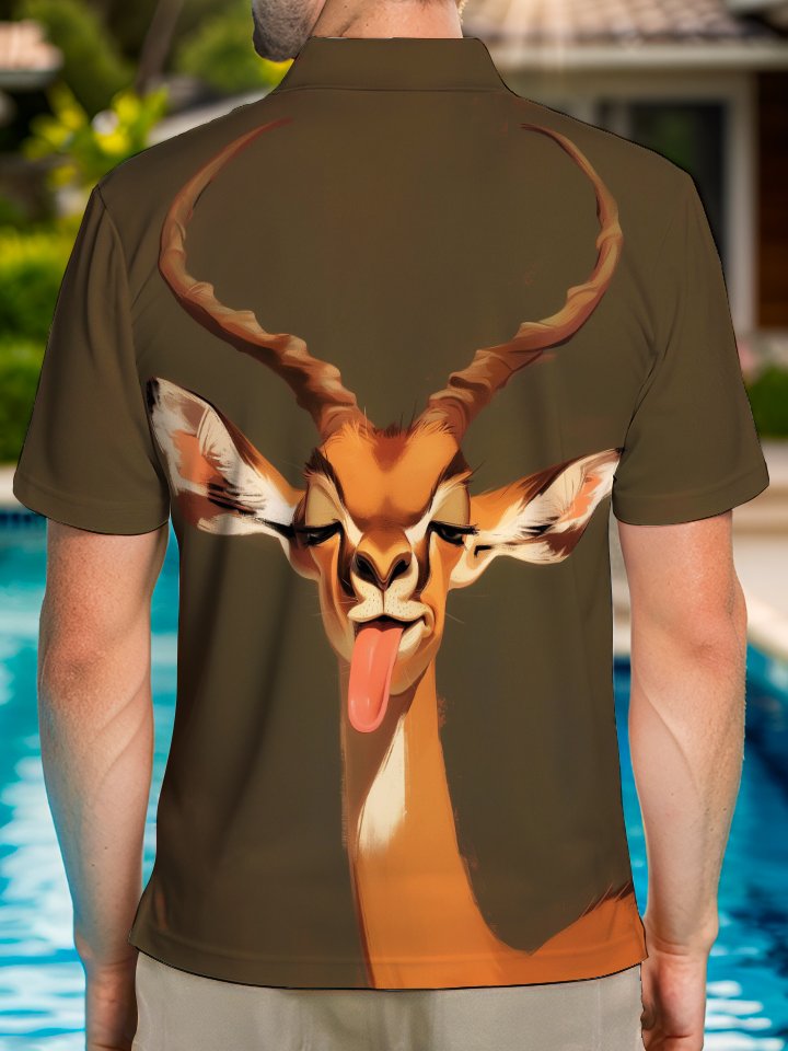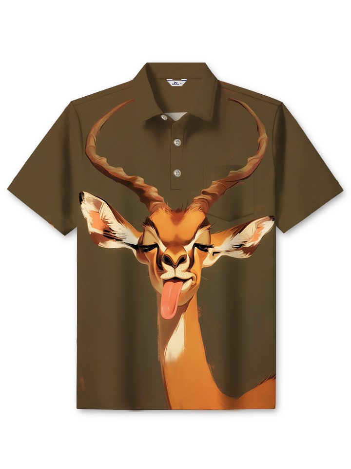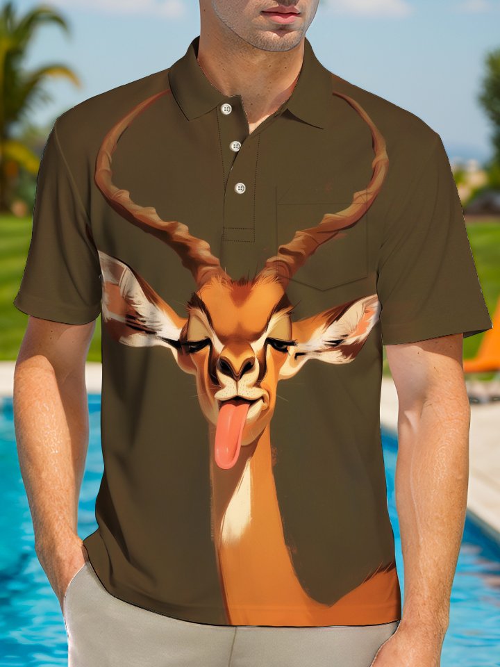 Alohadaddy Casual Animal Sheep Print Art Buttons Pockets Stretch Large Size Polyester Short Sleeve Polo Shirt
