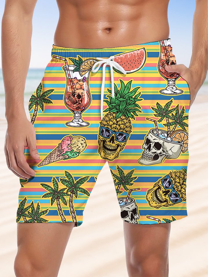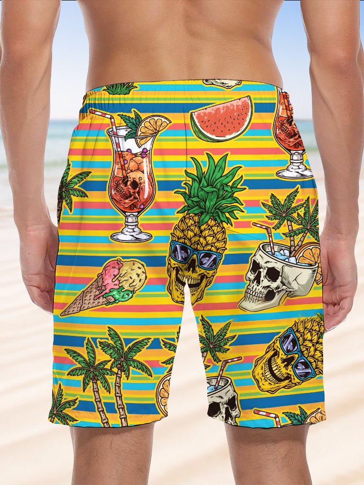 Alohadaddy Casual Collection Hawaiian Pineapple Loose Drawstring Pockets Elasticity Long Large Size Shorts Beach Pants