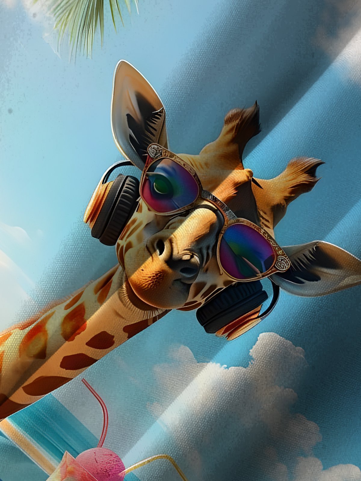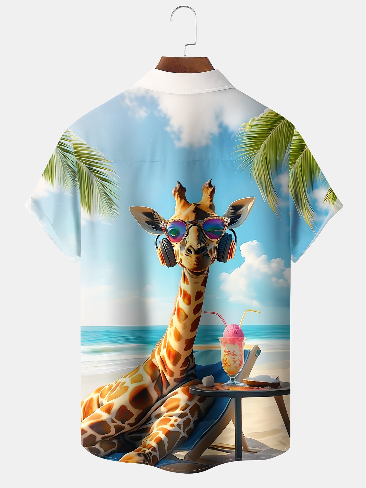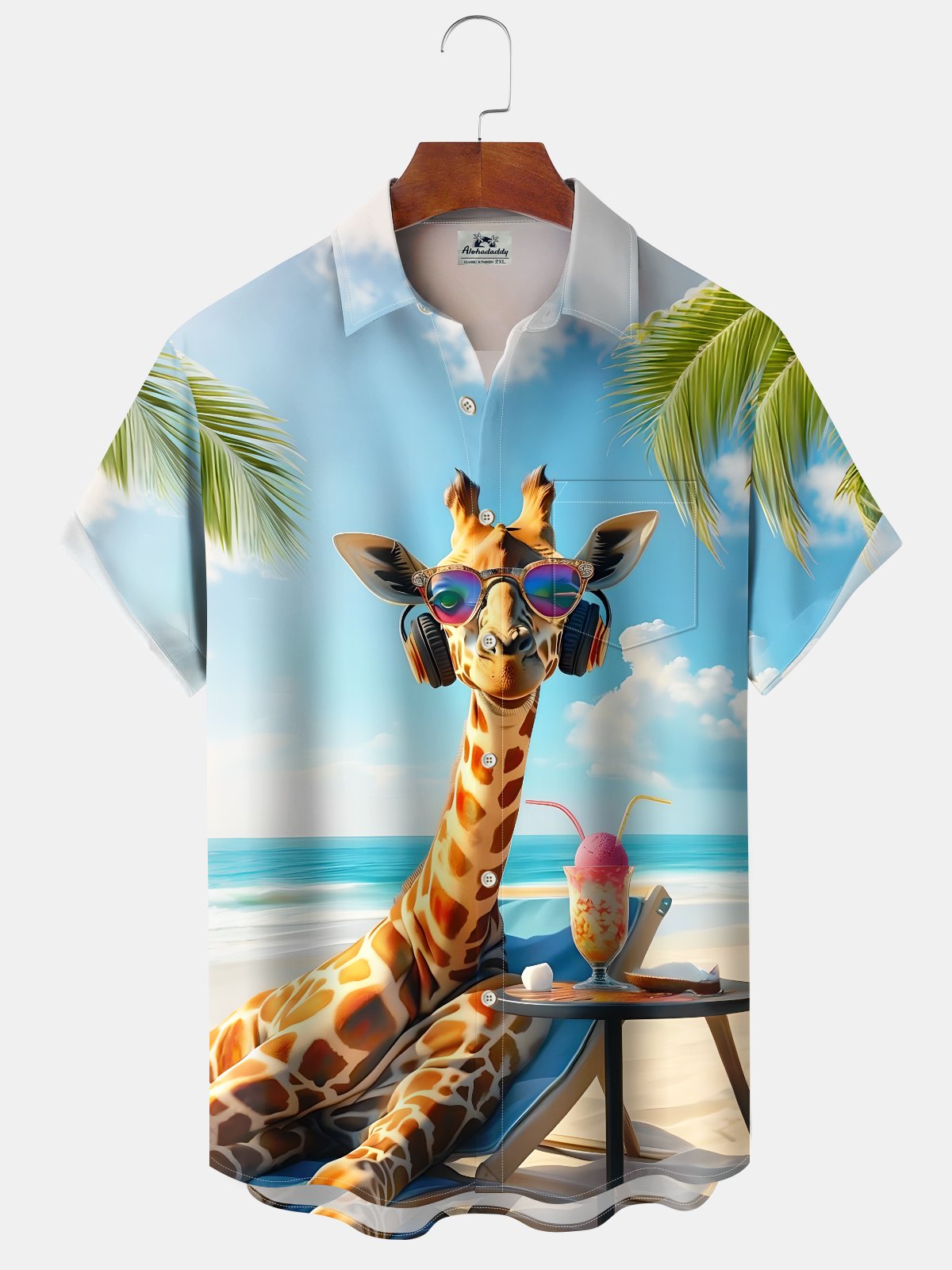 Alohadaddy Casual Collection Resort Giraffe Art Print Button Cardigan Pocket Polyester Stretch Short Sleeve Shirt