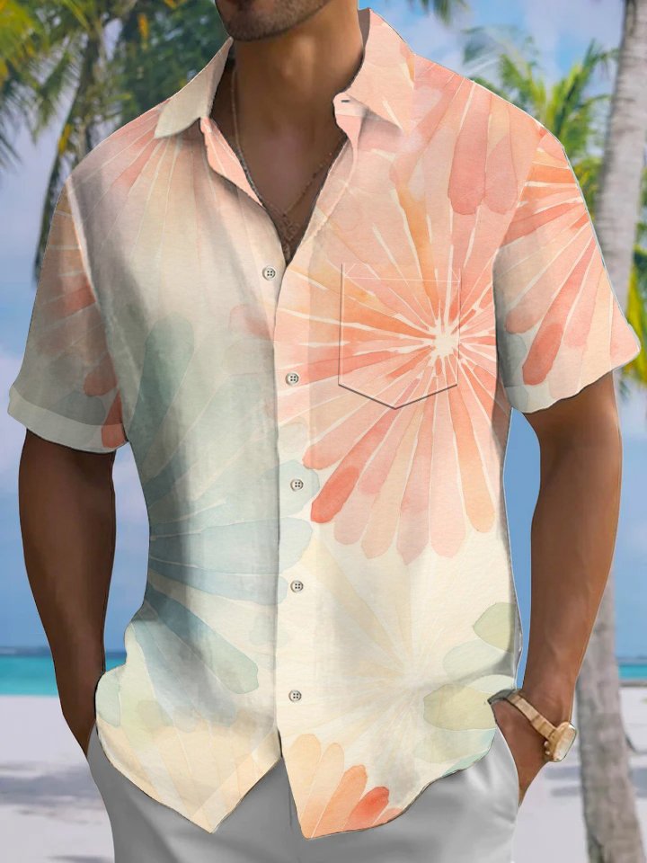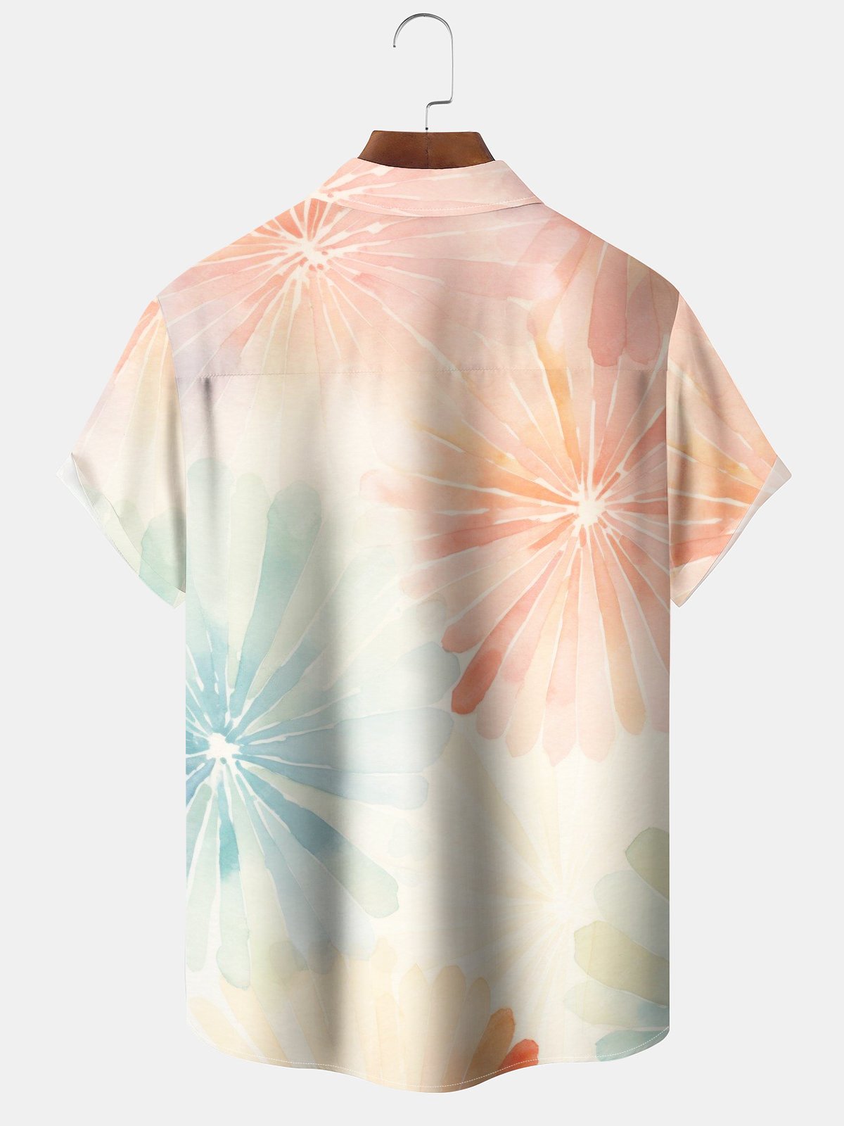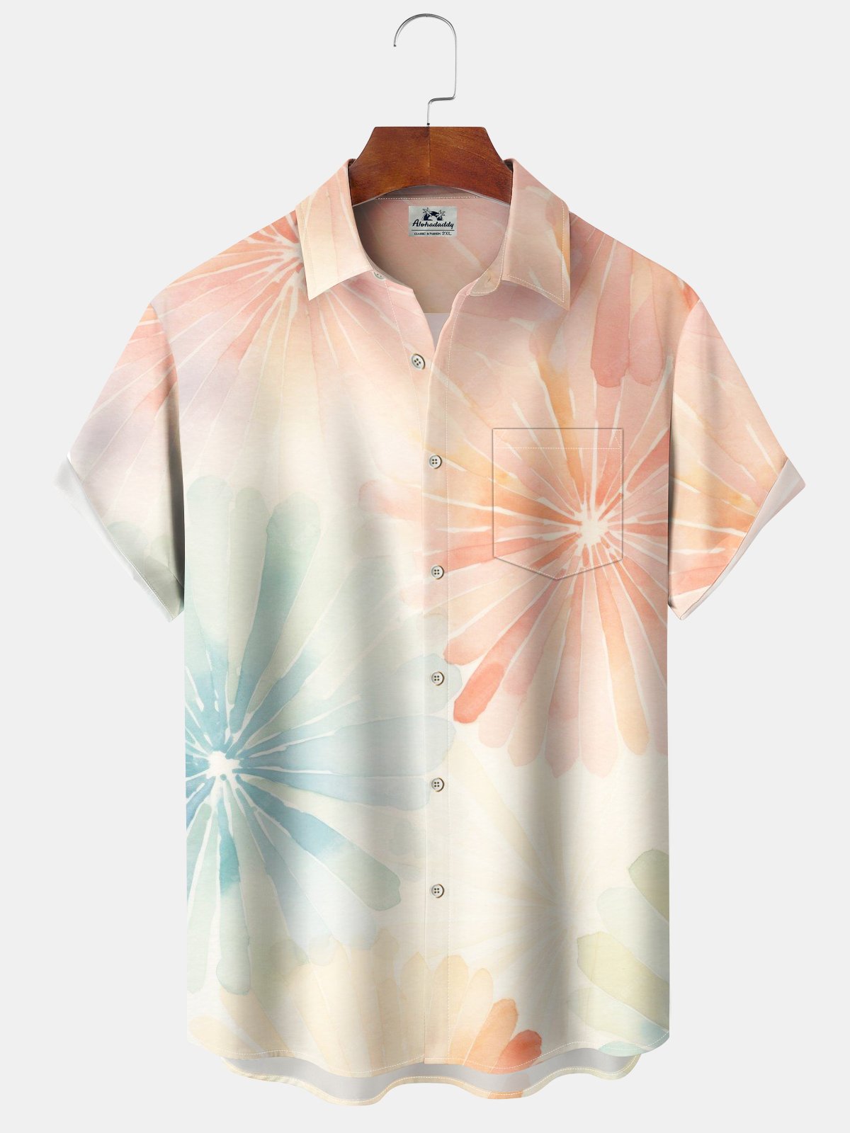 Alohadaddy Casual Daily Flowers Smudge Gradient Print Art Polyester Pocket Cardigan Stretch Long Large Size Short Sleeve Shirt