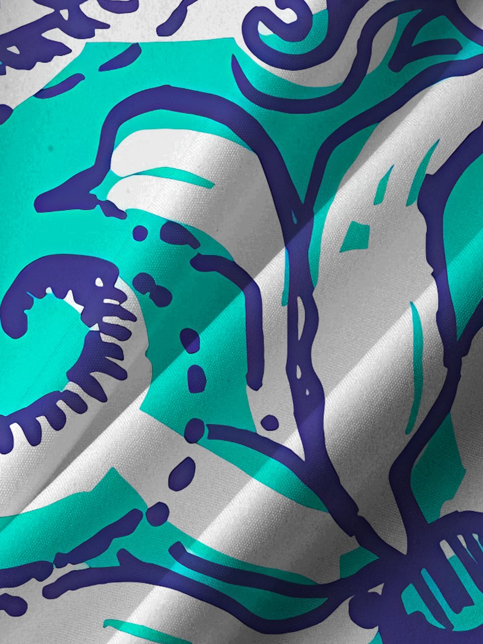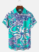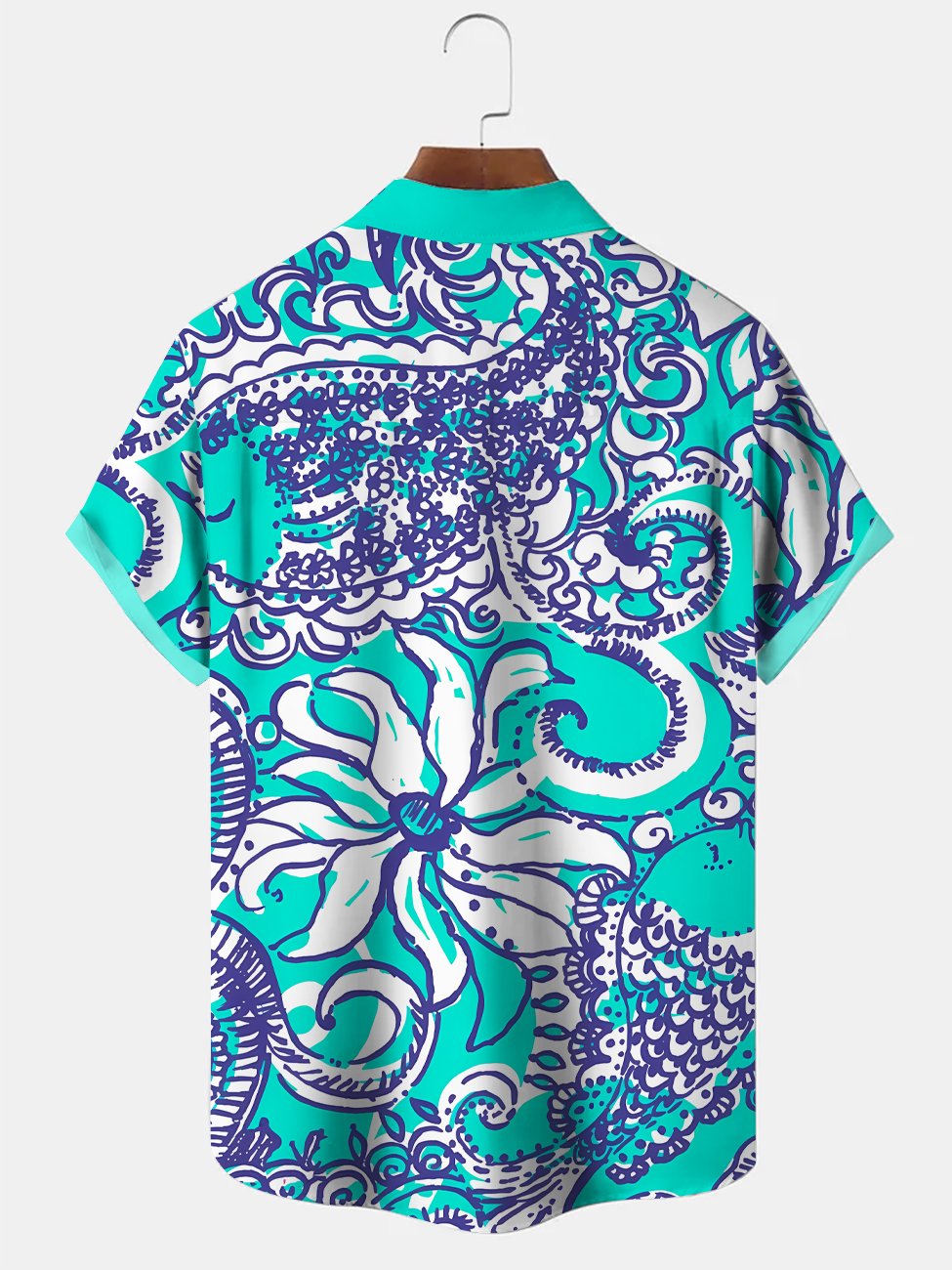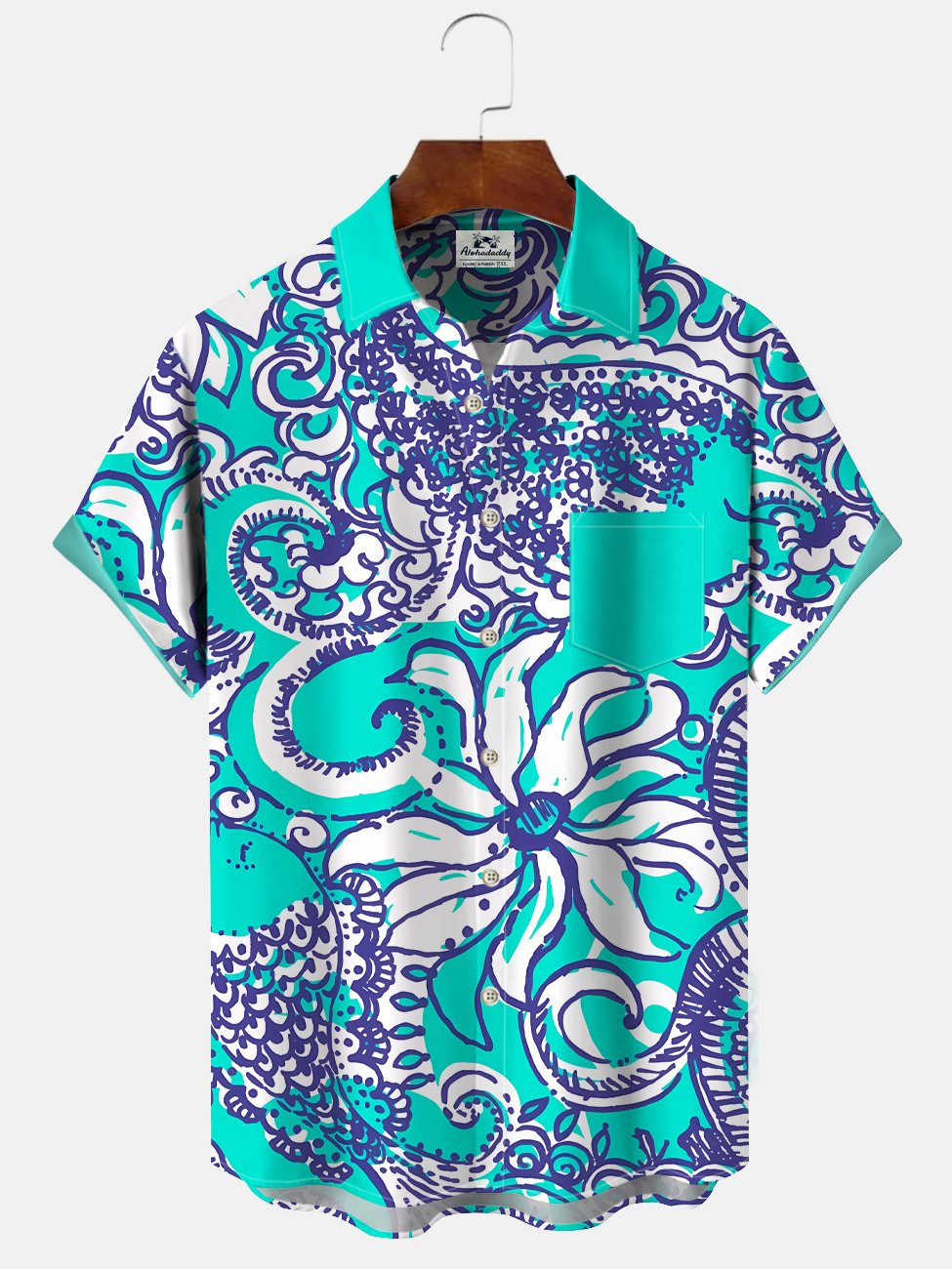 Alohadaddy Geometric Pattern Button Pocket Casual Short Sleeve Shirt
