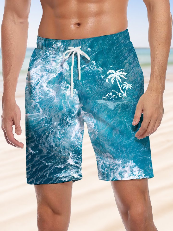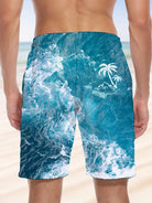 Alohadaddy Hawaii Casual Everyday Ocean Palm Trees Print Art Pockets Polyester Stretch Large Size Shorts Beach Pants