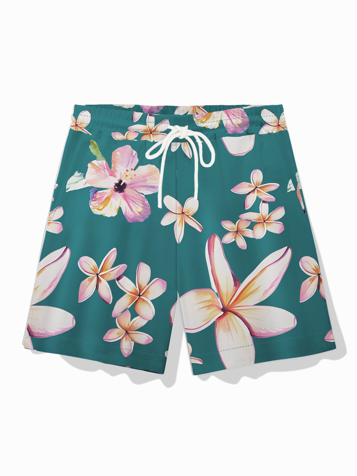 Pantalones cortos de playa Alohadaddy Hawaiian Green para hombre, con estampado floral, elásticos, de talla grande