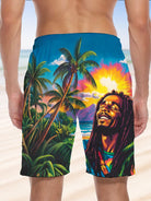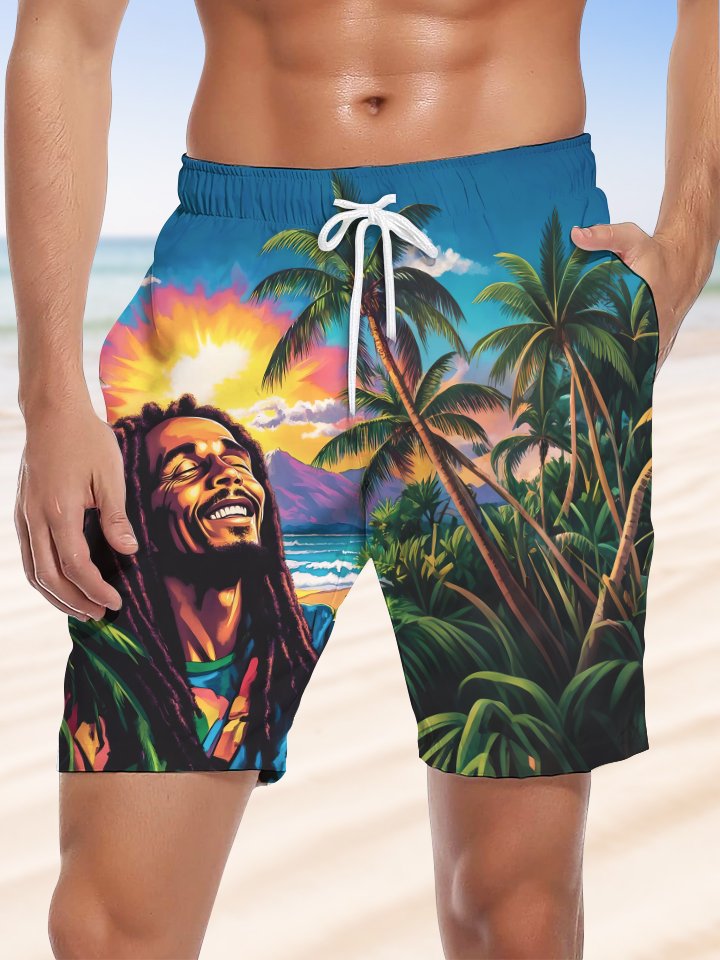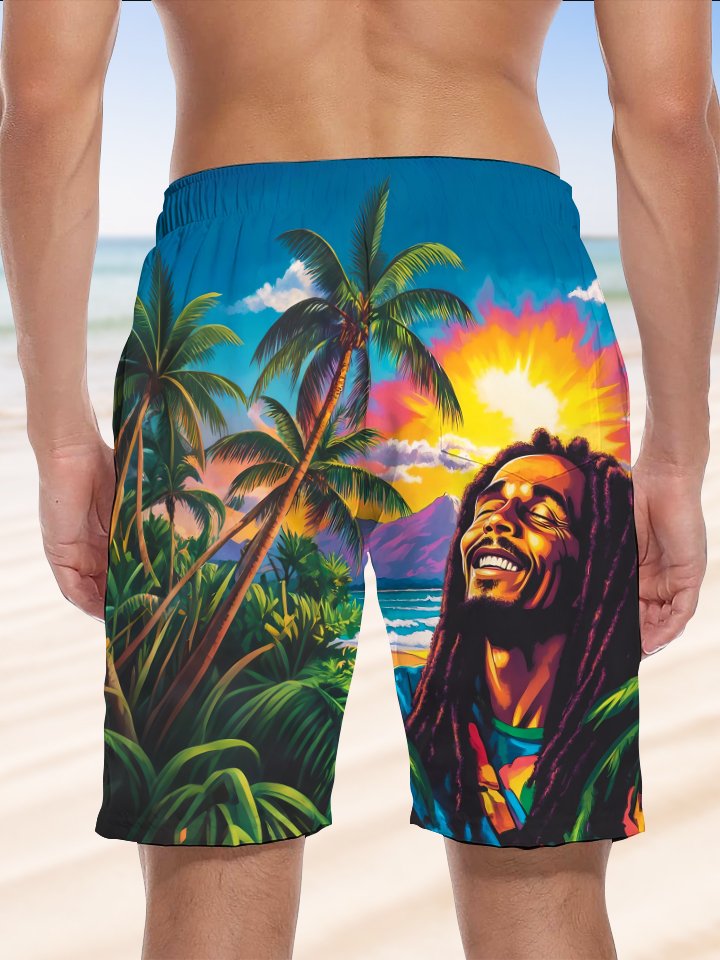 Alohadaddy Hawaiian People Palm Tree Print Art Drawstring Stretch Beach Shorts