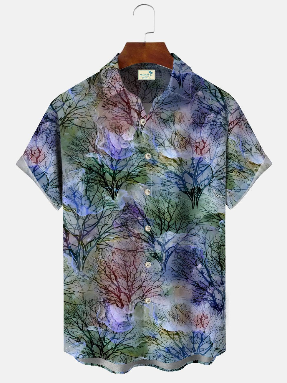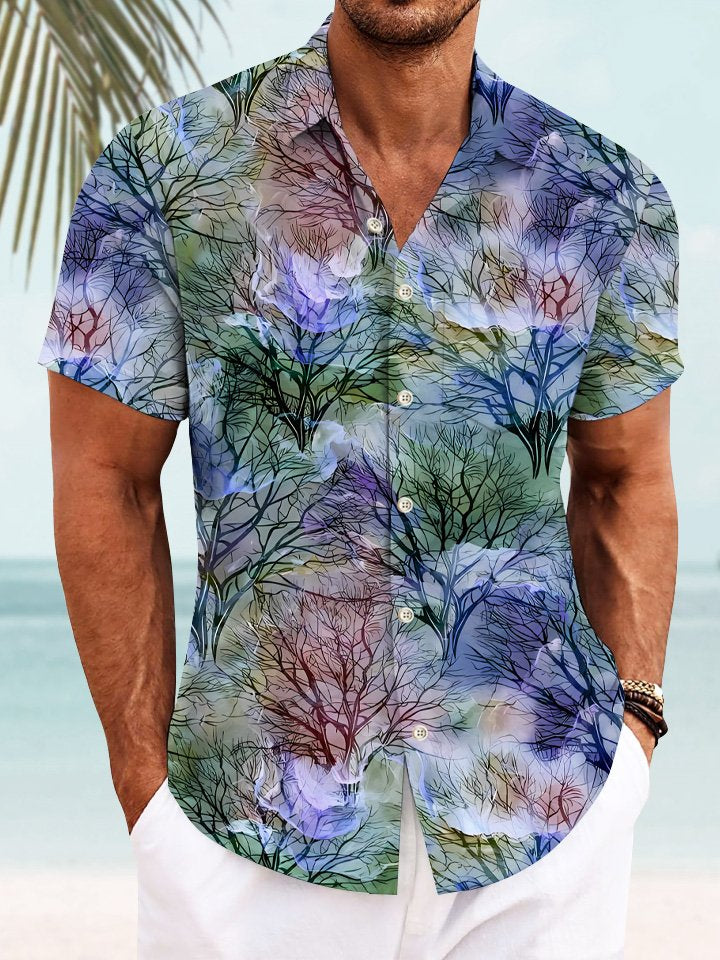 Camisa informal de manga corta con bolsillos y botones para hombre con diseño de árbol y plantas de verano de Alohadaddy