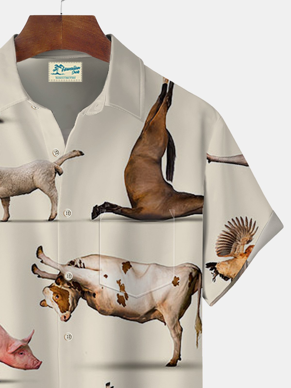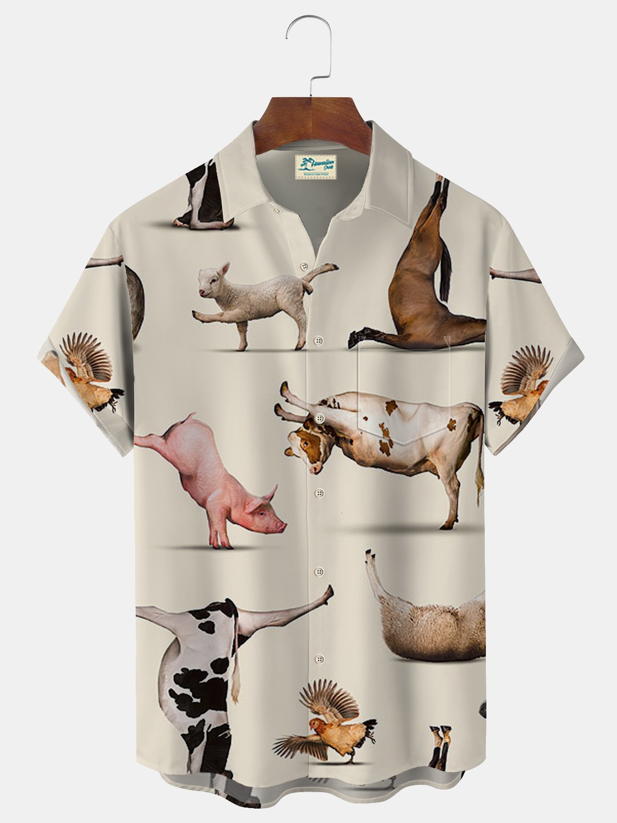 Camisa hawaiana de gran tamaño con bolsillo para hombre, con estampado divertido de animales, gallo, cerdo y playa de Alohadaddy