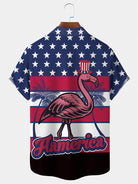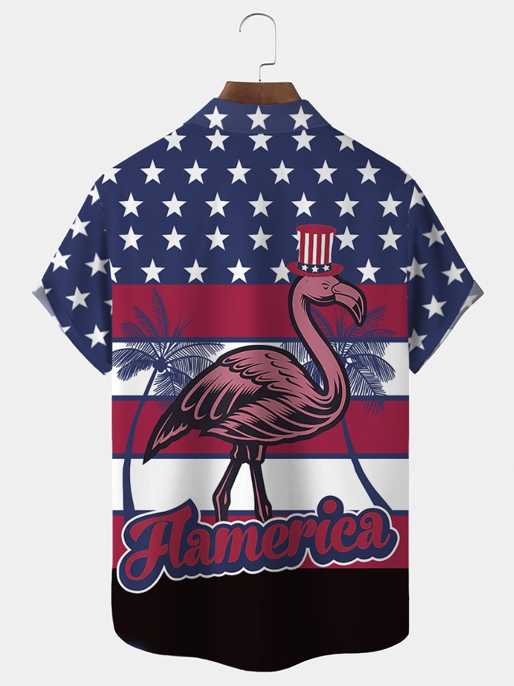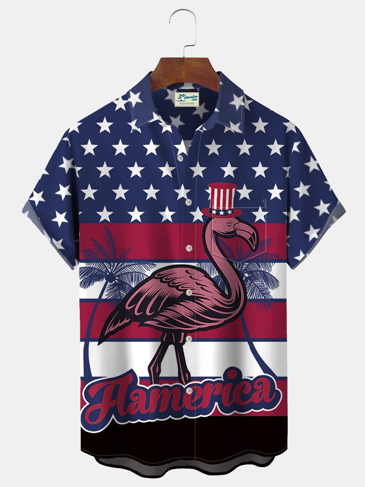 Camisa hawaiana extragrande con bolsillos y estampado de bandera de flamencos para hombre de Alohadaddy