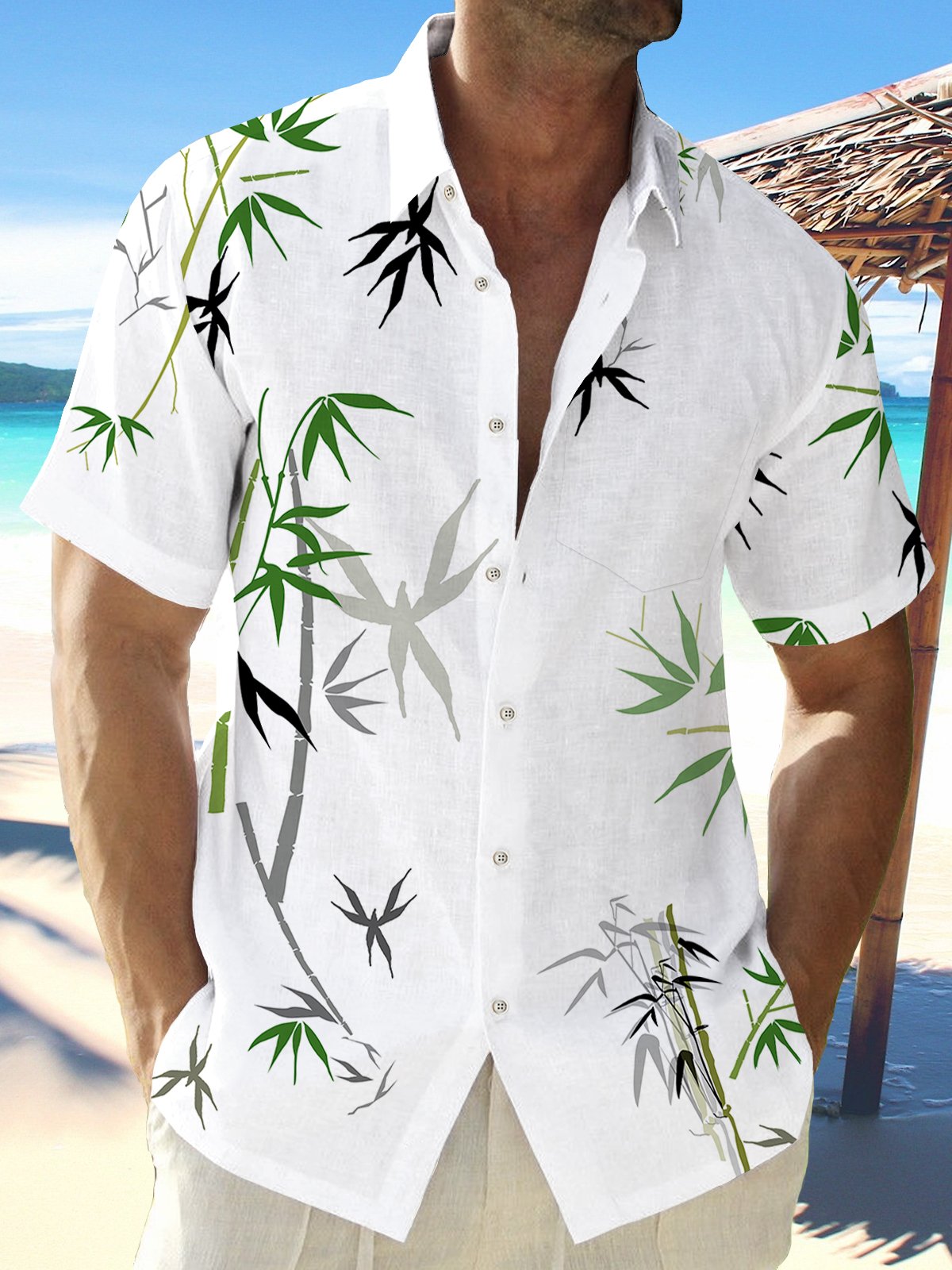 Camisa hawaiana de gran tamaño con estampado de bambú para hombre de Alohadaddy, con bolsillo y antiarrugas
