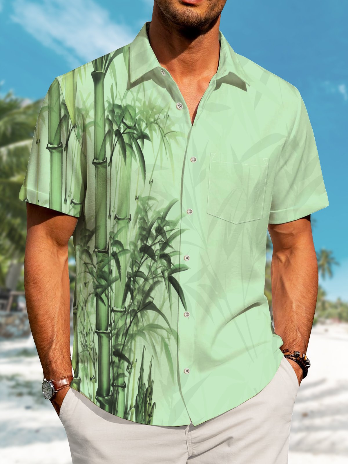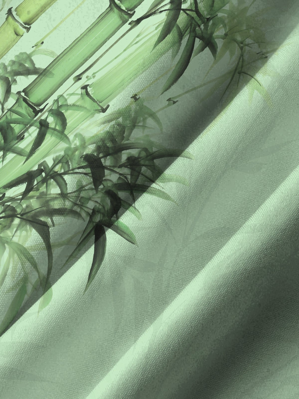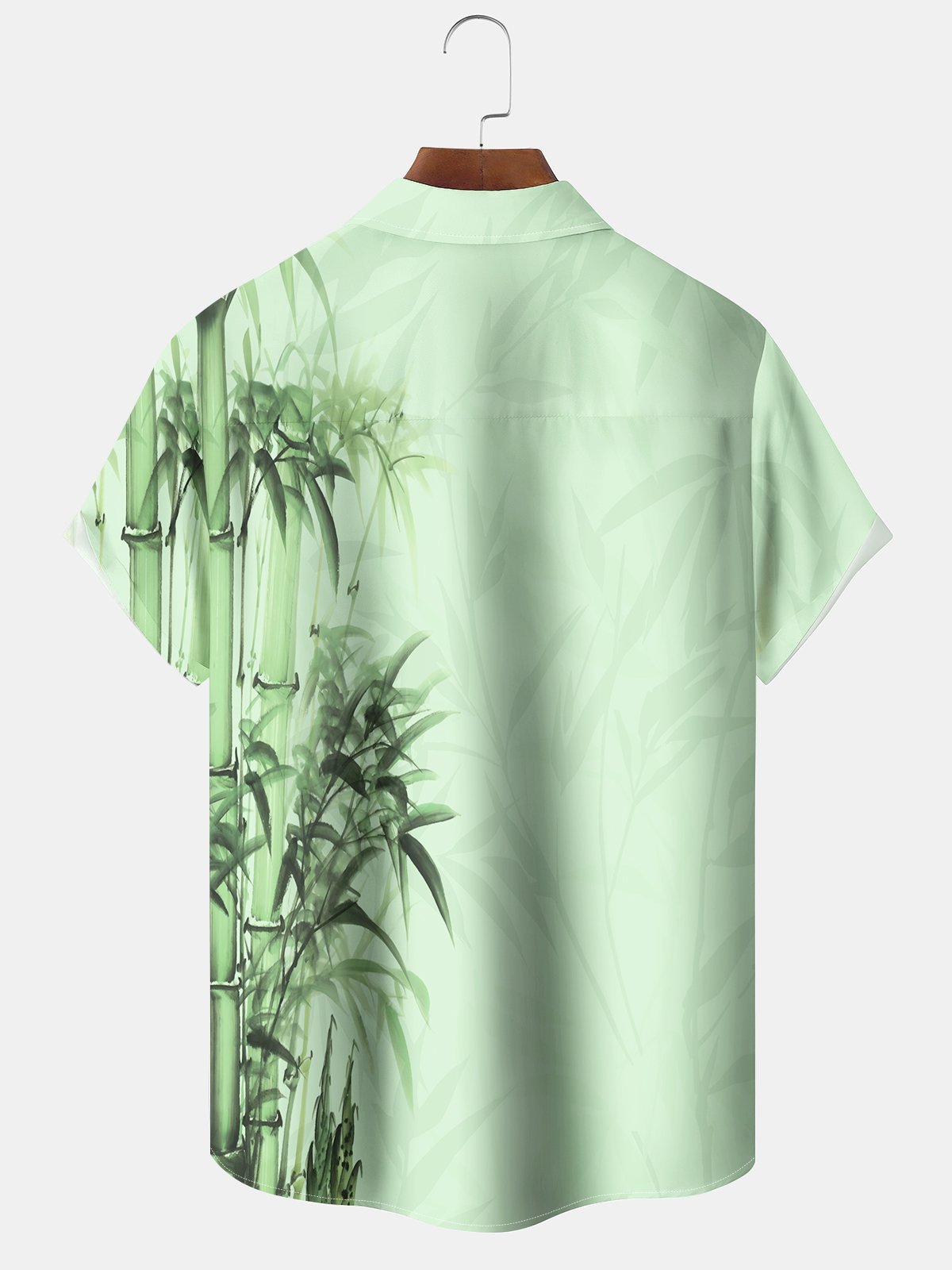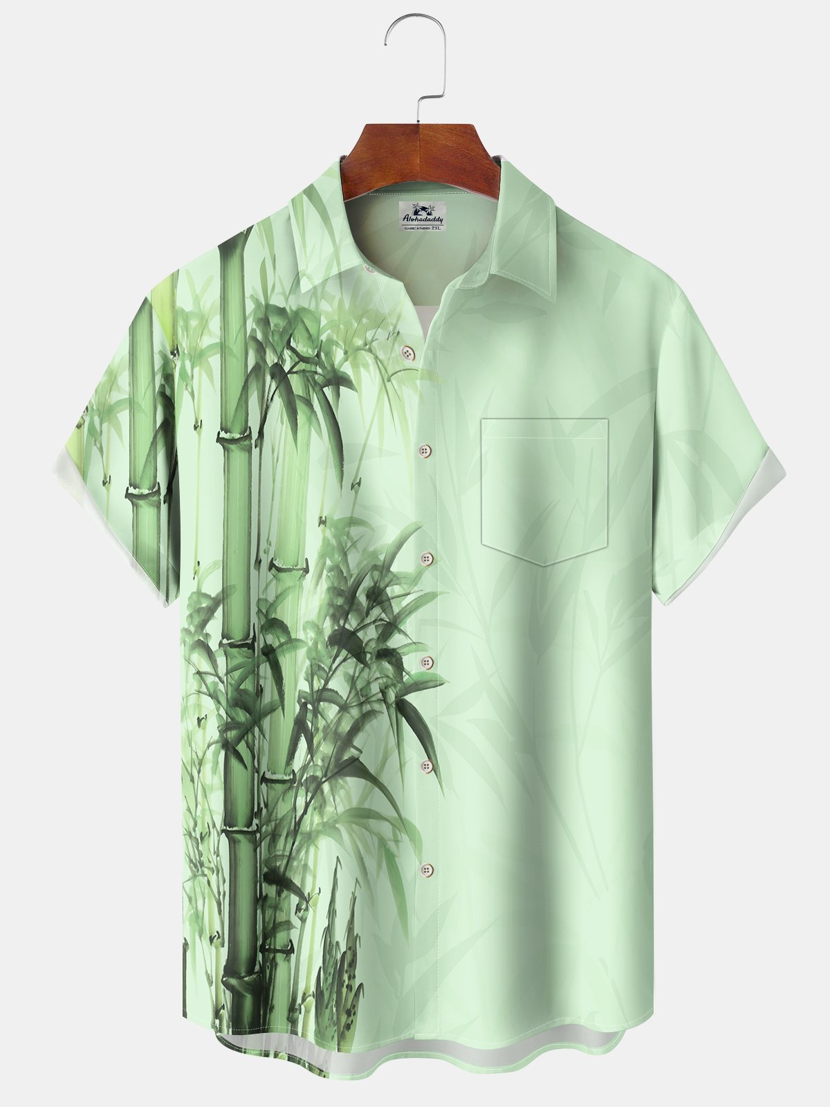 Alohadaddy Casual Bamboo Contrast Bamboo Leaves Print Art Pockets Buttons Elastic Oversized Shirt