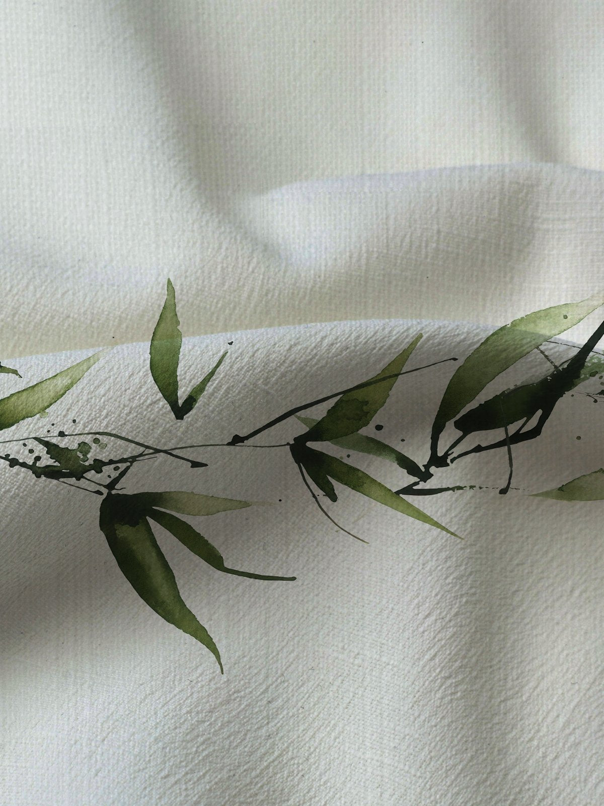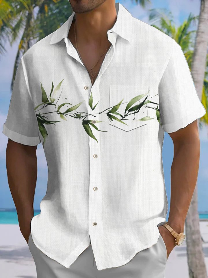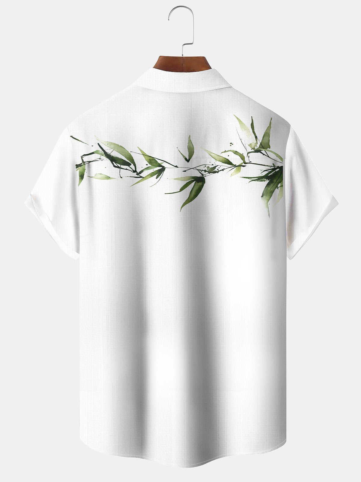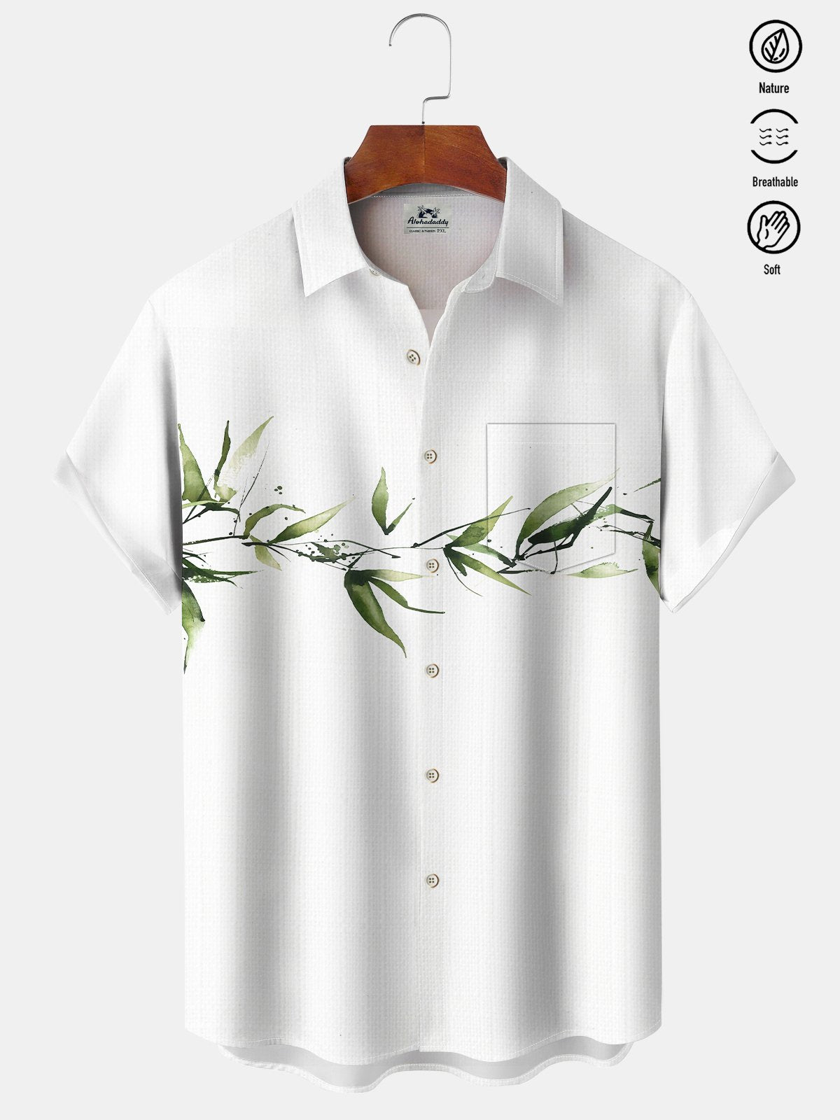 Alohadaddy Casual Series Bamboo Leaves Bamboo Print Art Button Cardigan Pockets Breathable Stretch Long Oversized Shirt