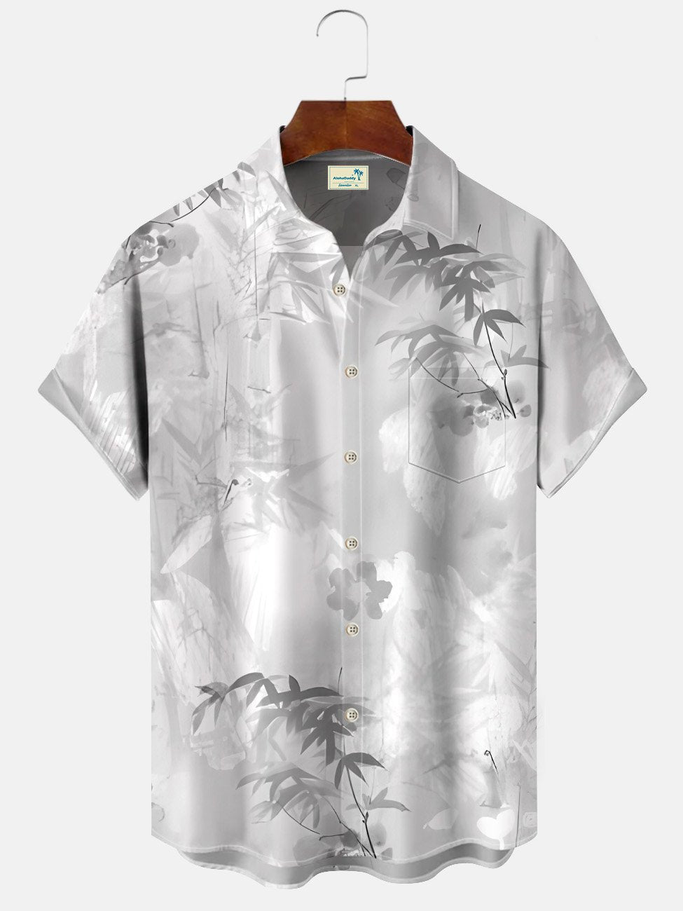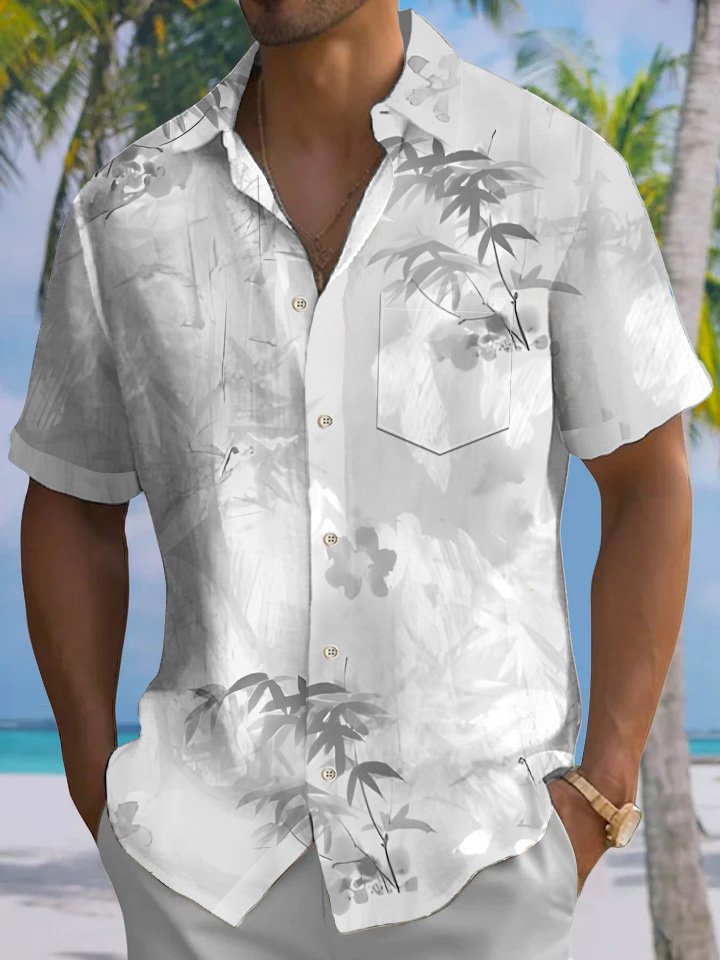 Camisa informal de manga corta con bolsillos y botones de bambú de Alohadaddy Plant