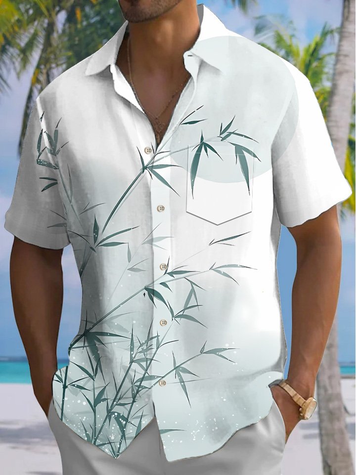 Camisa informal de verano con estampado de plantas y bambú de Alohadaddy