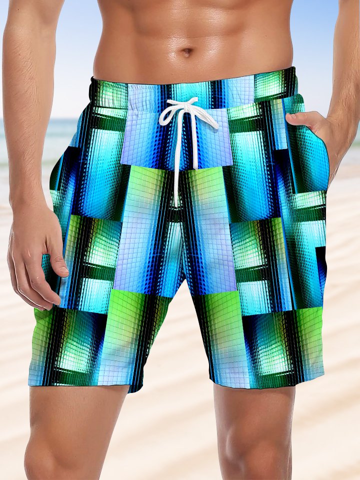 Alohadaddy Geometric Gradient Pocket Casual Beach Shorts