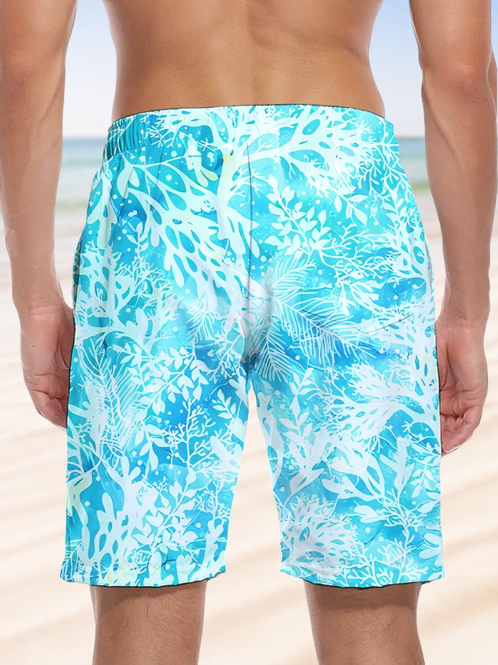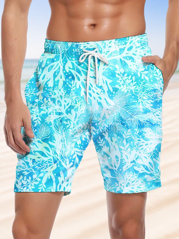 Alohadaddy Plant Flower Pocket Drawstring Casual Beach Shorts