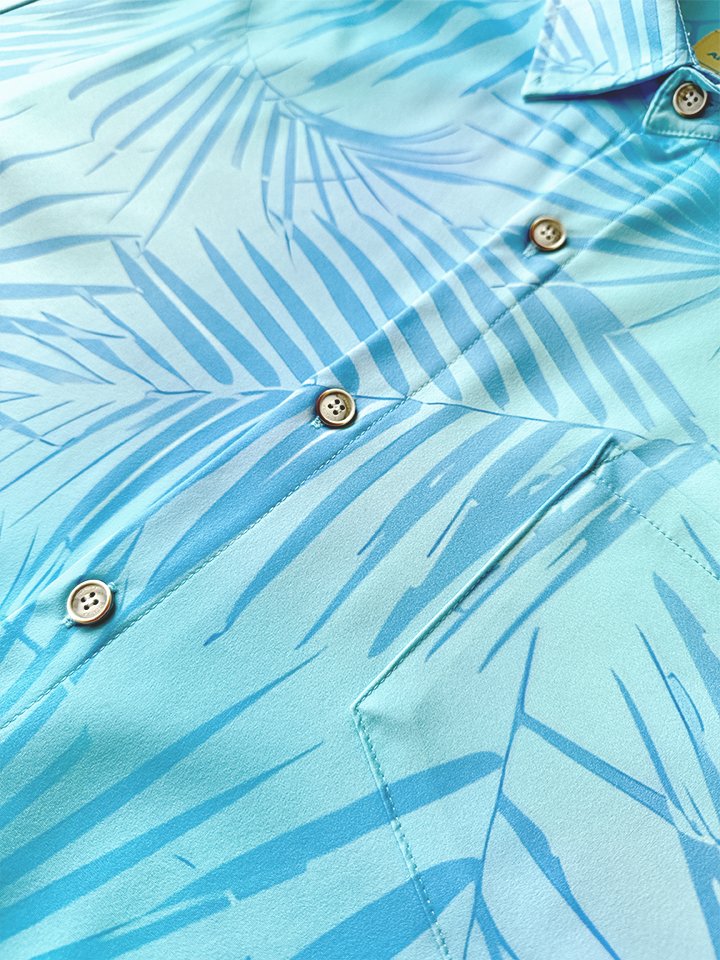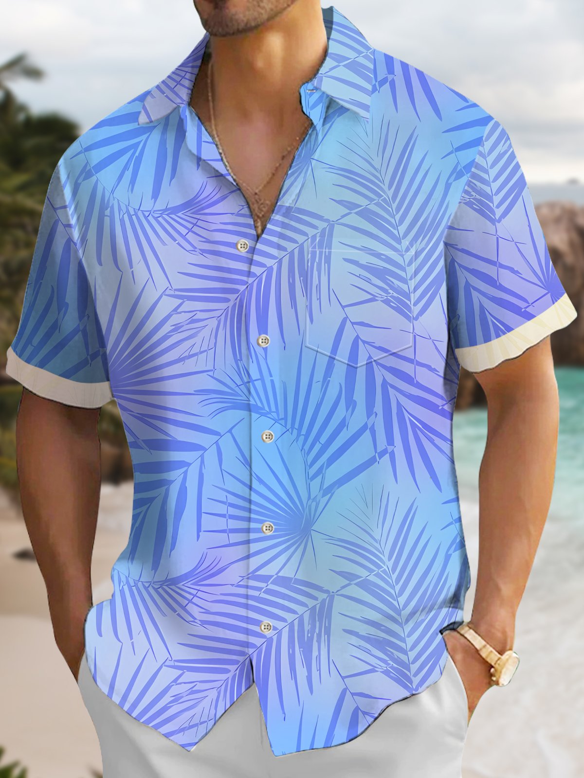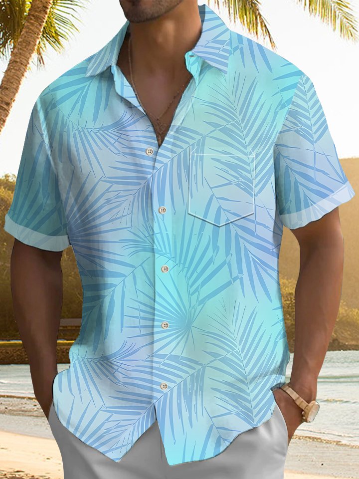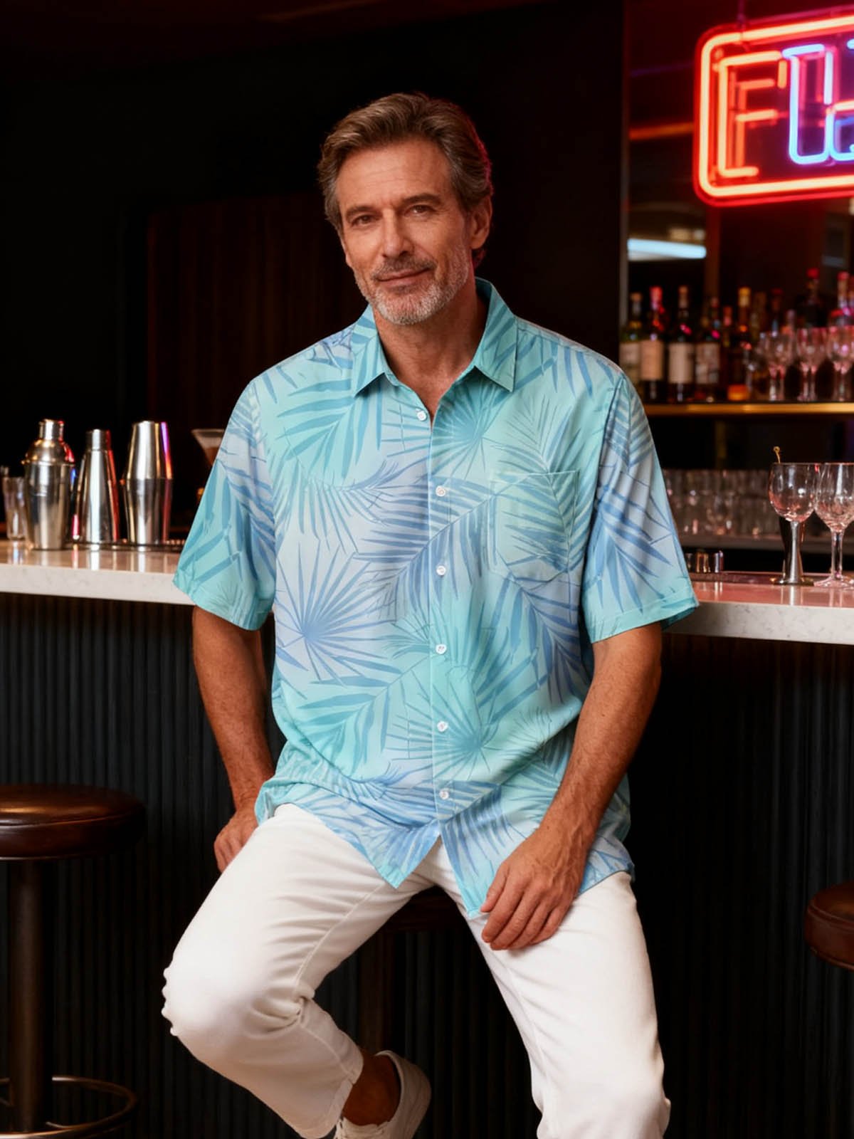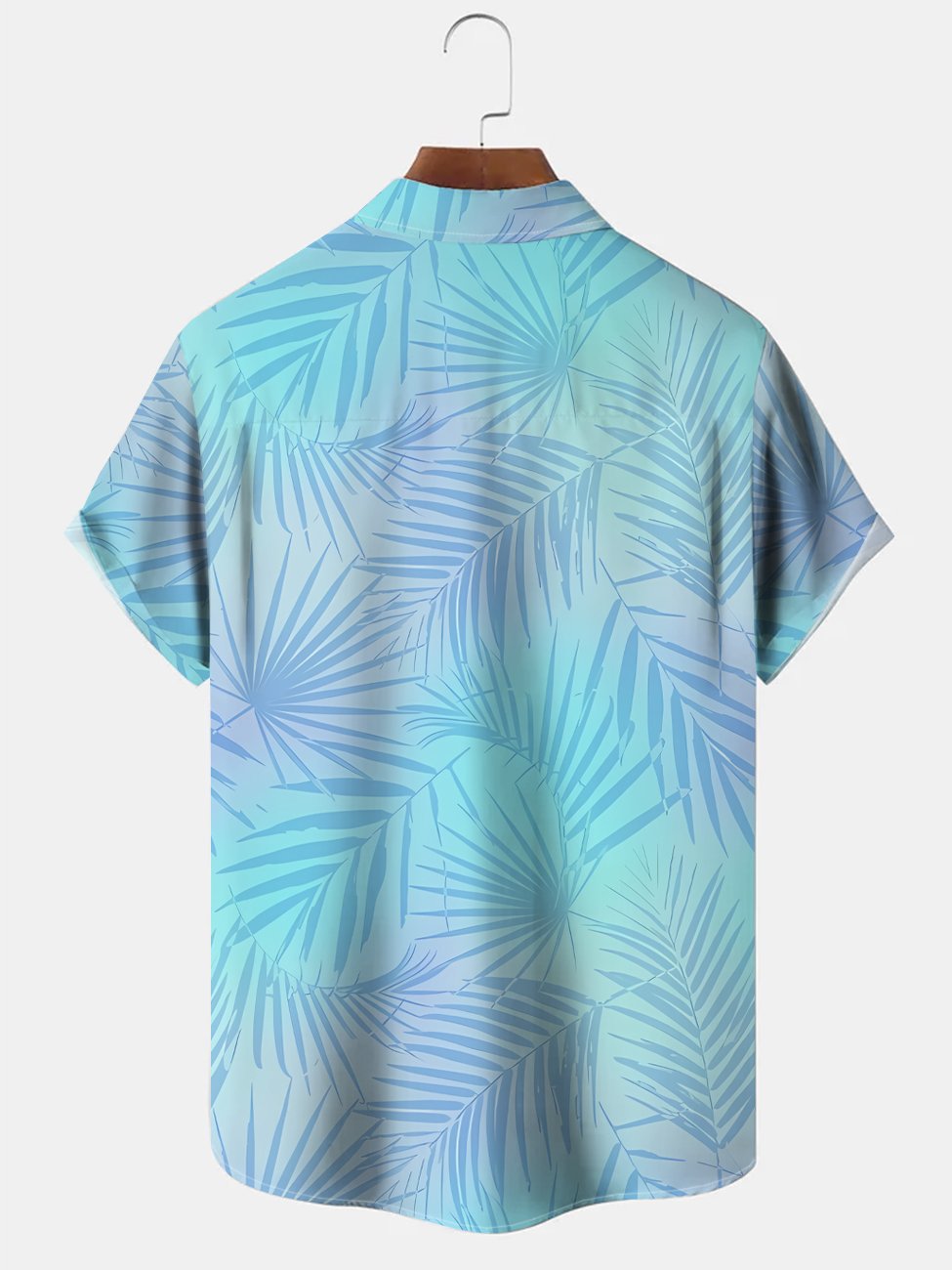Camisa de manga corta con estampado de hojas tropicales hawaianas y degradados para hombre