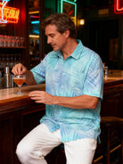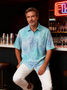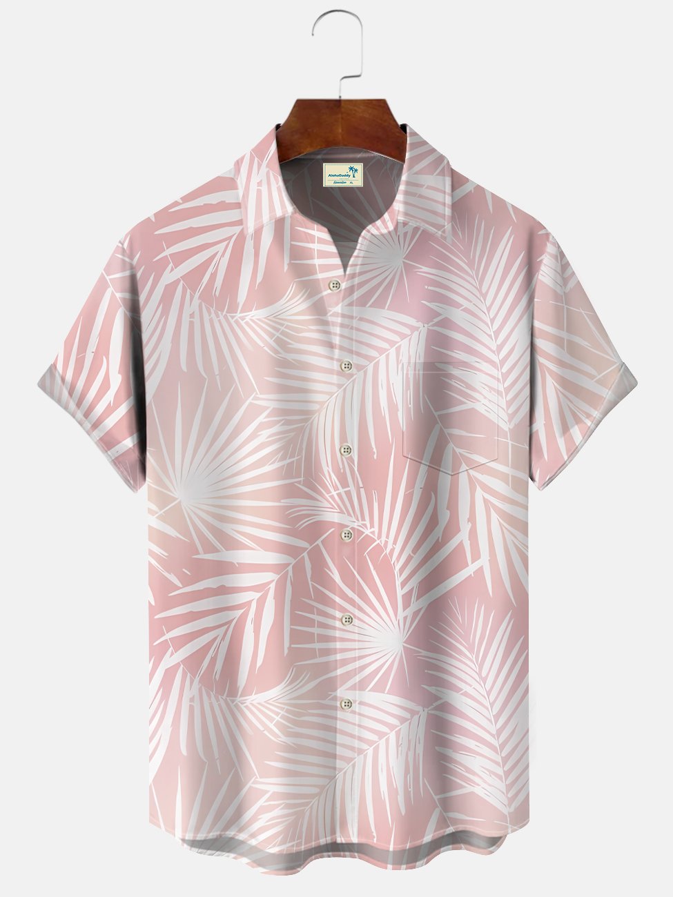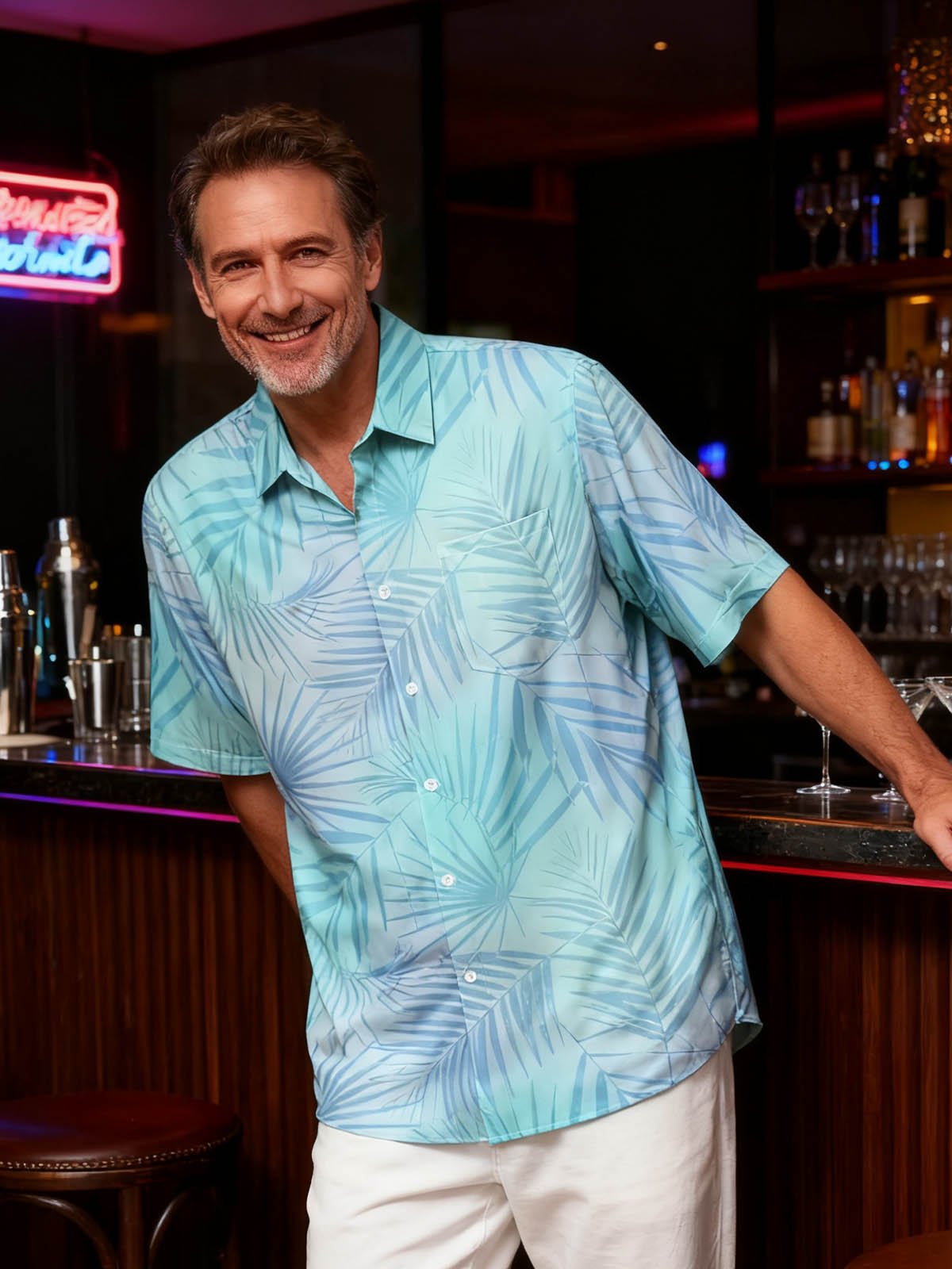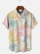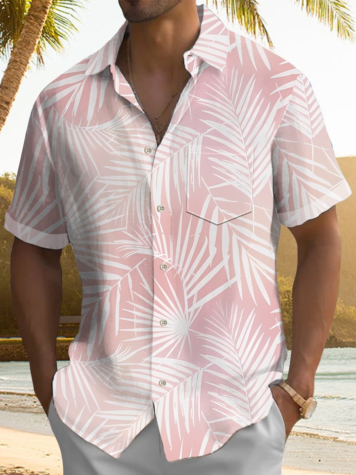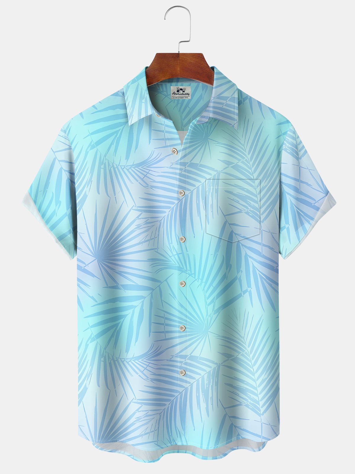 Camisa de manga corta con estampado de hojas tropicales hawaianas y degradados para hombre