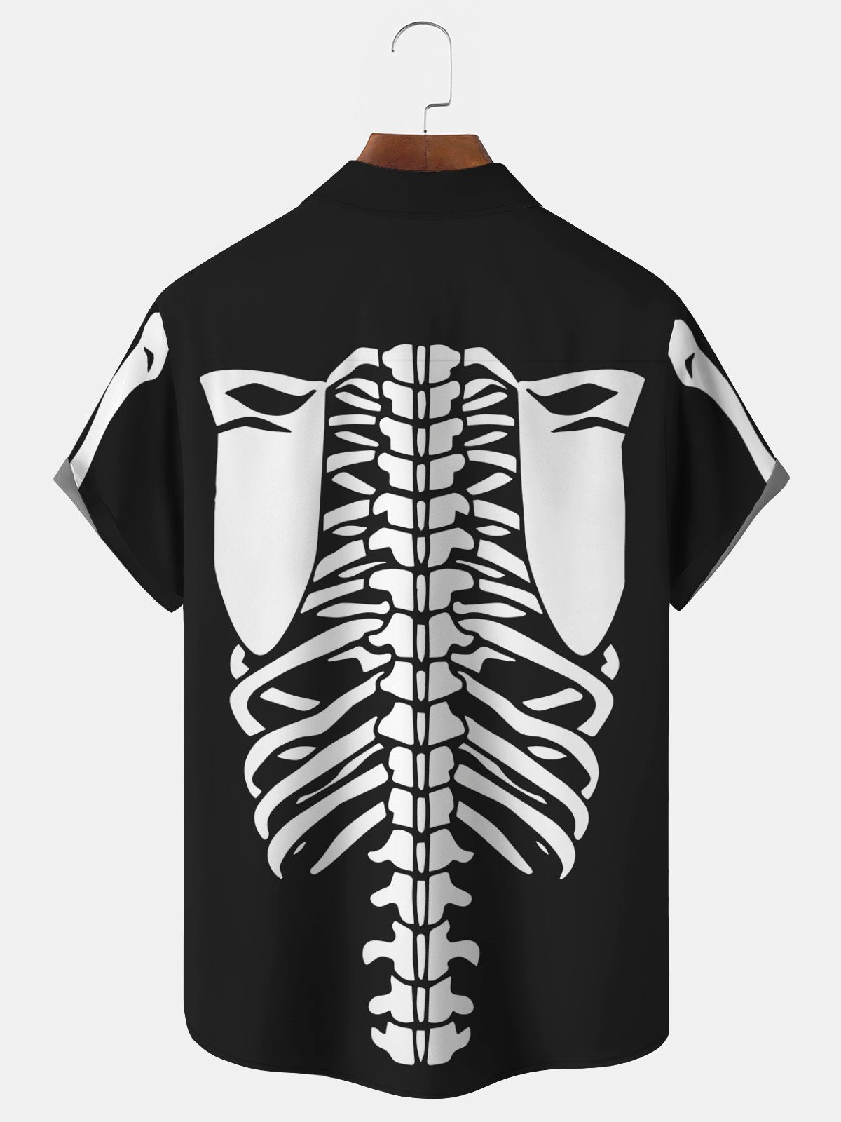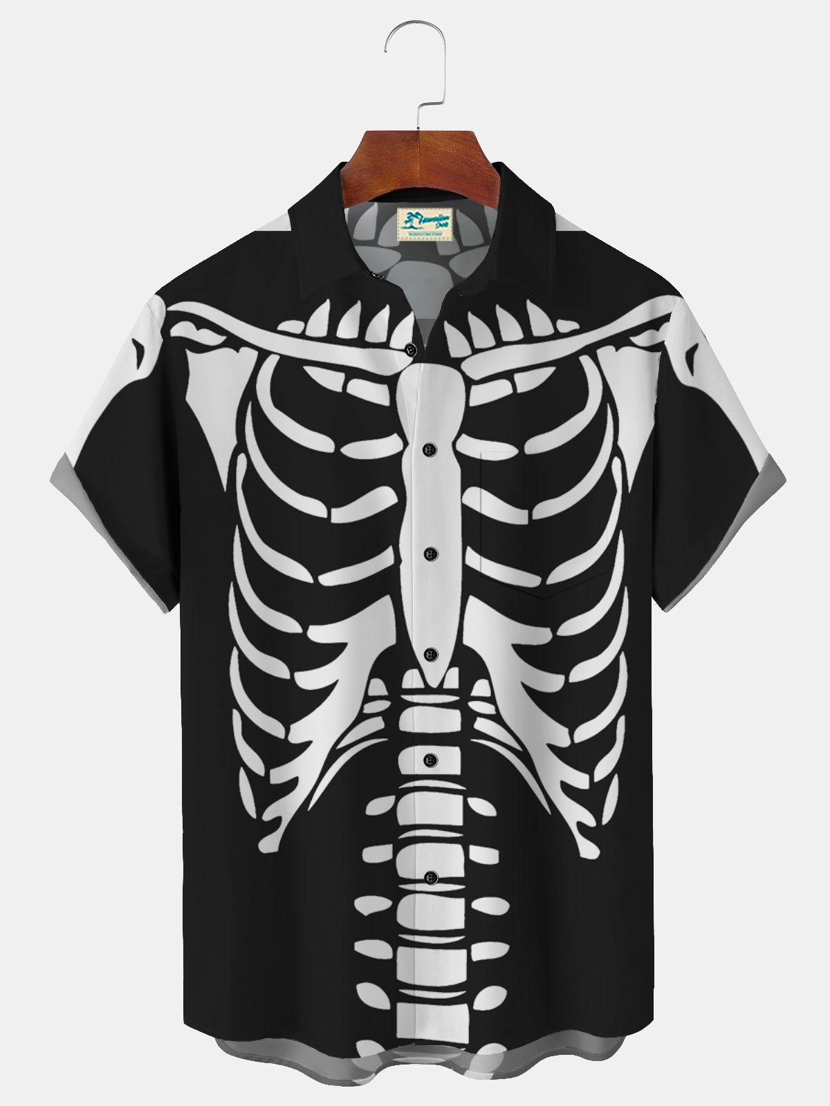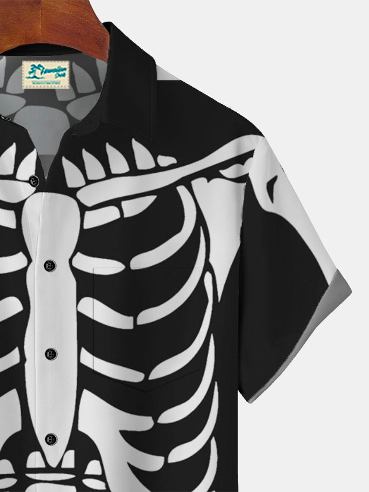 Camisa hawaiana extragrande con bolsillos para hombre con diseño de esqueleto de Halloween de Alohadaddy