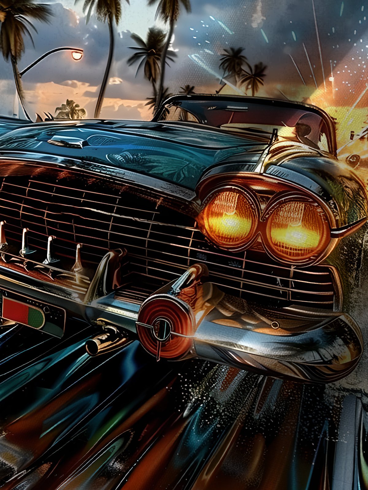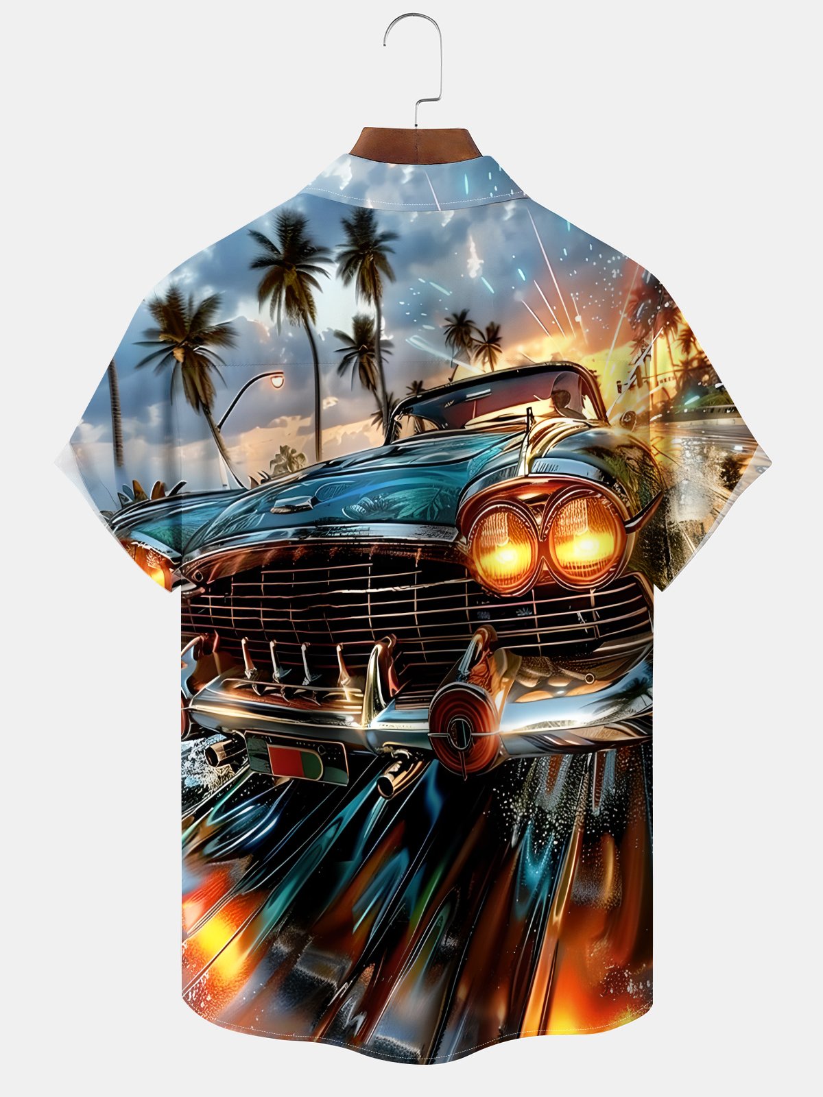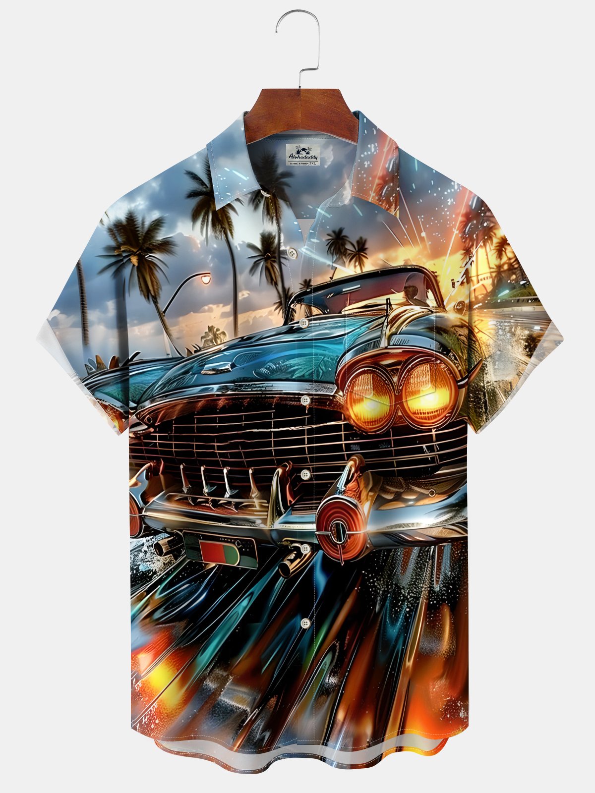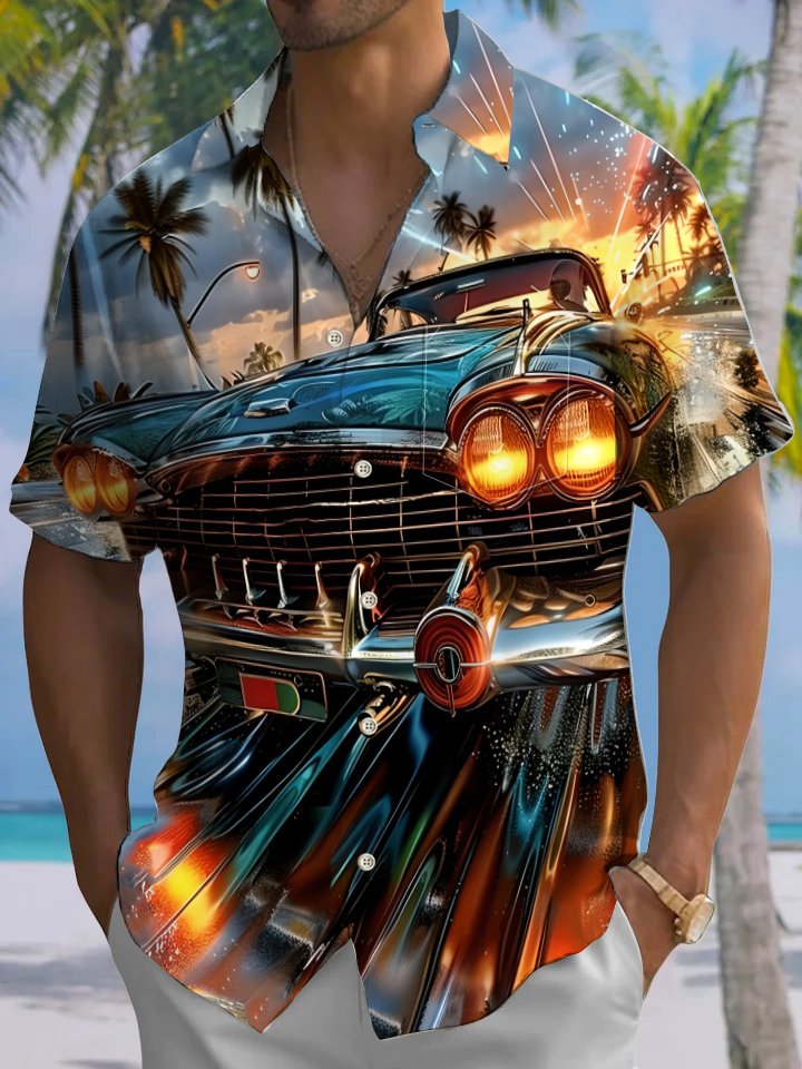 Alohadaddy Hawaii Daily Casual Car Print Art Button Pocket Cardigan Stretch Large Size Short Sleeve Shirt