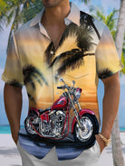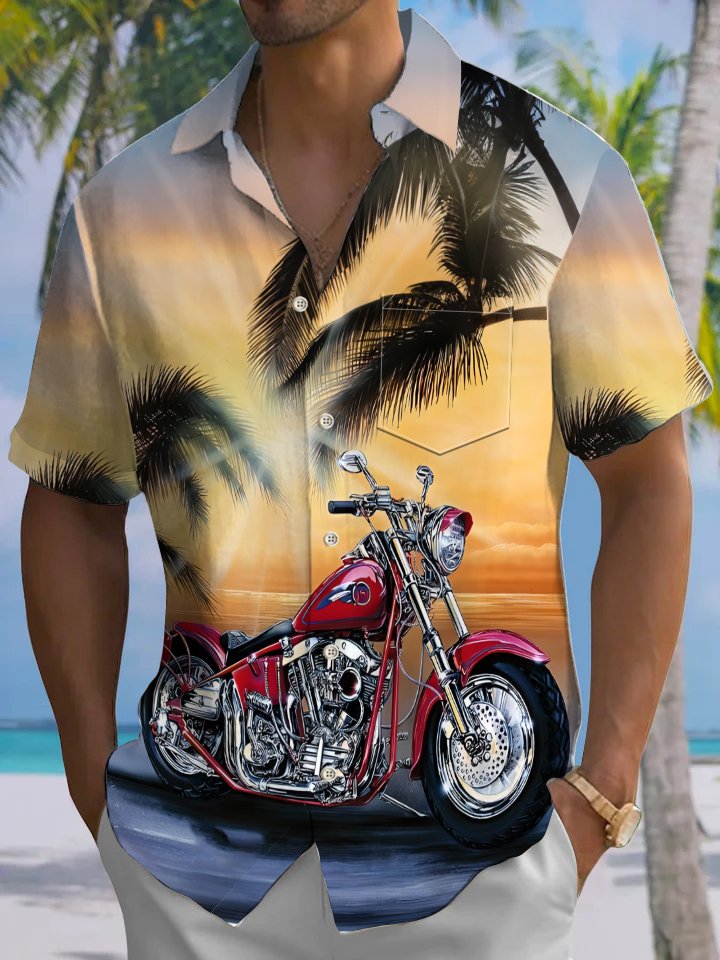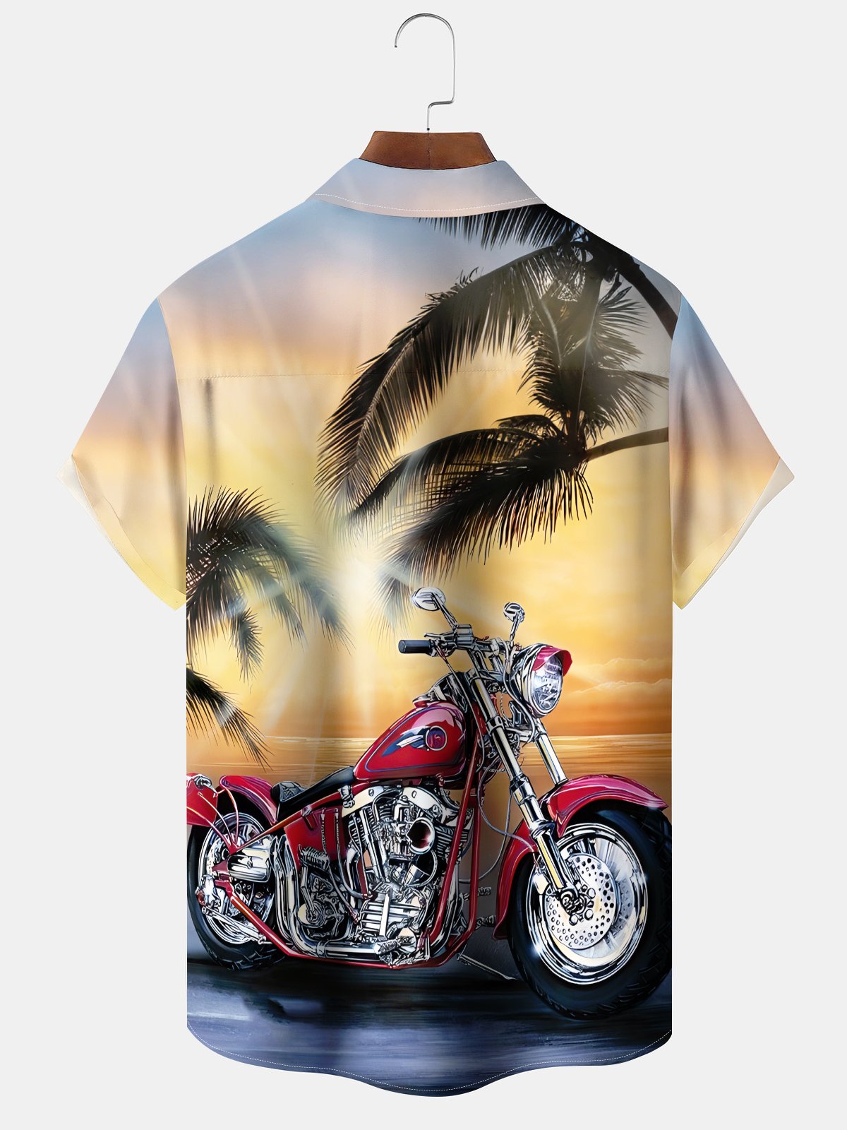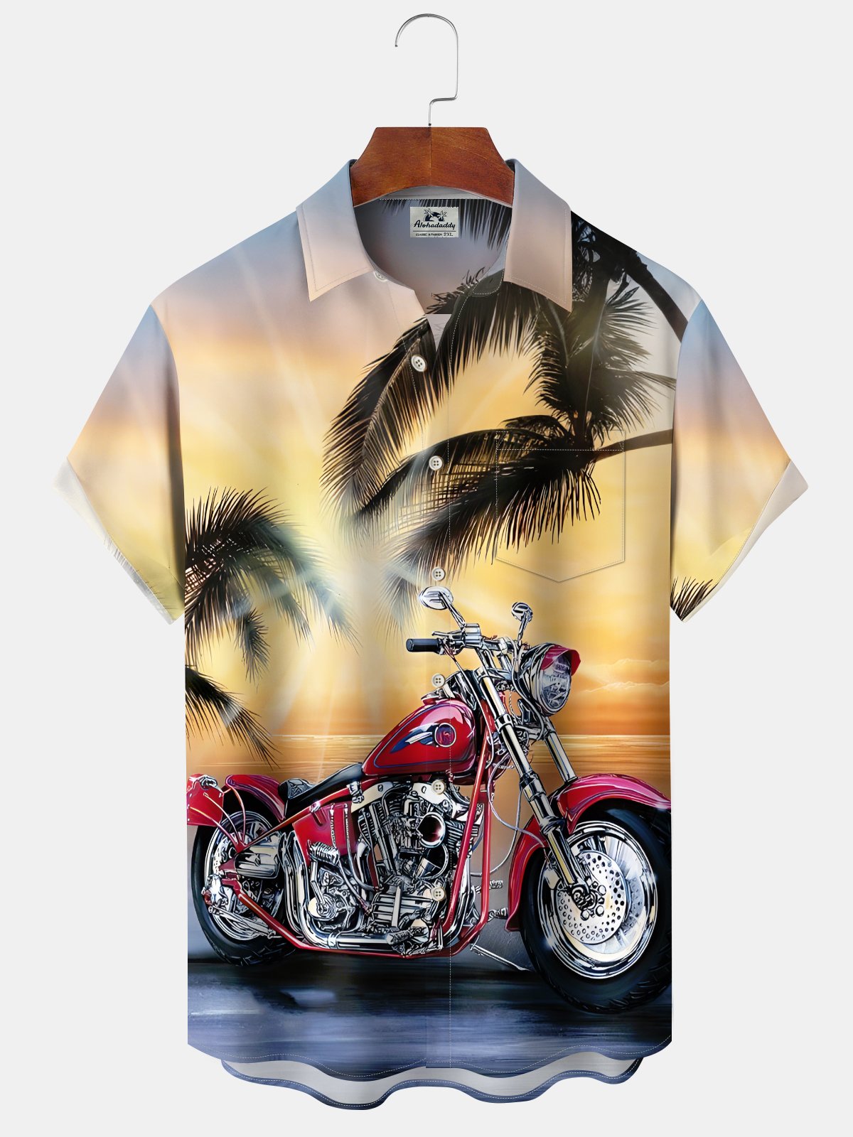 Alohadaddy Hawaiian Leisure Vacation Motorcycle Print Art Button Pocket Cardigan Stretch Large Size Short Sleeve Shirt