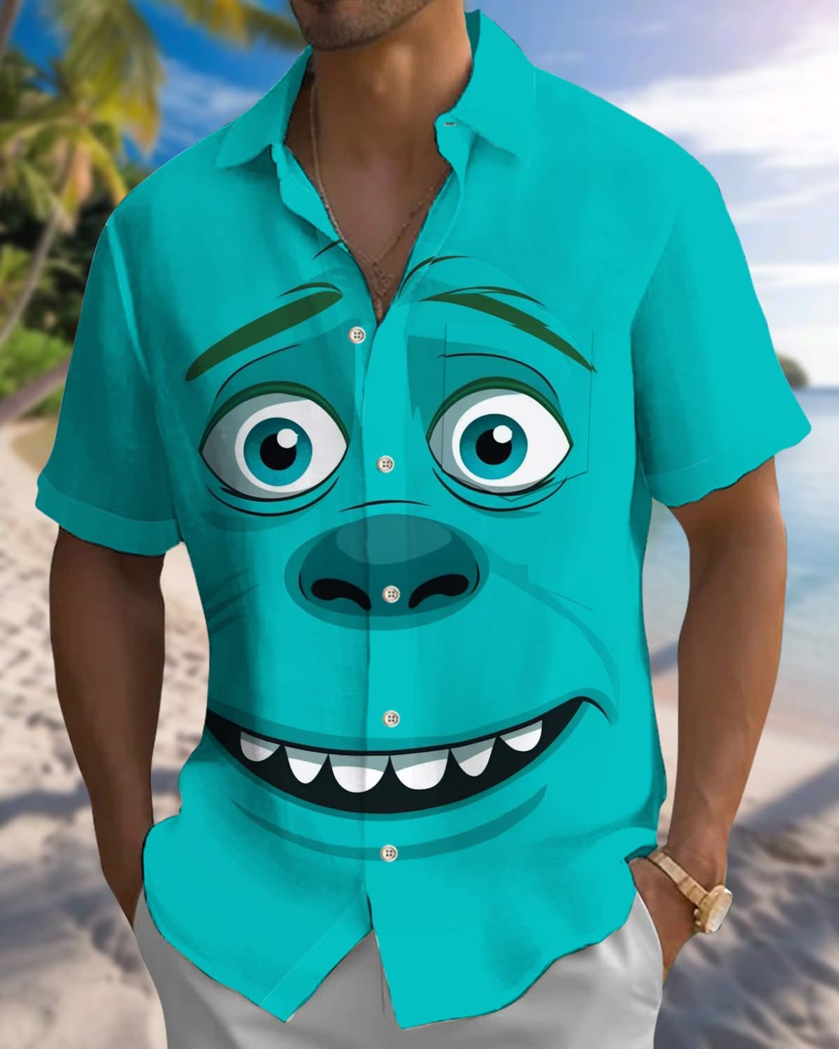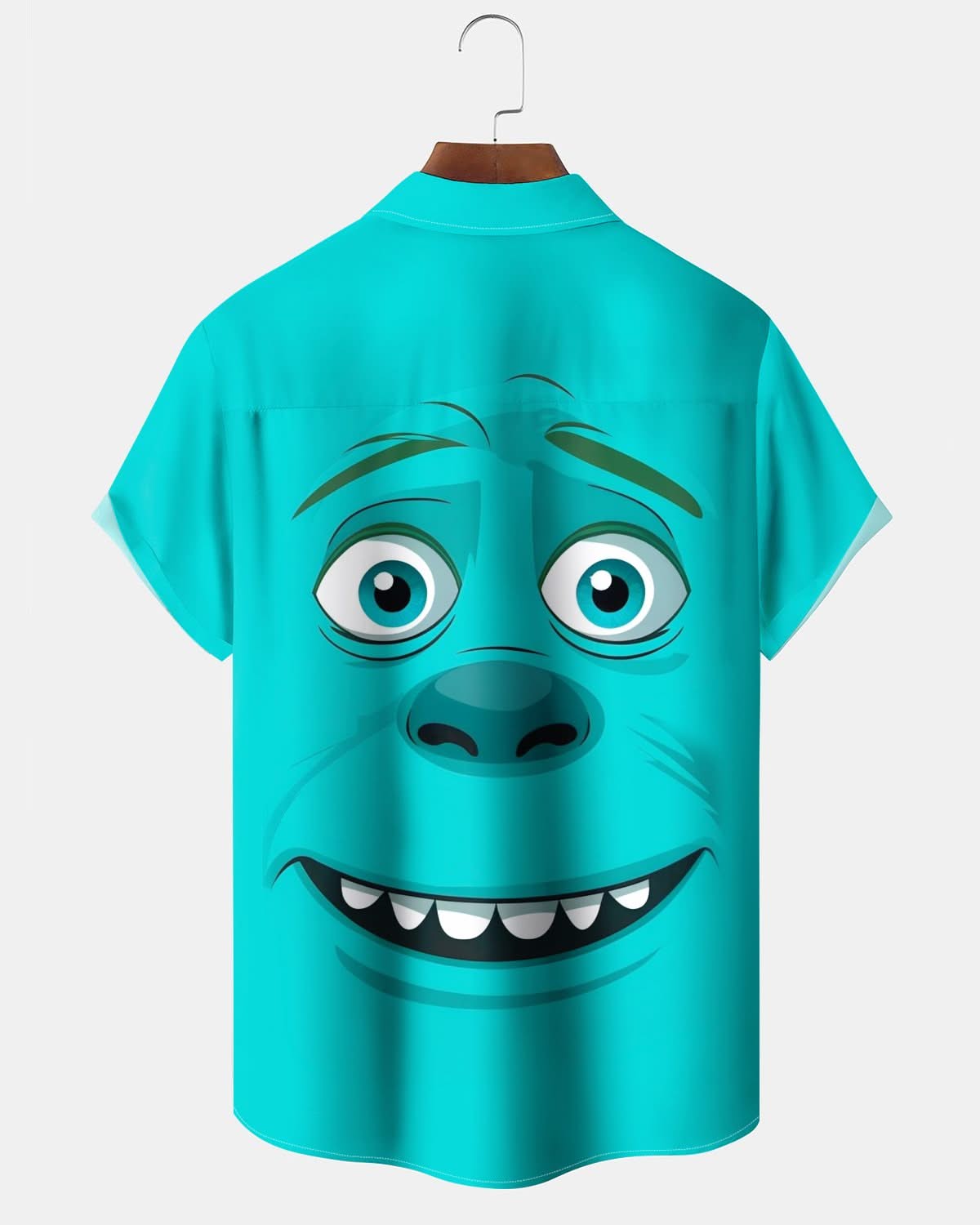Alohadaddy® Casual Cartoon Expression Art Pocket Elastic Button Men's Short Sleeve Shirt Big & Tall