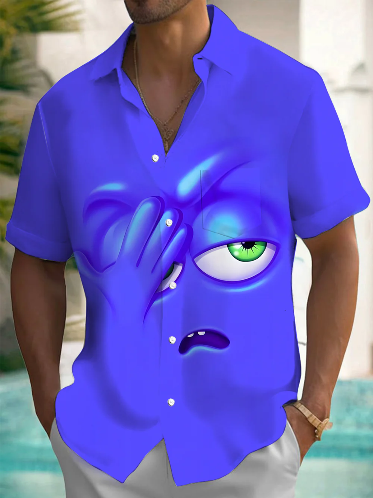 Alohadaddy® Casual Cartoon Print Art Chest Pocket Men's Short Sleeve Shirt Big & Tall