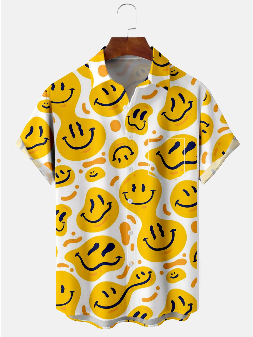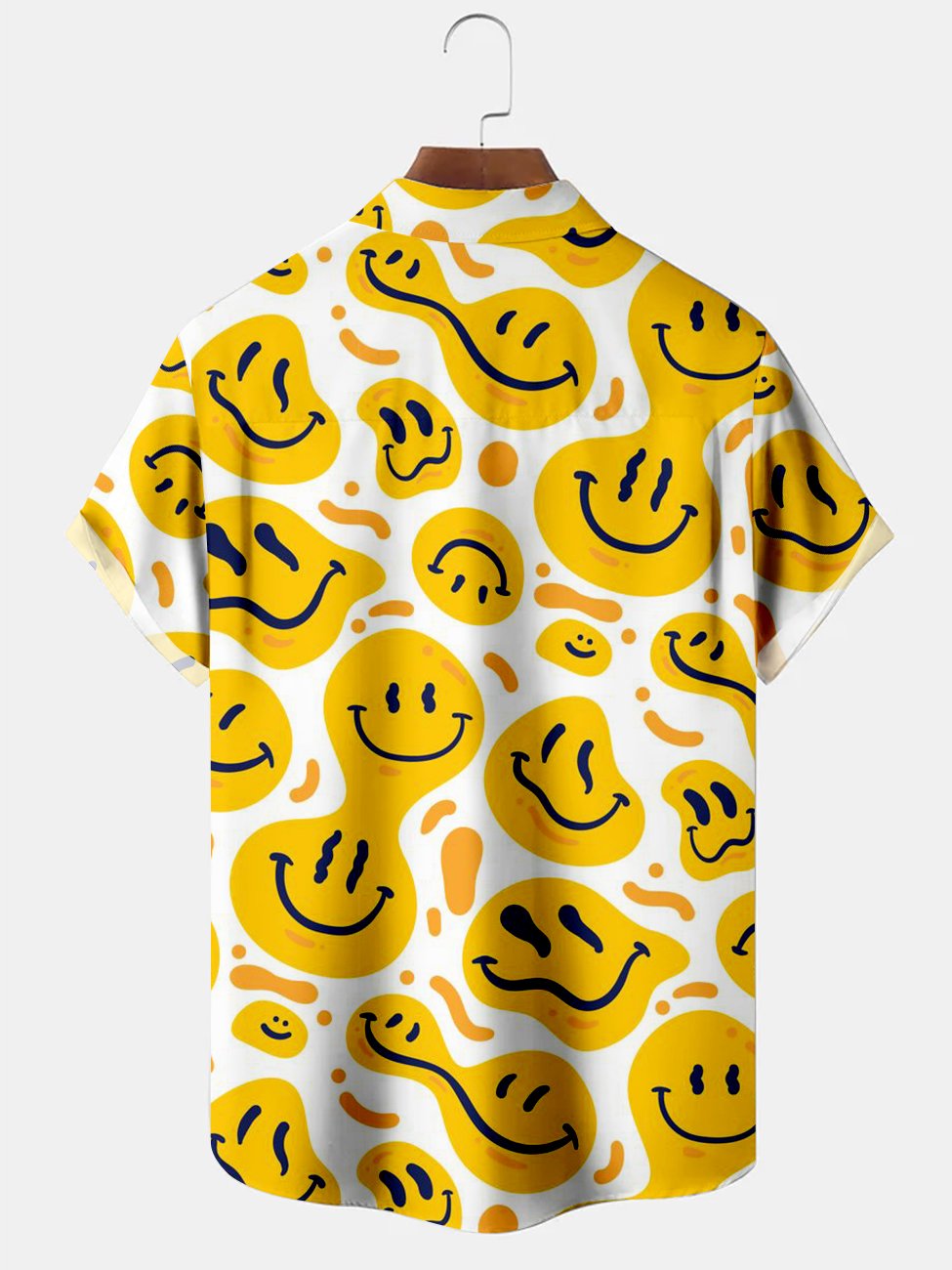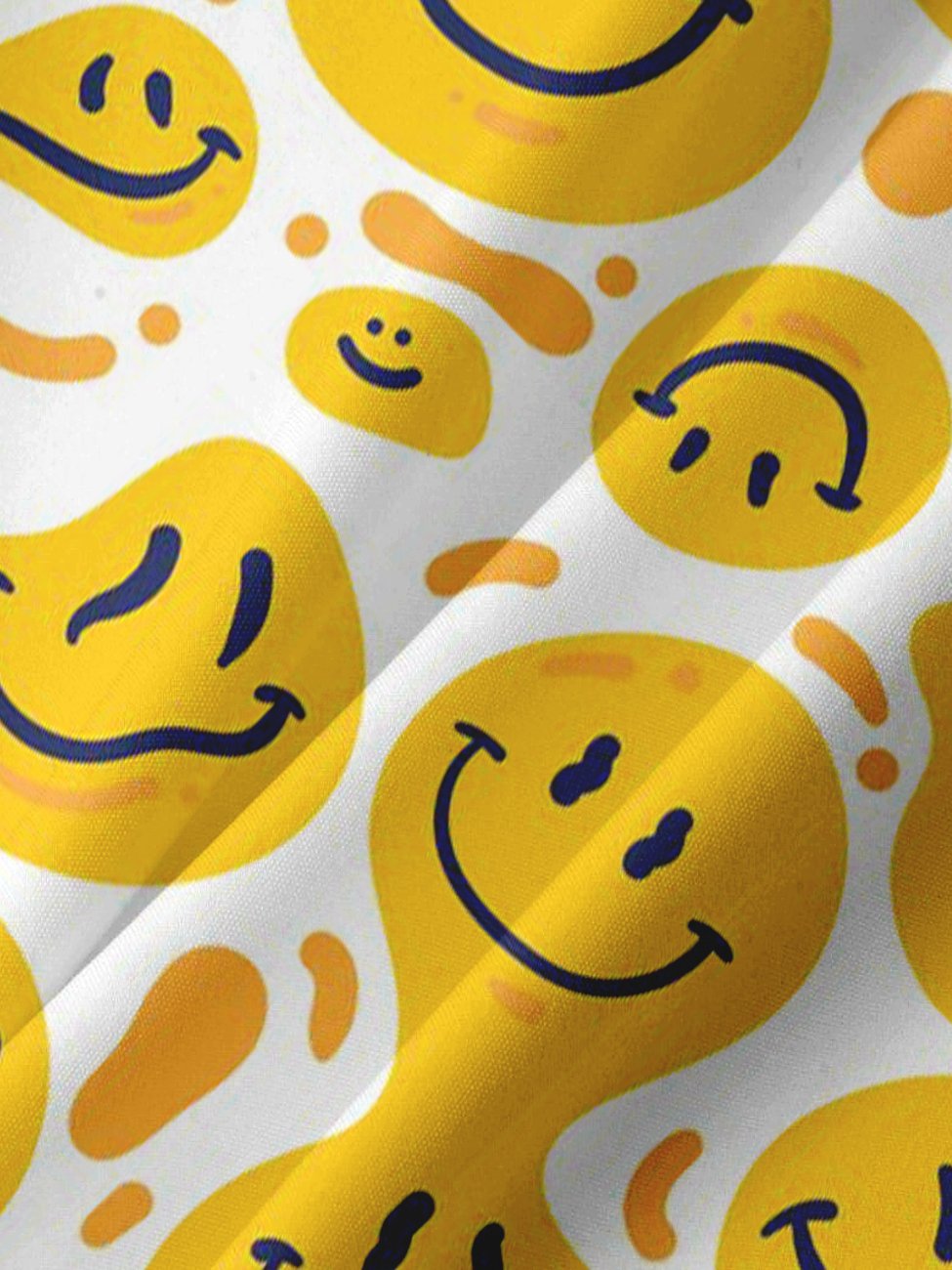 Camisas informales de mezcla de algodón con cara sonriente abstracta amarilla de Alohadaddy en tallas grandes
