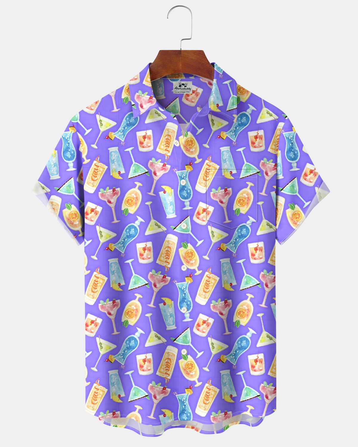 Alohadaddy® Cocktail Hawaiian Classic Watercolor Print Vacation Shirt
