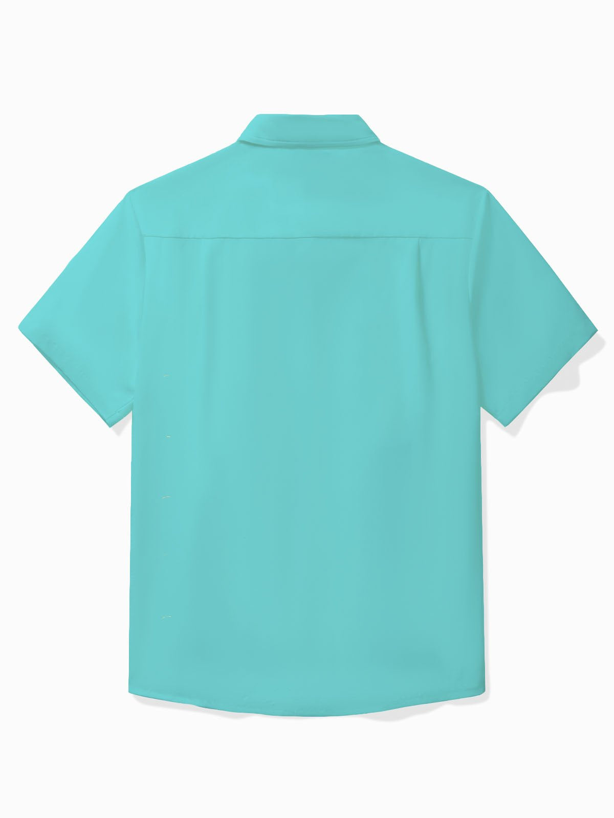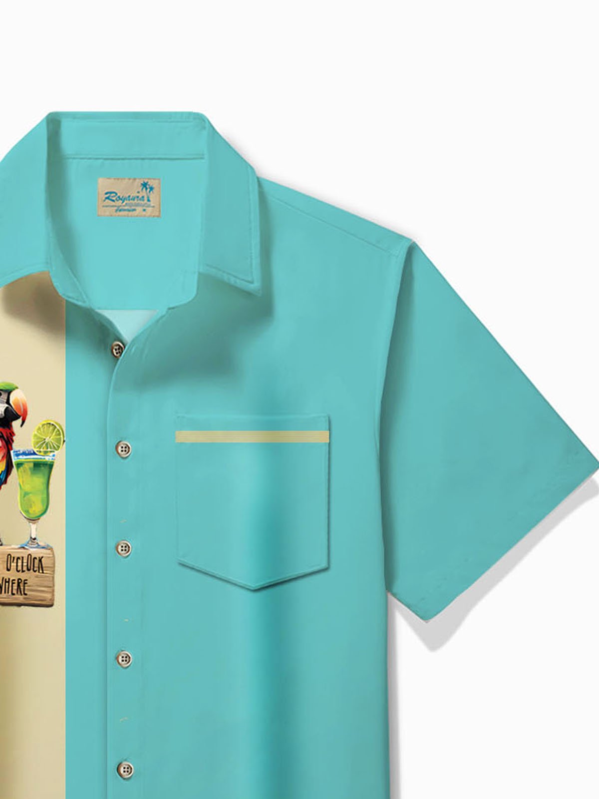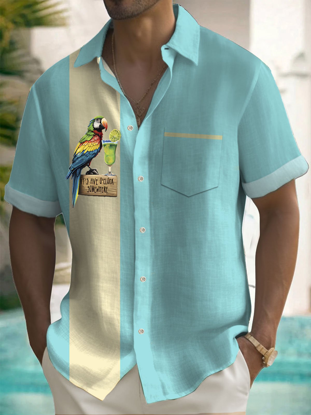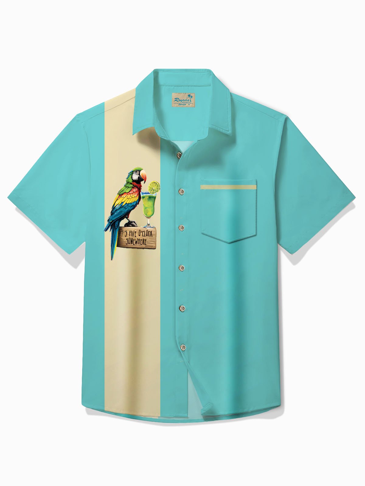 Camisa de manga corta con bolsillo abotonado para hombre con estampado de cóctel de loro hawaiano Alohadaddy