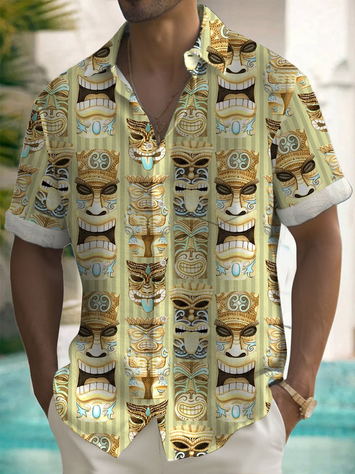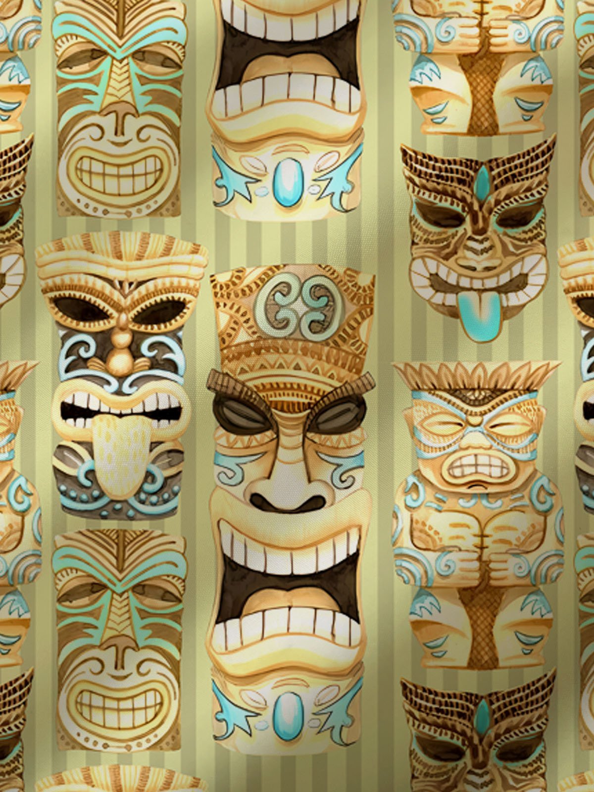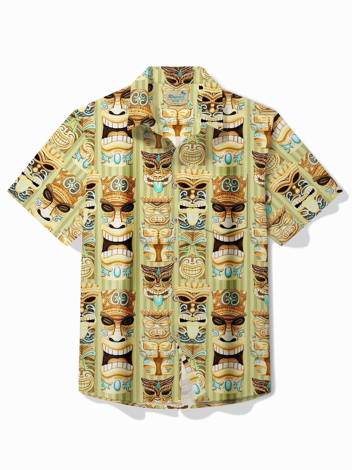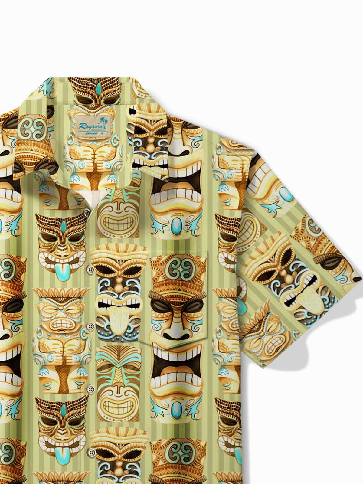 Camisa de manga corta con bolsillo abotonado para hombre con estampado de cóctel hawaiano Tiki de Alohadaddy