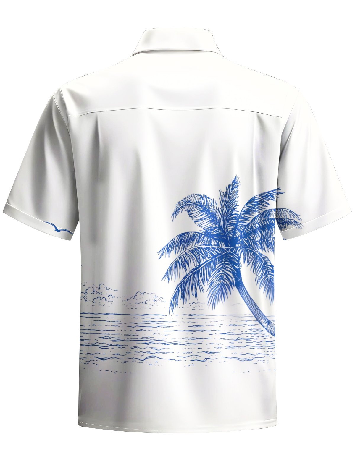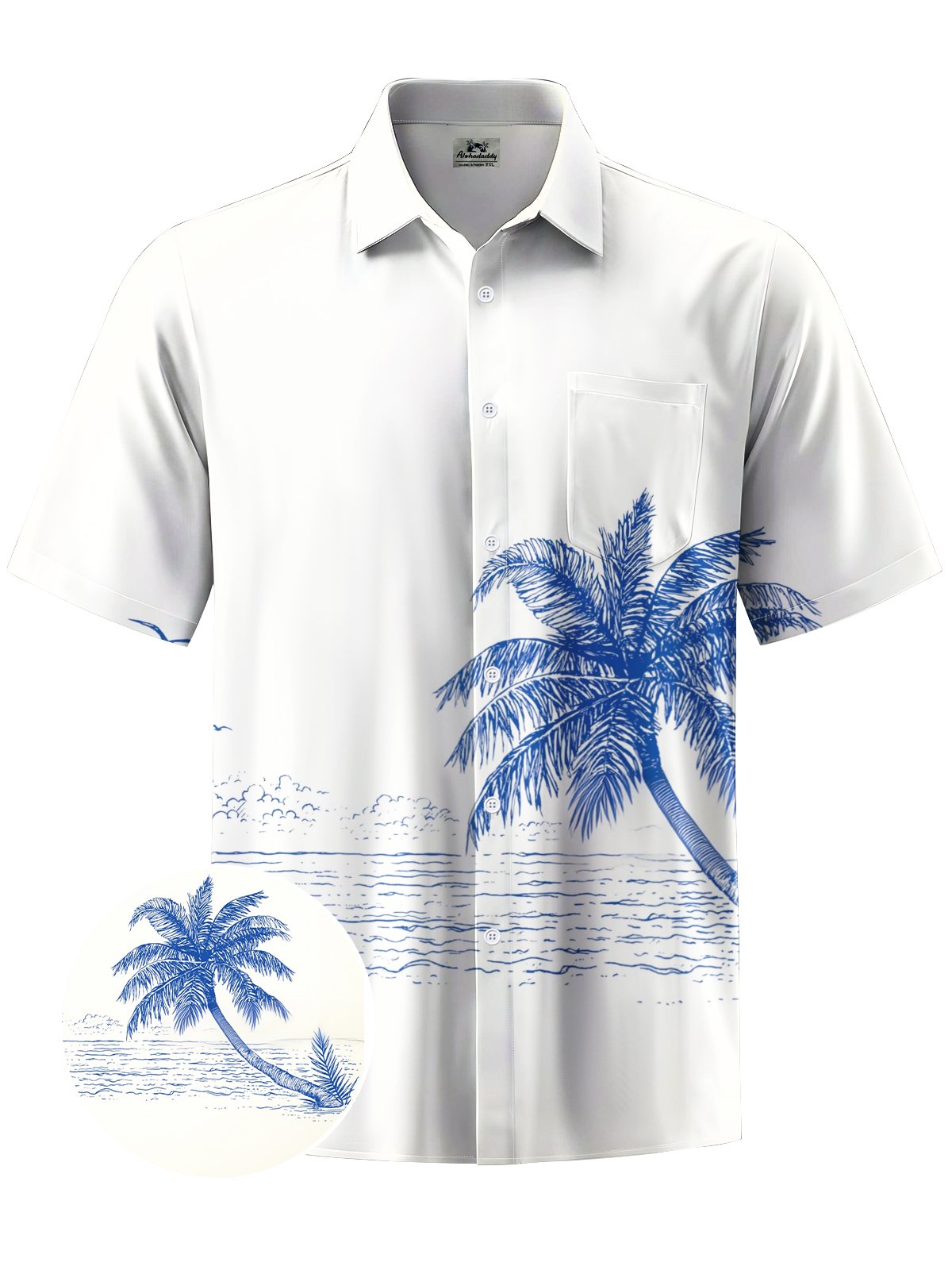 Alohadaddy® Casual Coconut Tree Beach Print Art Moisture Wicking Men's Short Sleeve Shirt Big & Tall