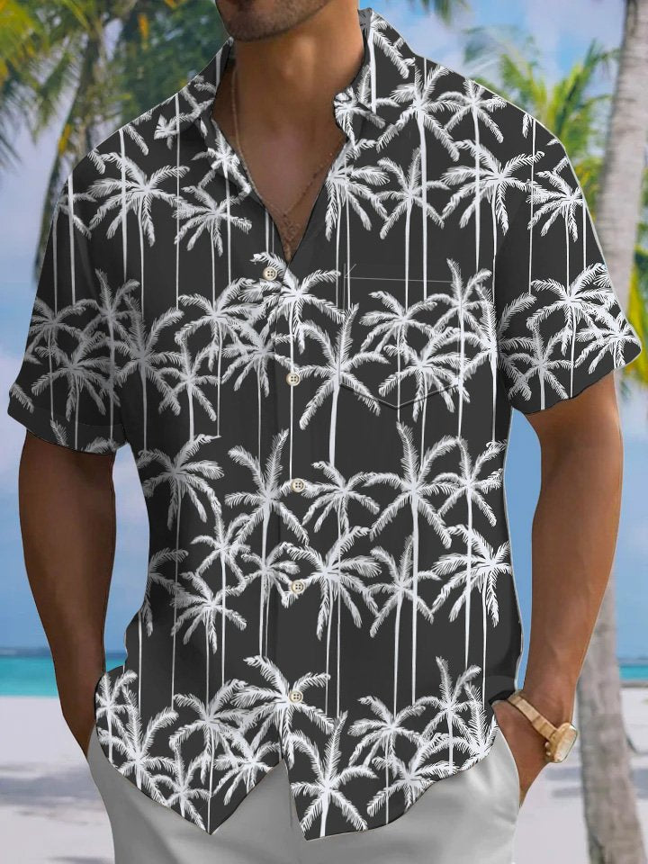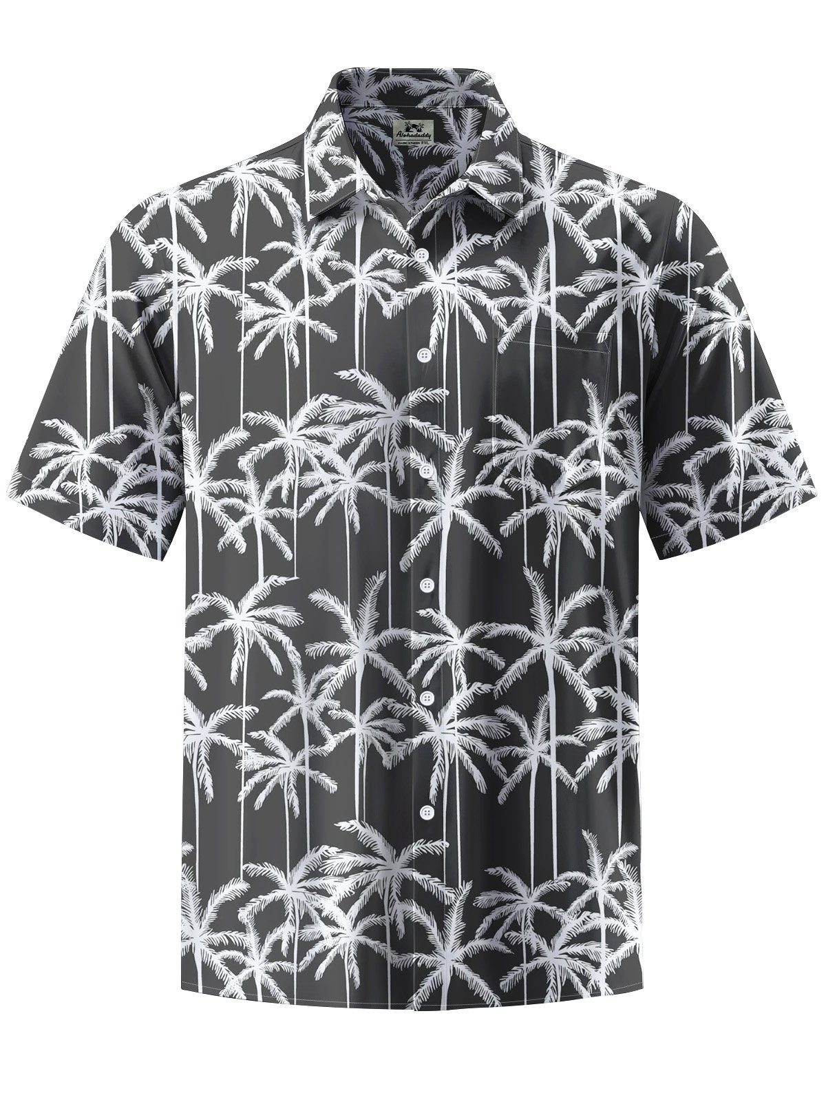 Alohadaddy® Hawaii Palm Tree Art Print Chest Pocket Moisture Wicking Mens Short Sleeve Shirt Big & Tall