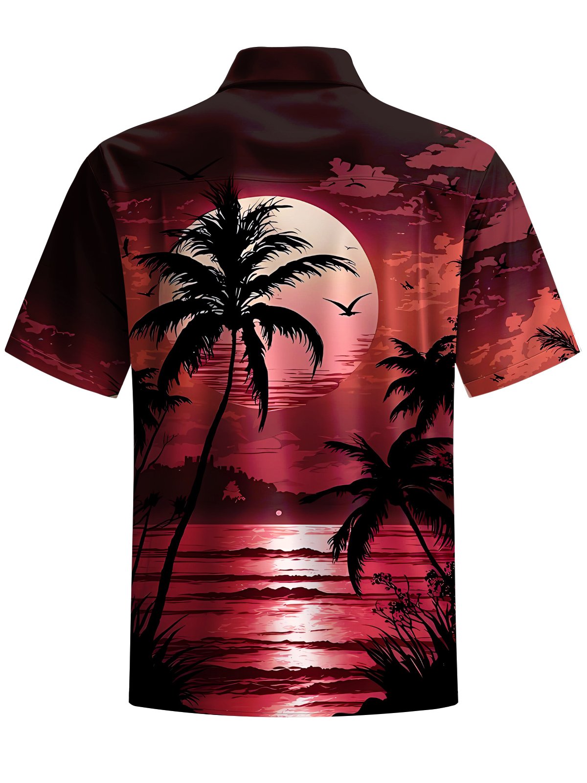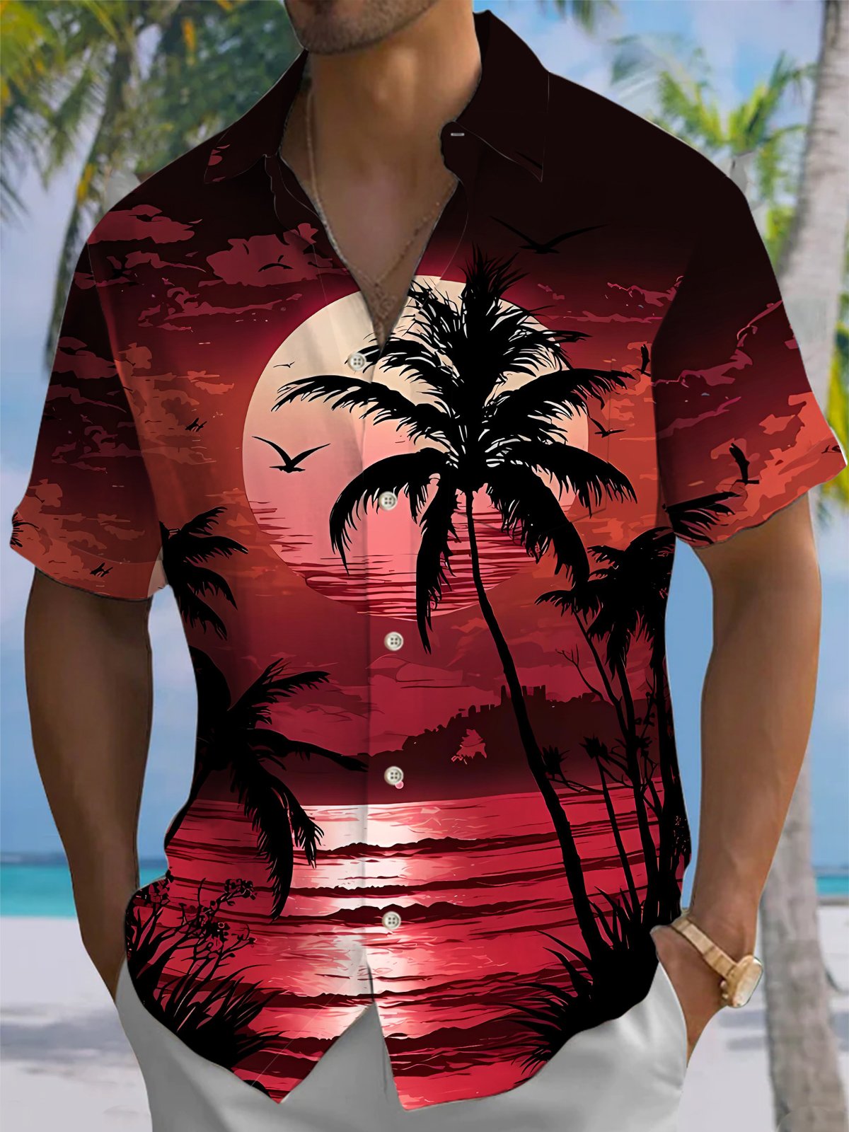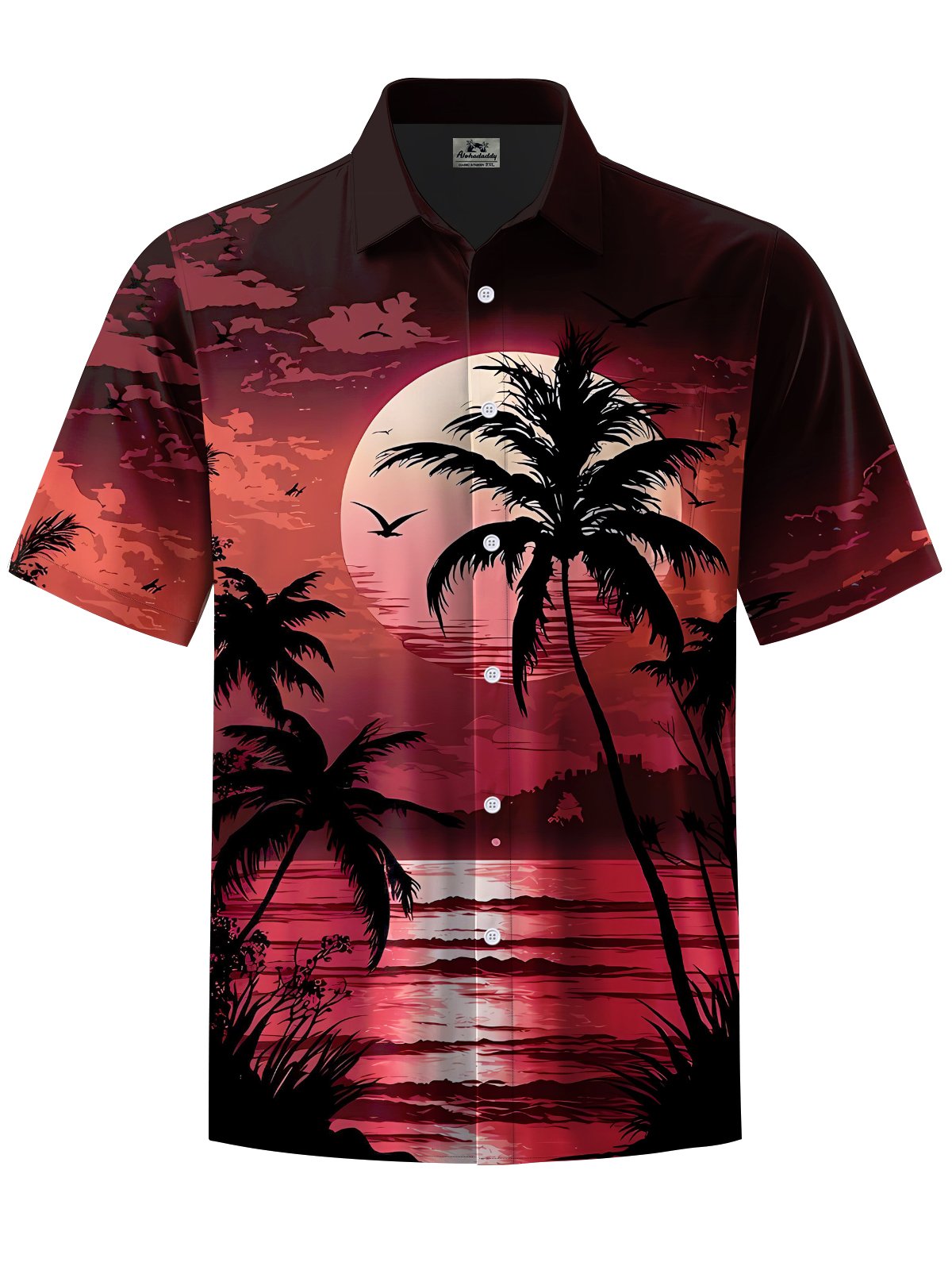 Alohadaddy® Hawaiian Palm Tree Print Stretch Pocket Button Men's Short Sleeve Shirt Big & Tall