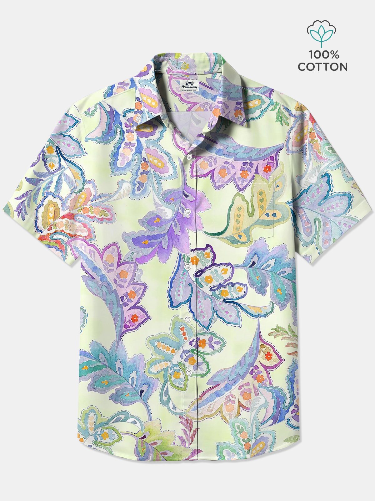 Alohadaddy® Hawaiian Leaves Art Print Chest Pocket Mens Cotton Short Sleeve Shirt Big & Tall