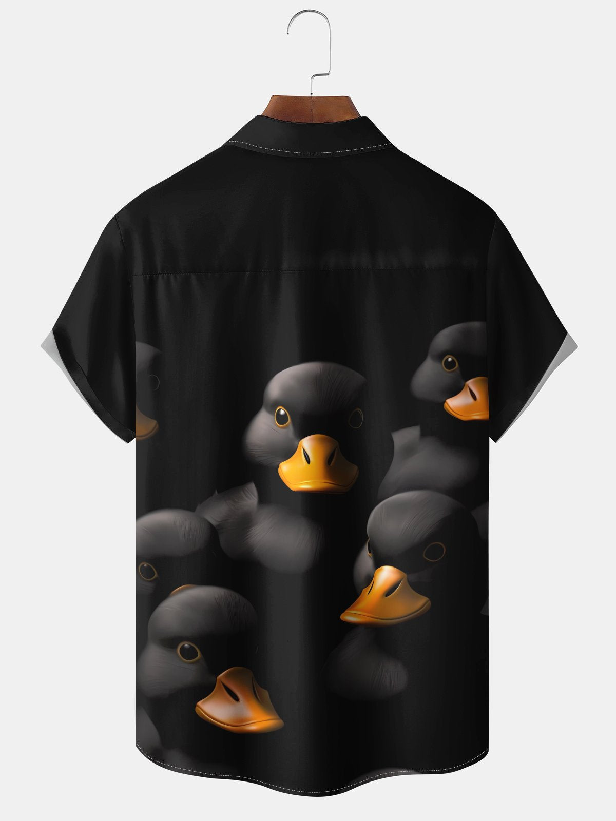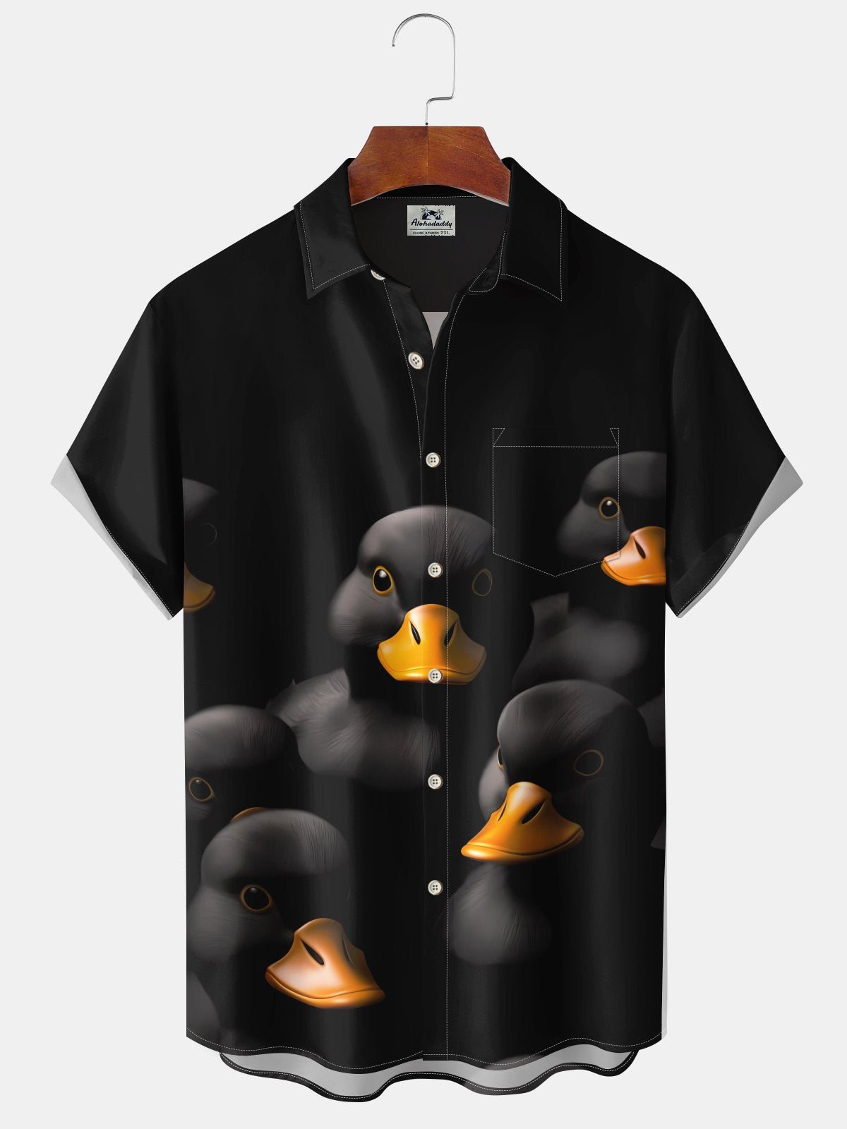 Alohadaddy® Casual Duck Art Print Pockets Large Size Stretch Men's Short Sleeve Shirt
