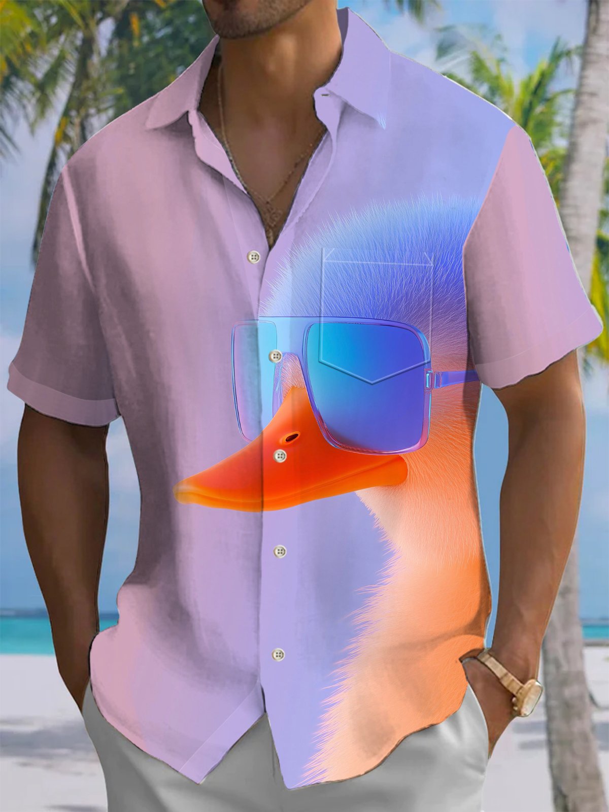 Alohadaddy® Casual Sunglasses with Duck Art Print and Stretch Chest Pocket for Men's Short Sleeve Shirt Big & Tall
