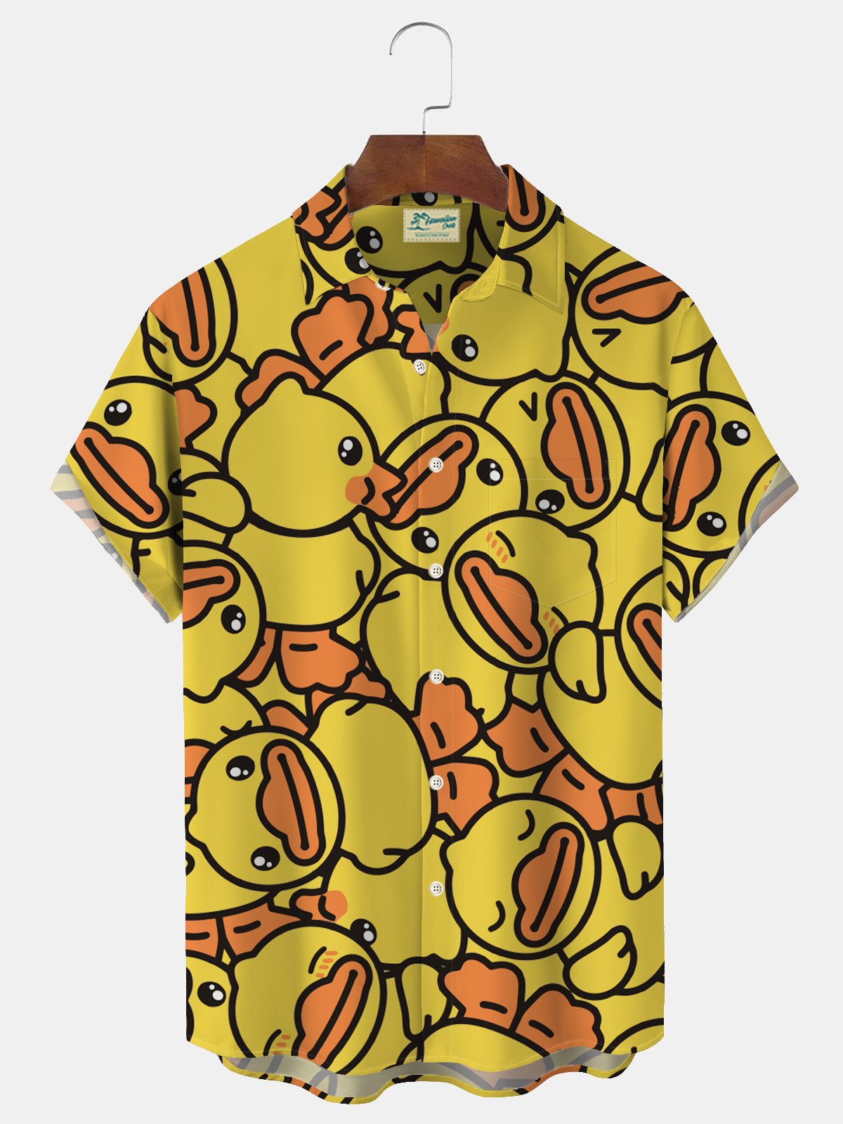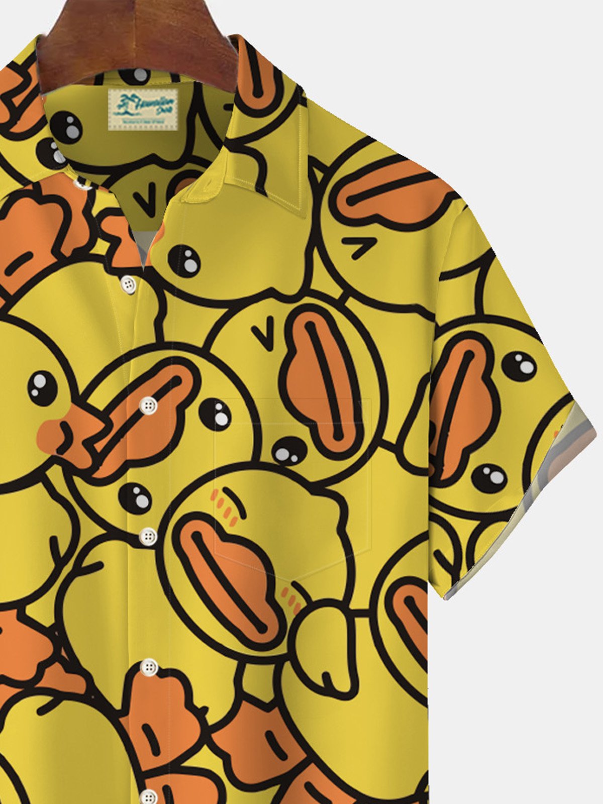 Camisa de manga corta con bolsillo abotonado para hombre con estampado de pato de dibujos animados hawaianos divertidos de Alohadaddy