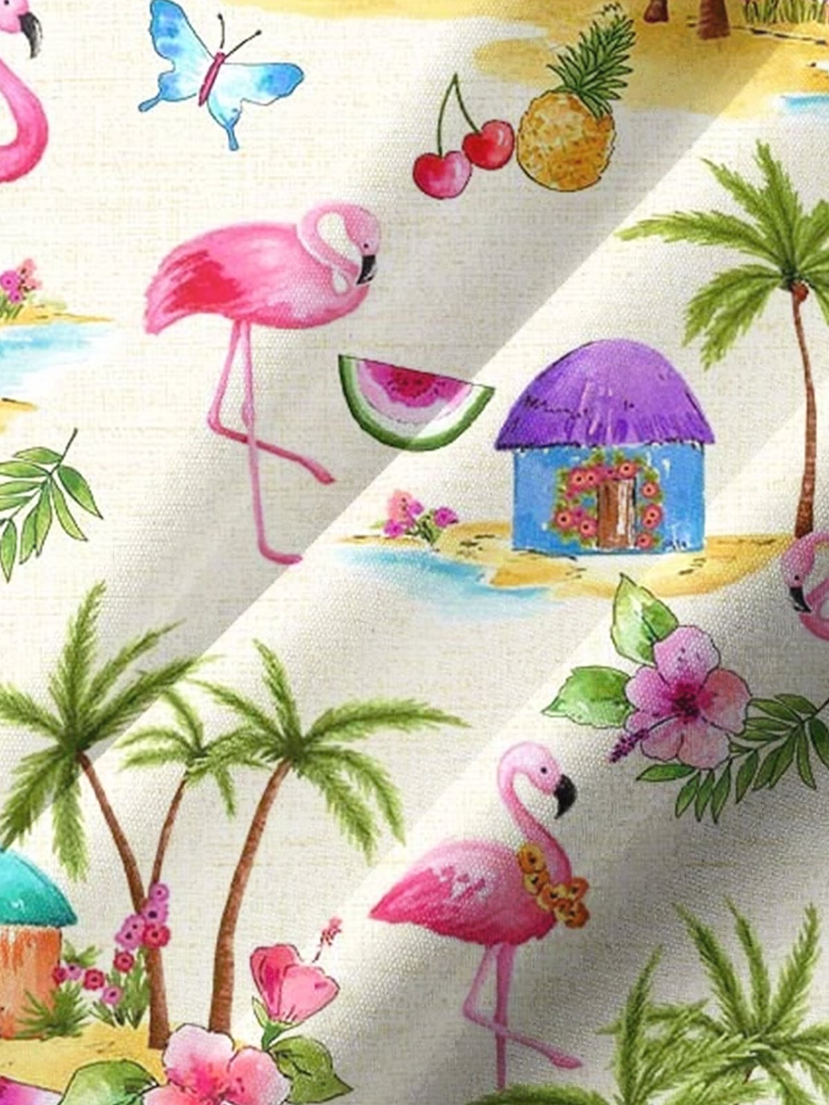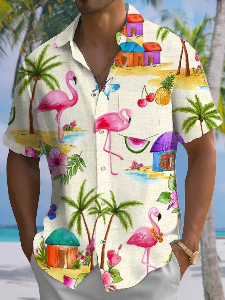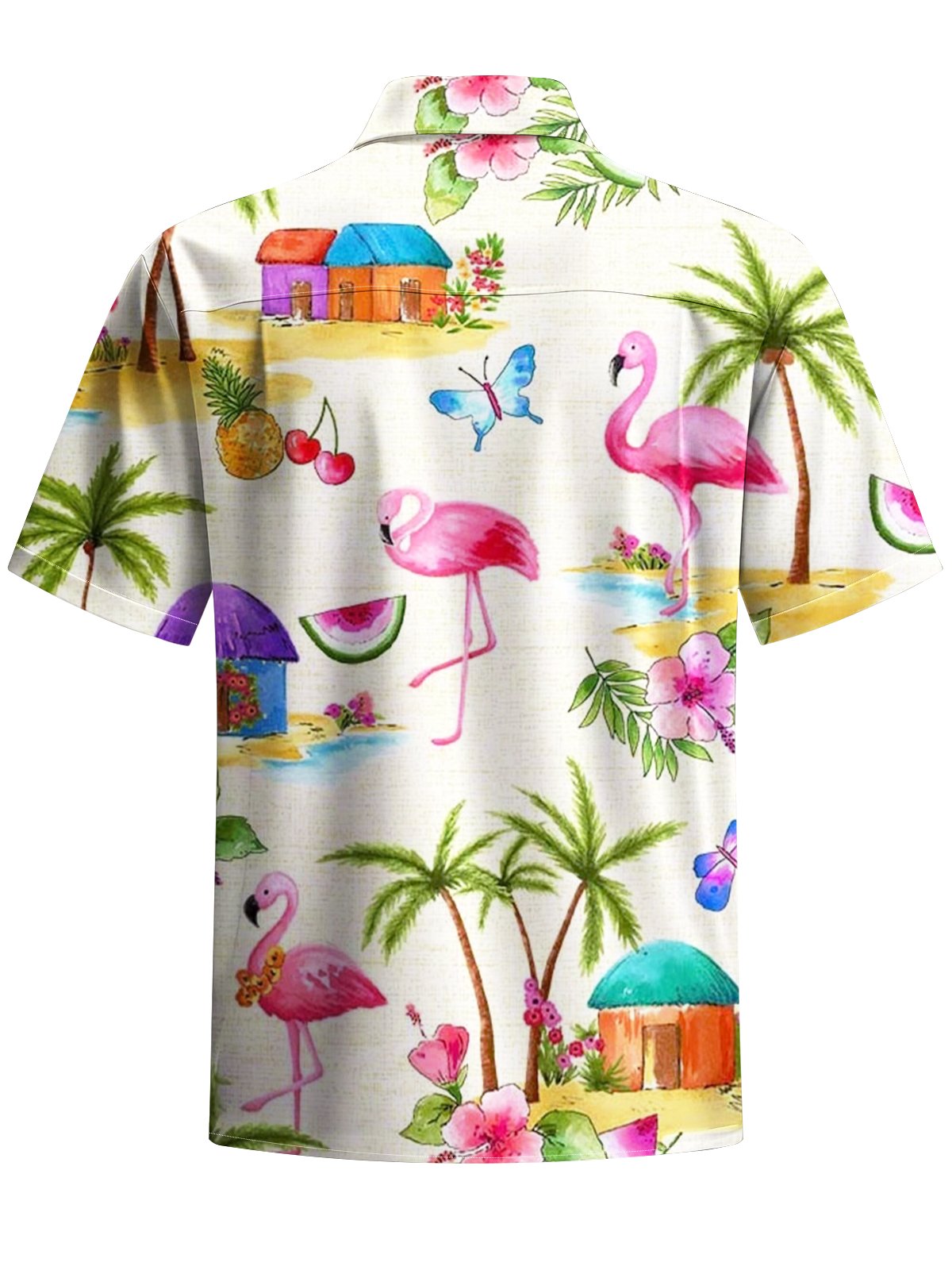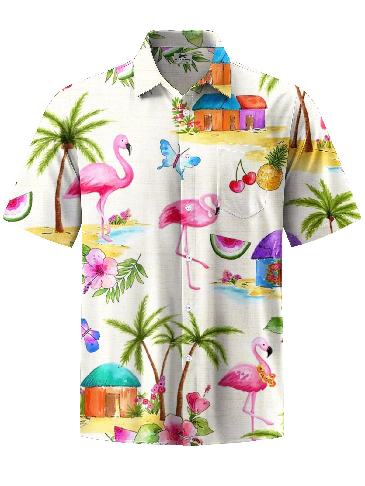 Alohadaddy® Hawaiian Flamingo Art Print Moisture-Wicking Chest Pocket Men's Short Sleeve Shirt Big & Tall