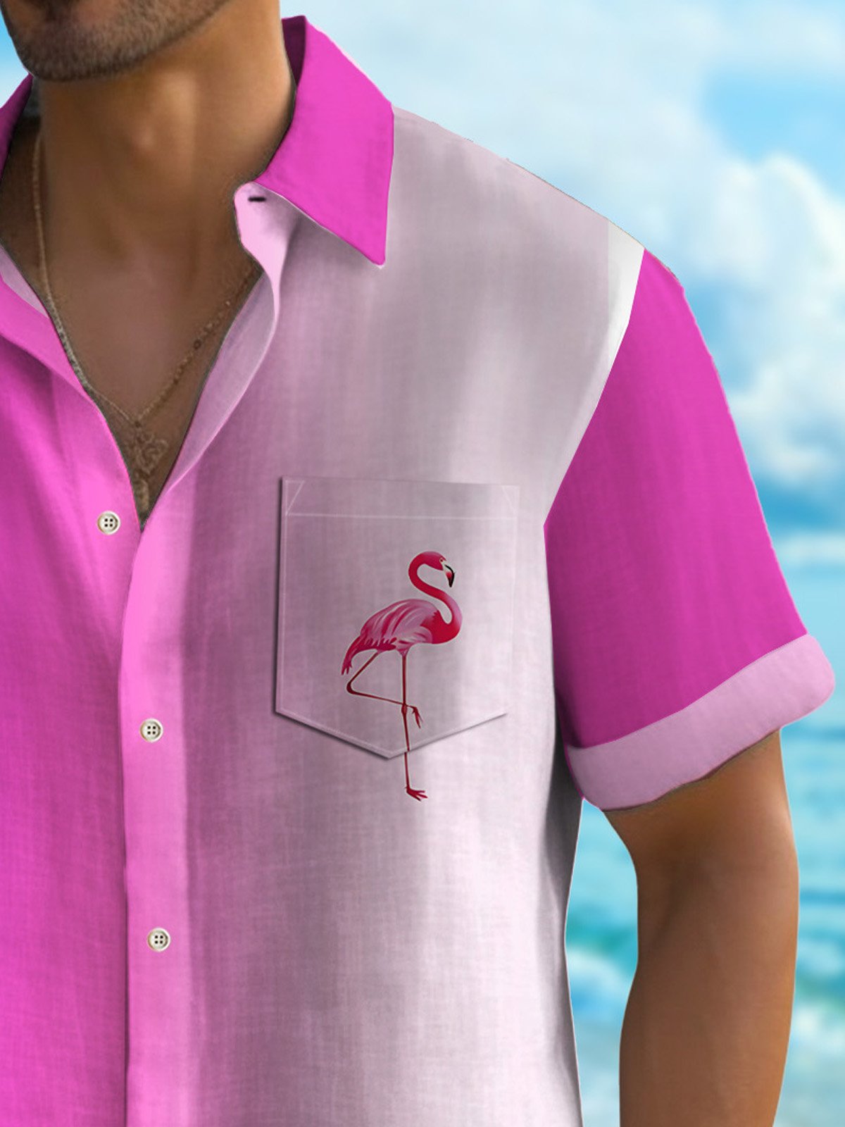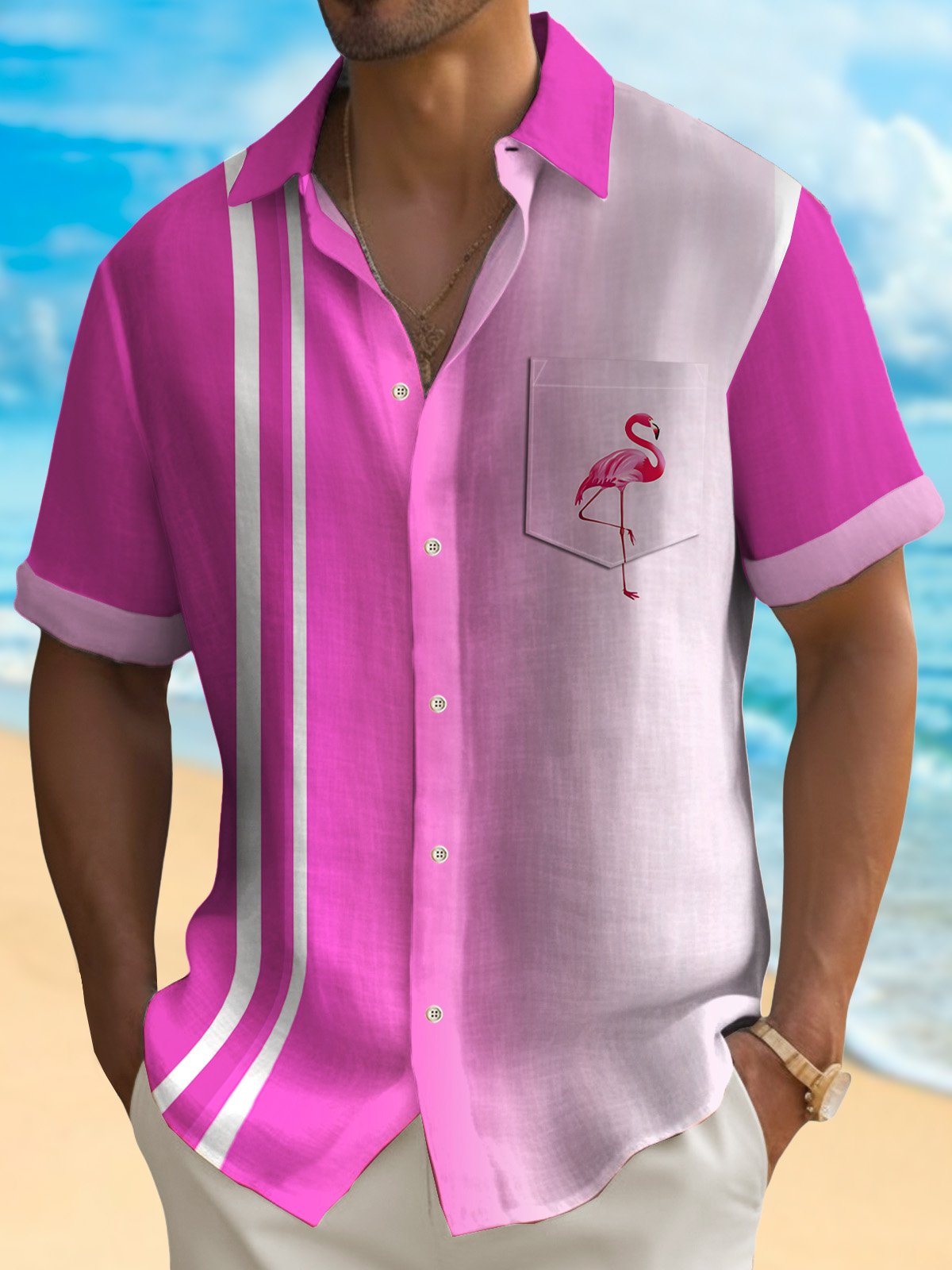 Camisa de bolos con flamencos para hombre, color rosa, para vacaciones en la playa, de Alohadaddy, con bolsillo elástico, para campamento, talla grande