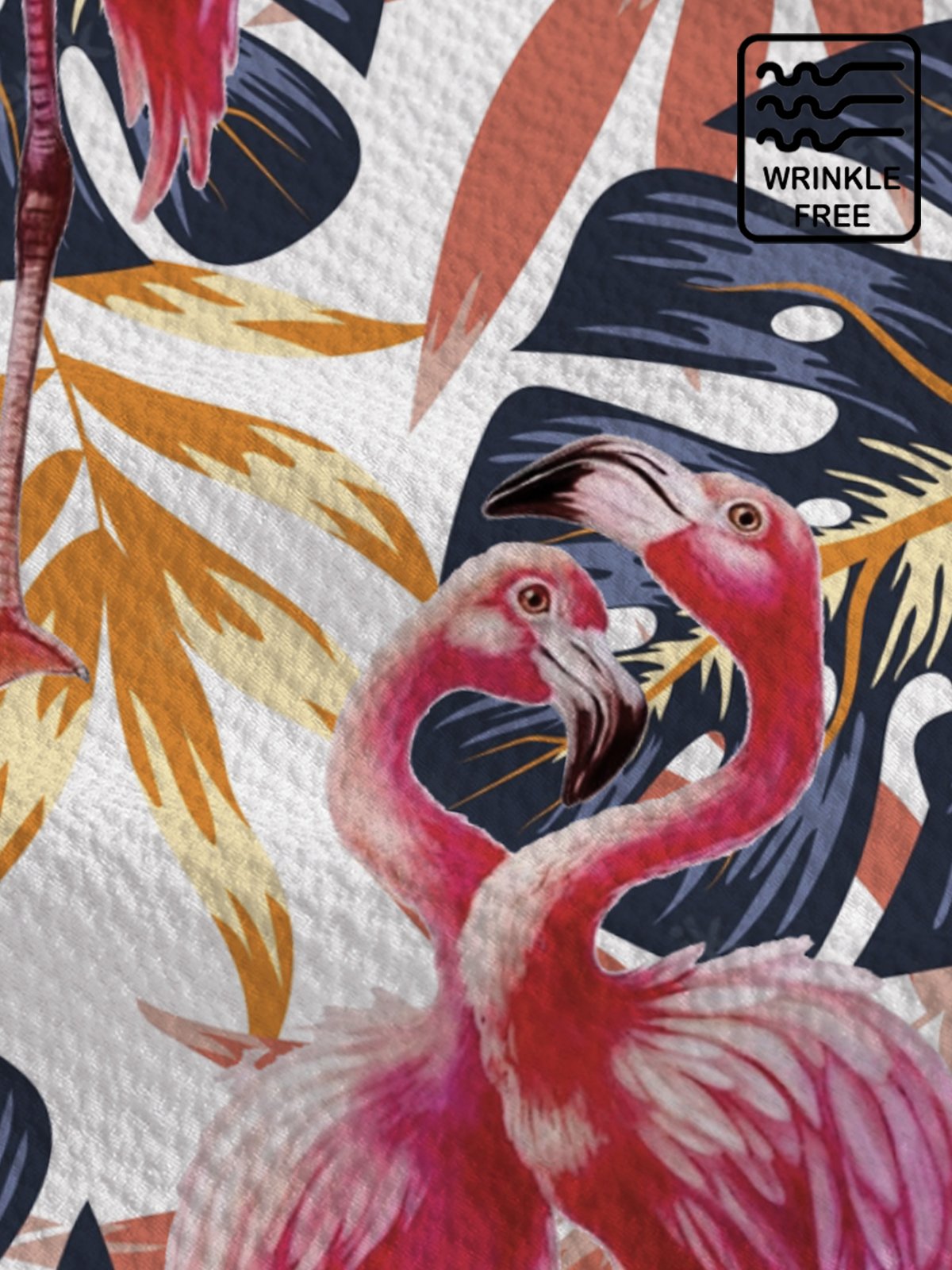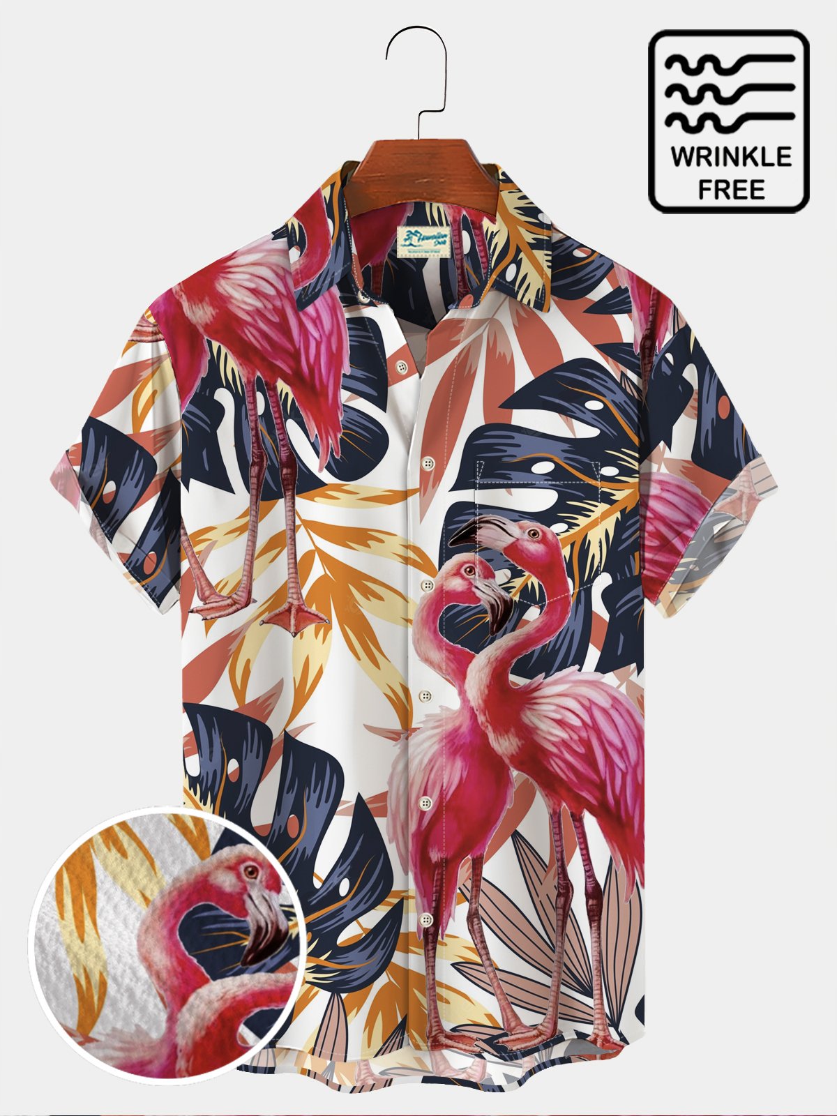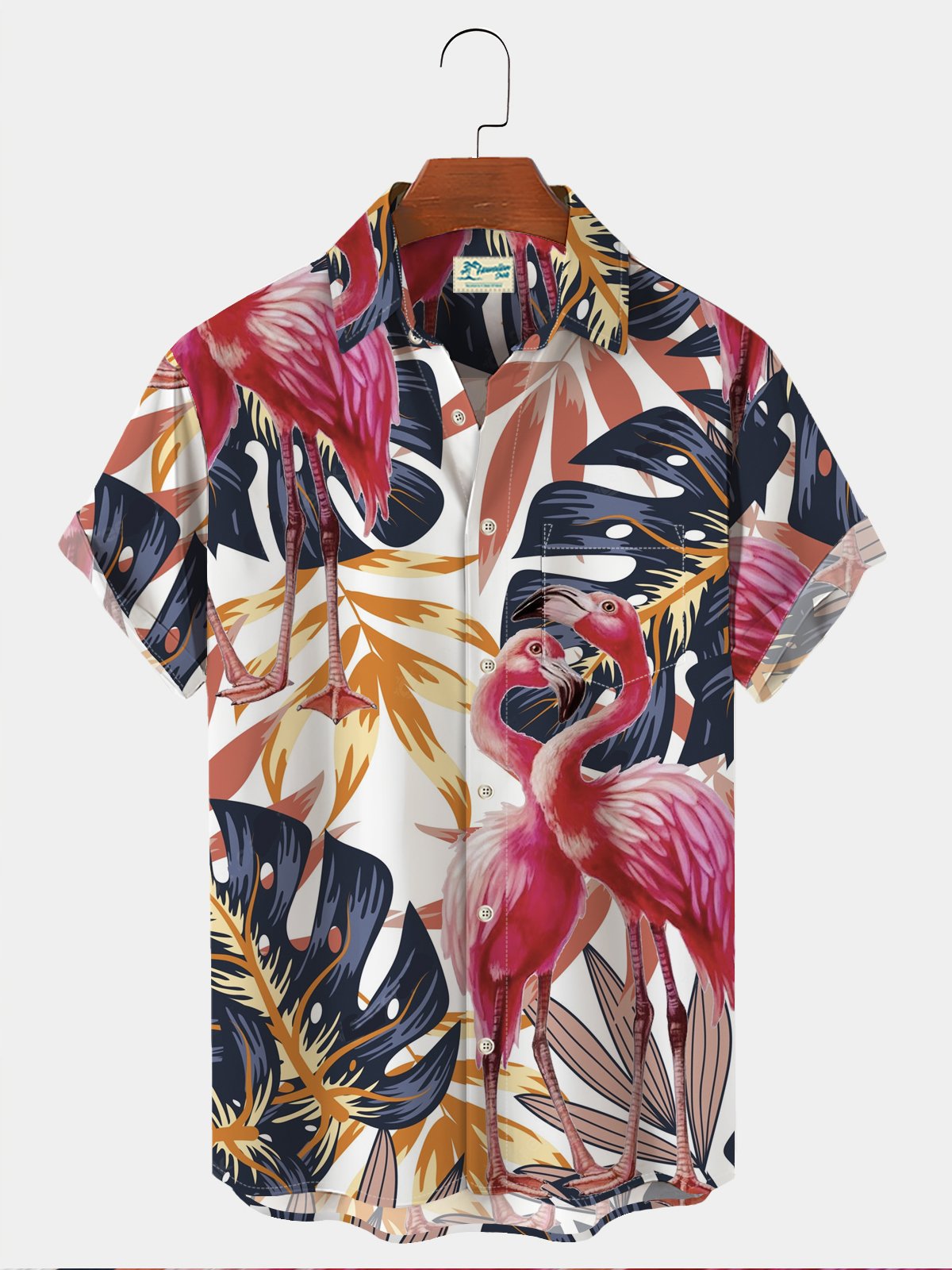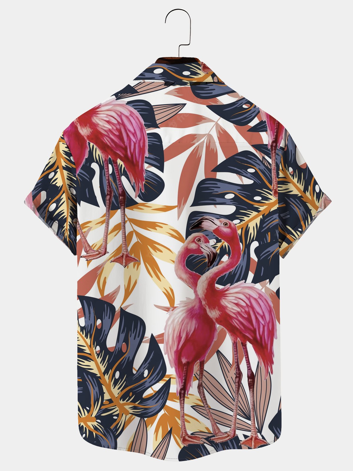 Camisas hawaianas de playa para hombre de Alohadaddy Holiday Camisas hawaianas de gran tamaño con botones y hojas tropicales de flamencos