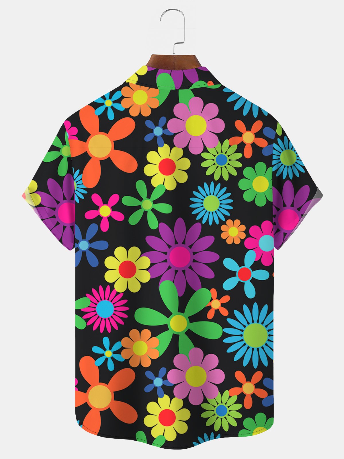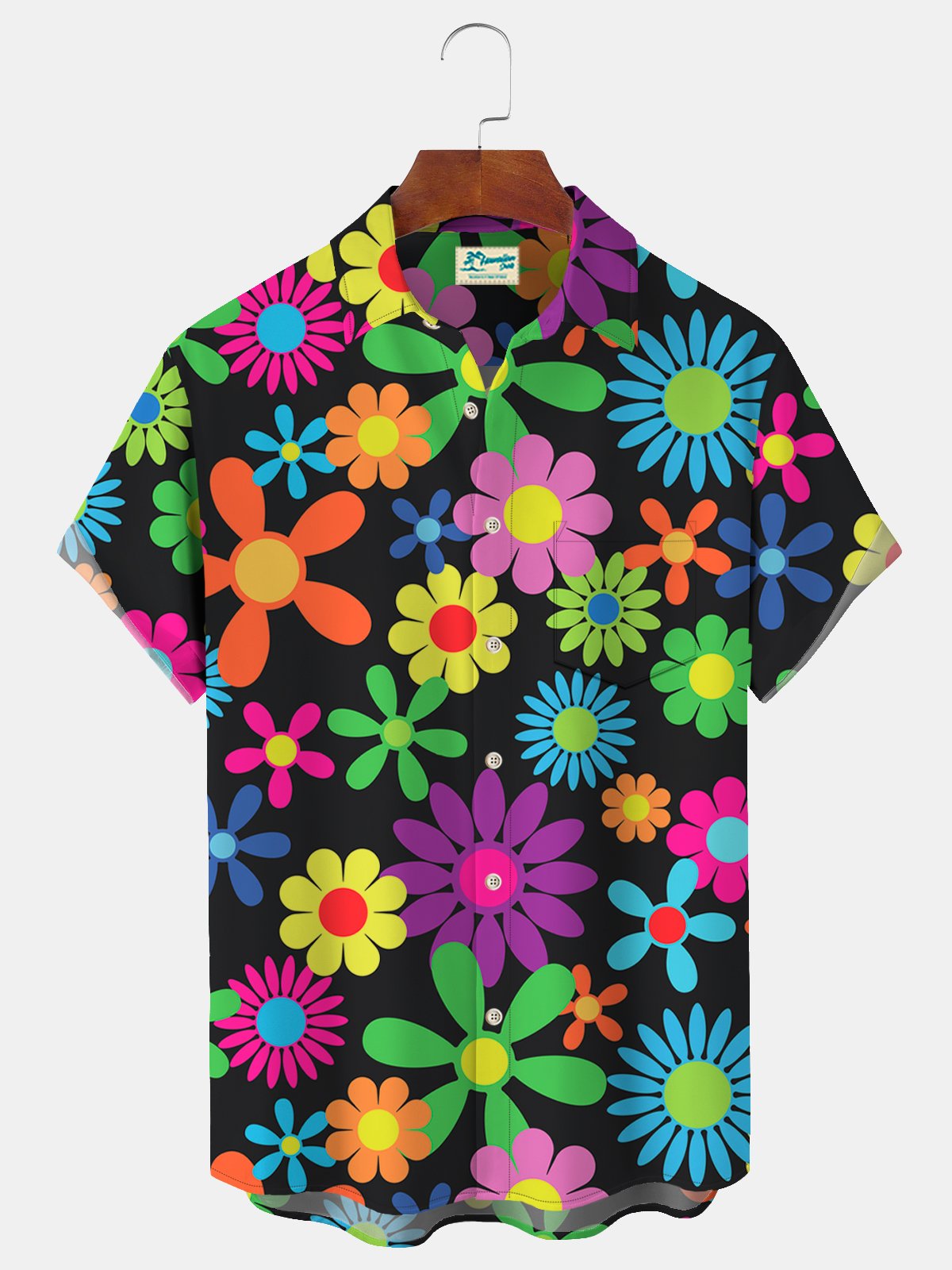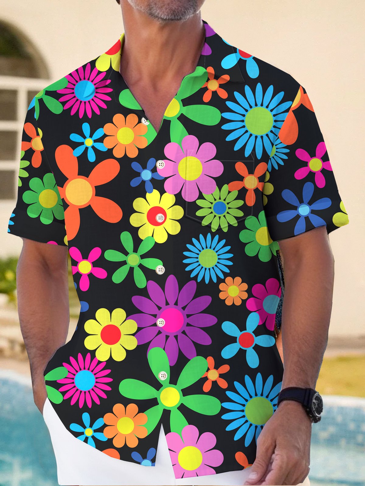 Camisa hawaiana elástica Alohadaddy para hombre, camisa de camping con dibujos animados y bolsillo Aloha
