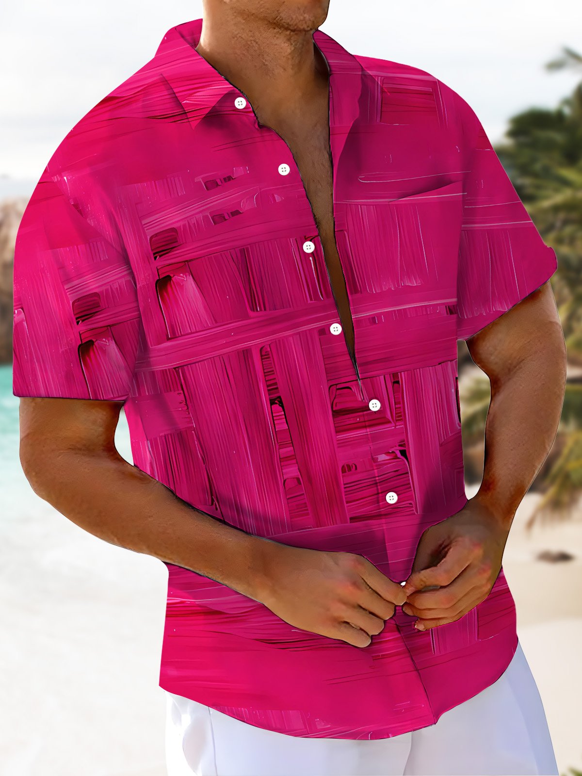 Alohadaddy® Casual Abstract Art Print Chest Pocket Mens Short Sleeve Shirt Big & Tall